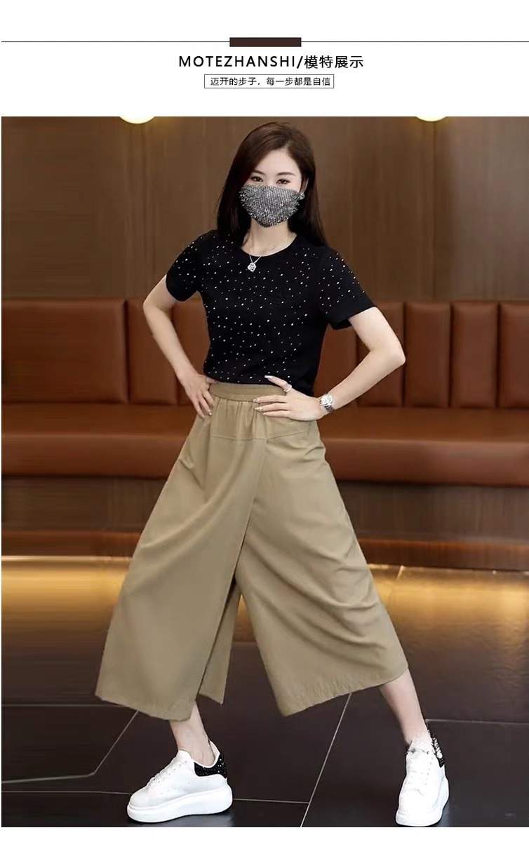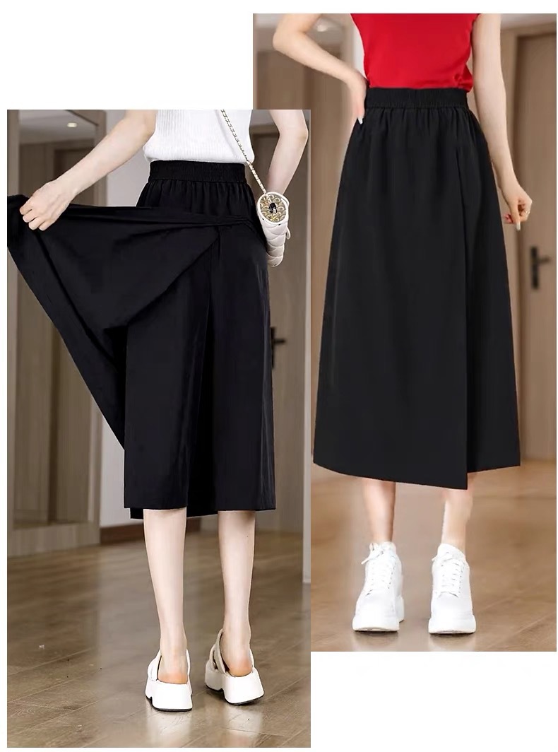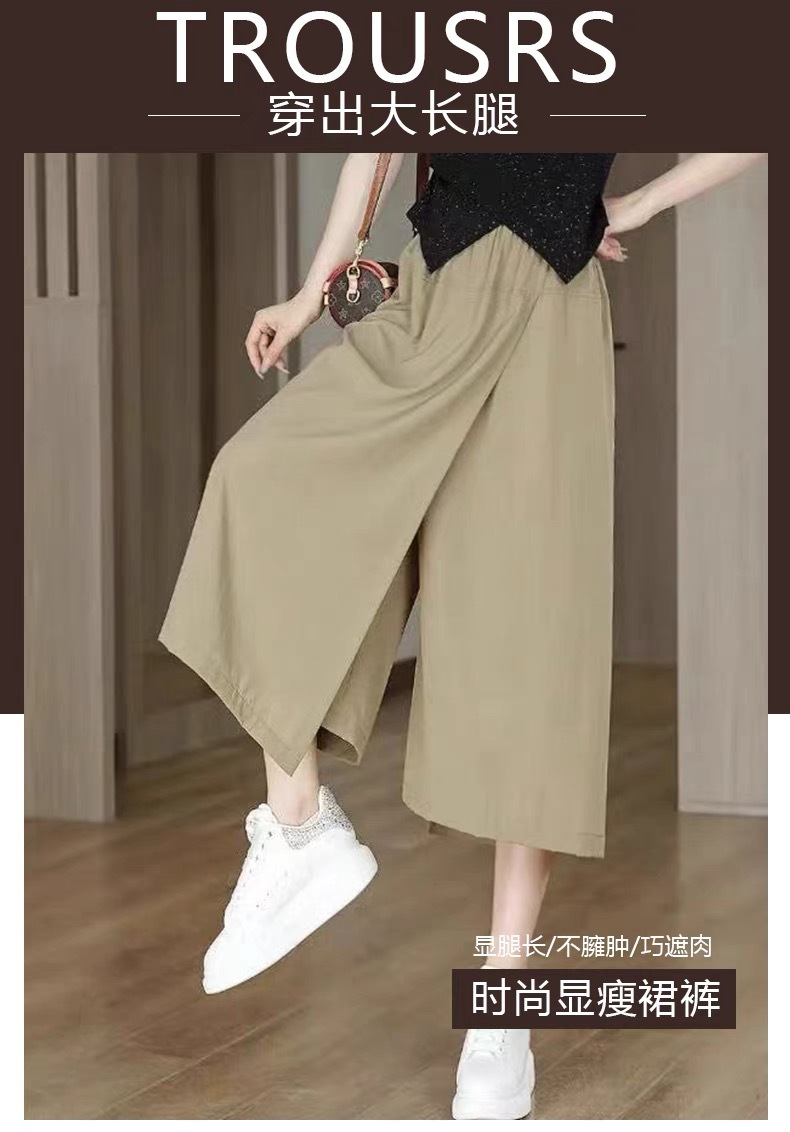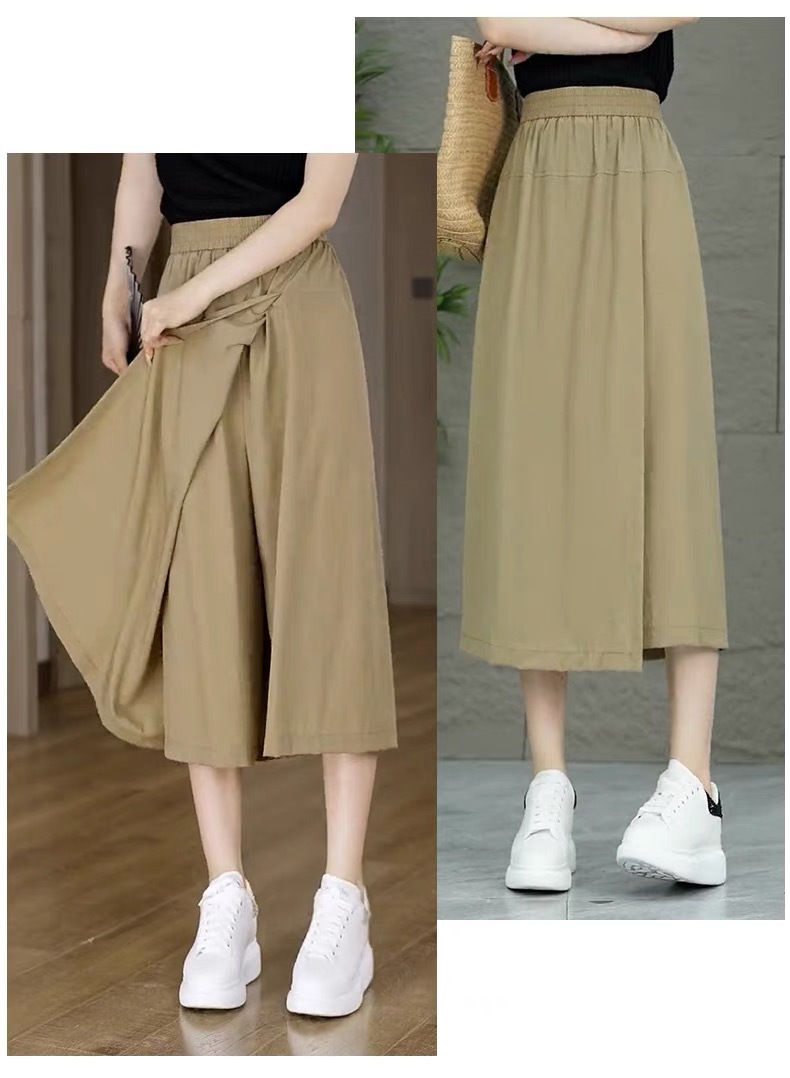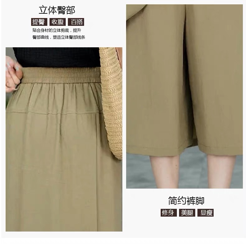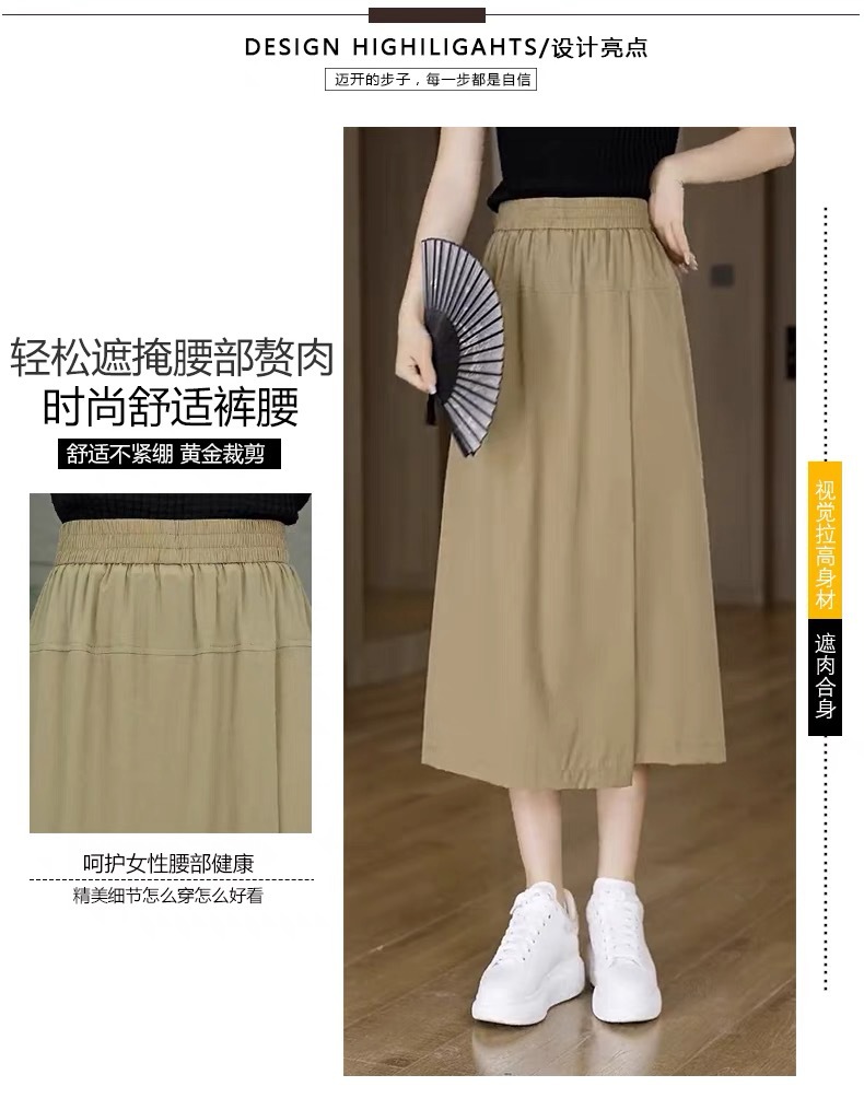 HSS ZSH8995松紧腰裙裤薄款宽松显瘦阔腿休闲裤七分裤