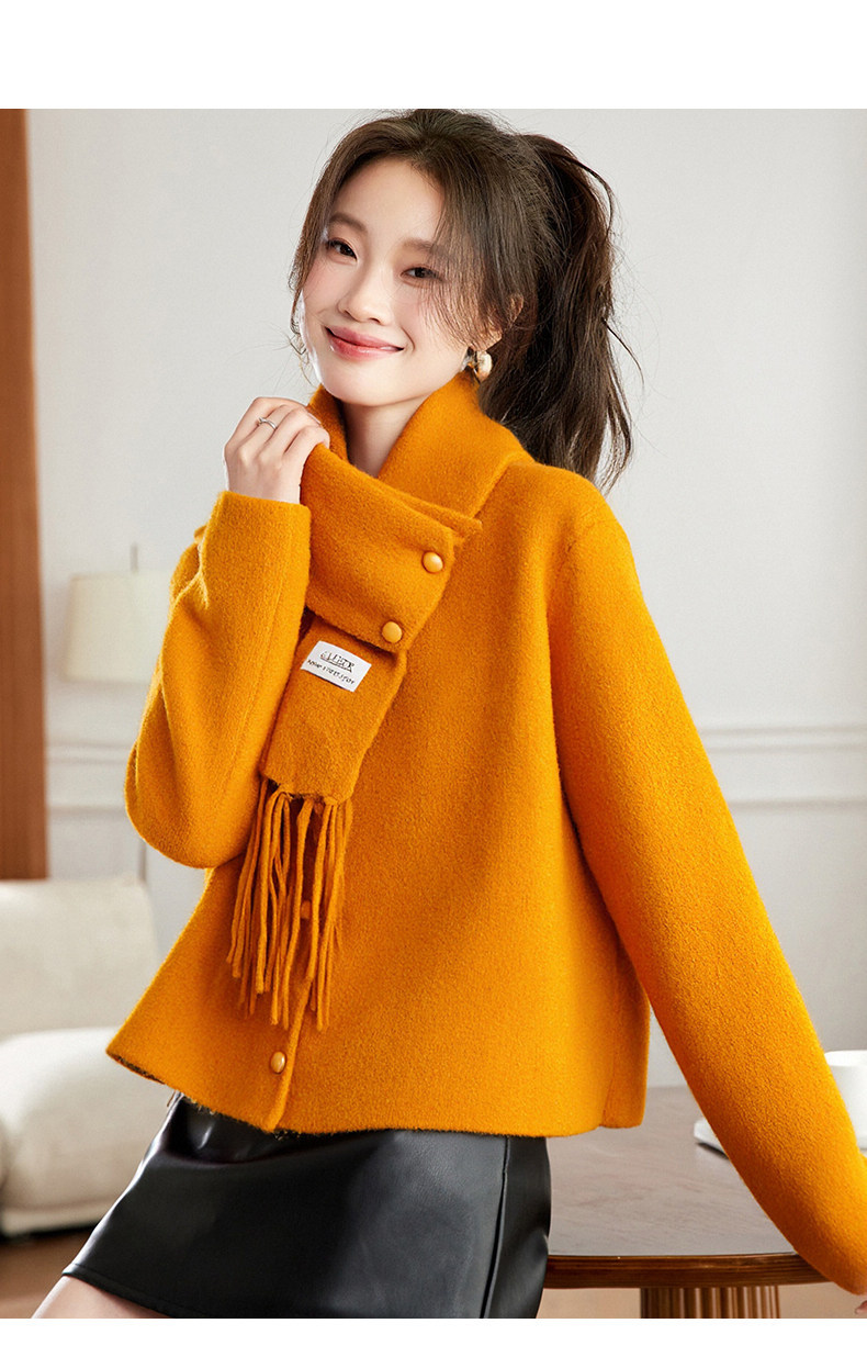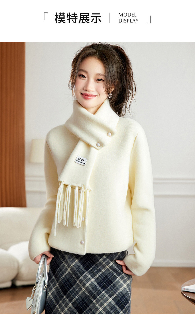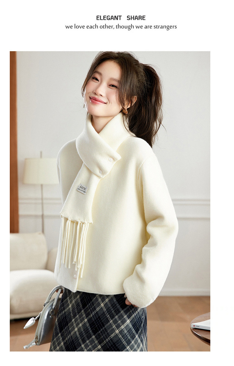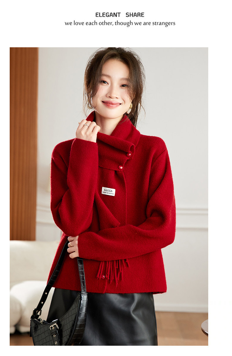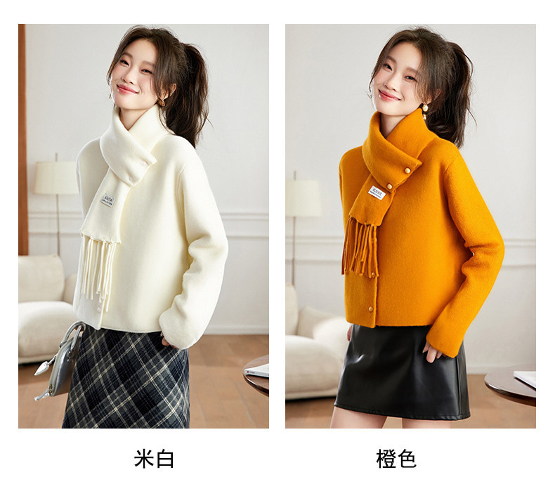 CC 2237韩系圆领毛衣外套流苏围巾宽松针织开衫