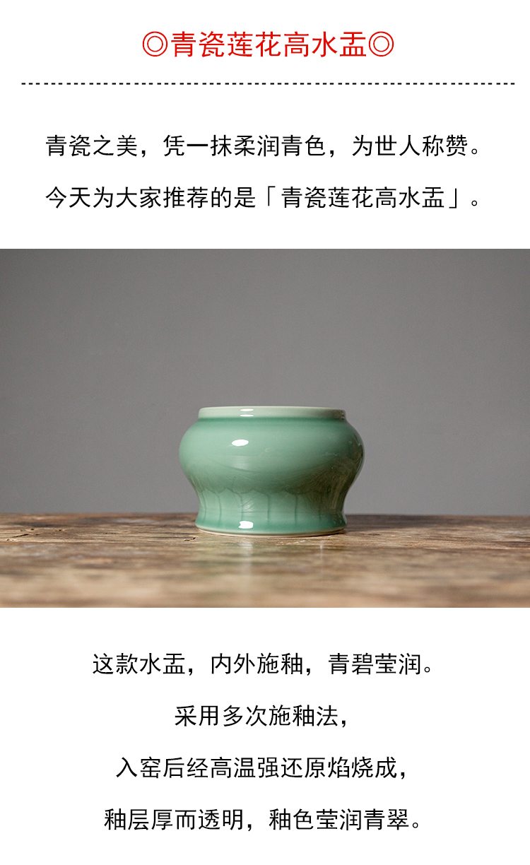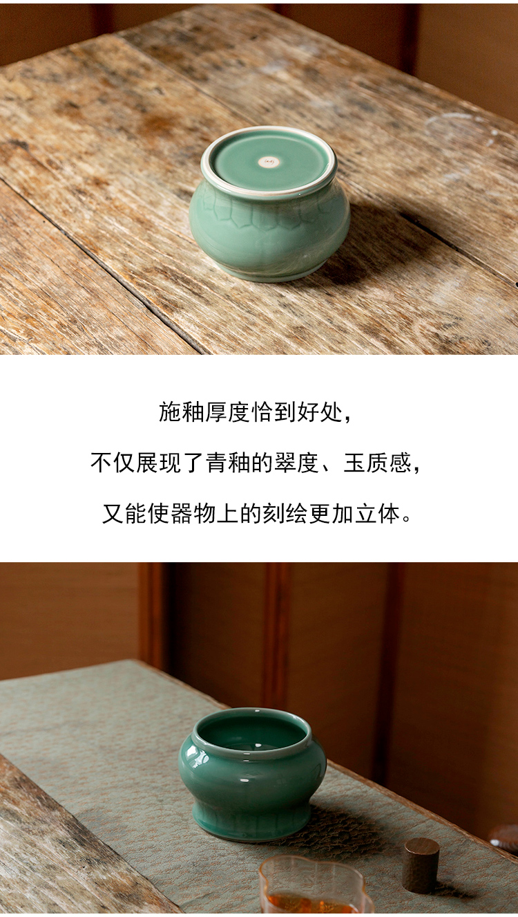 茶香记 青瓷莲花高水盂 莲花刻绘 青碧莹润禅意十足 一物多用 建水