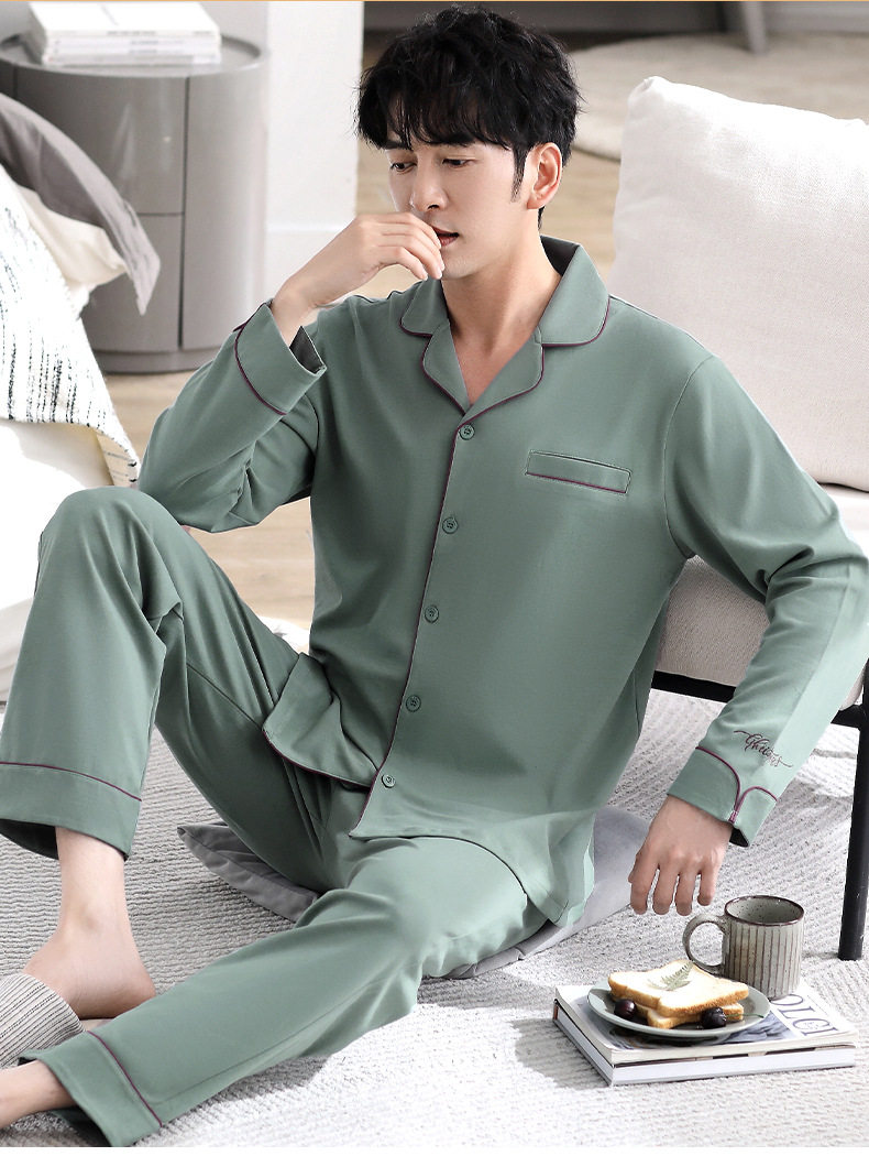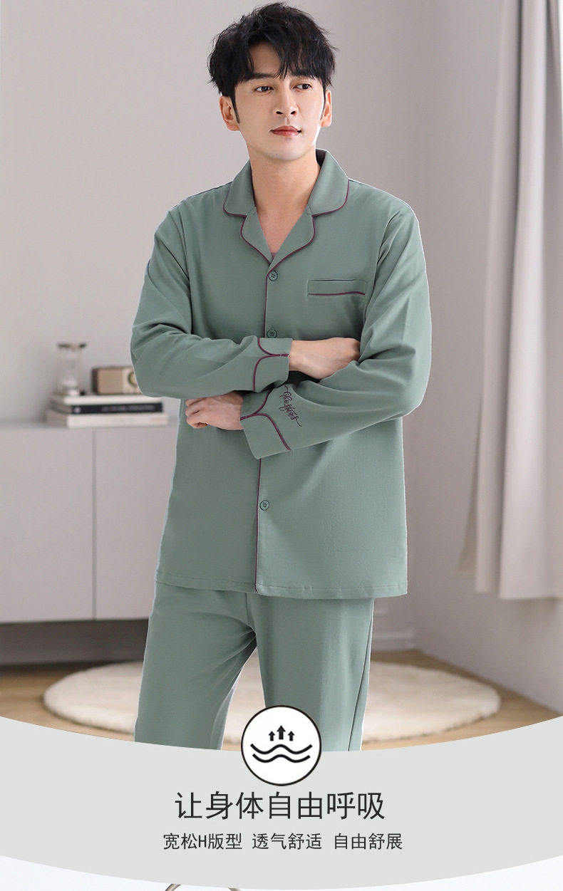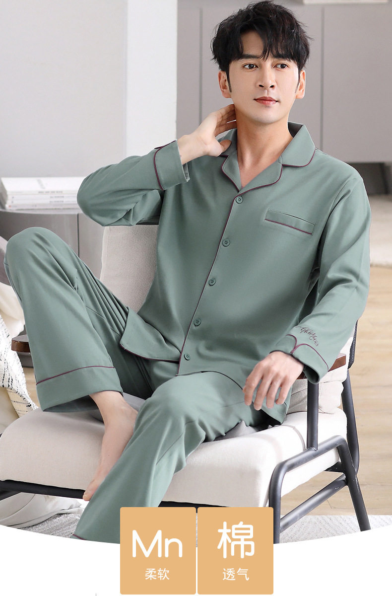 秋季纯棉睡衣男长袖长裤套装薄款简约休闲大码宽松可出门家居服 JL-XEQ202