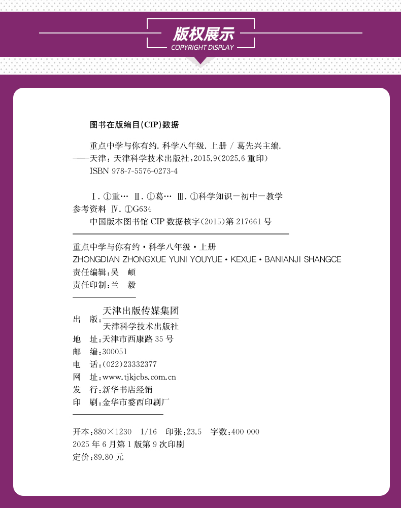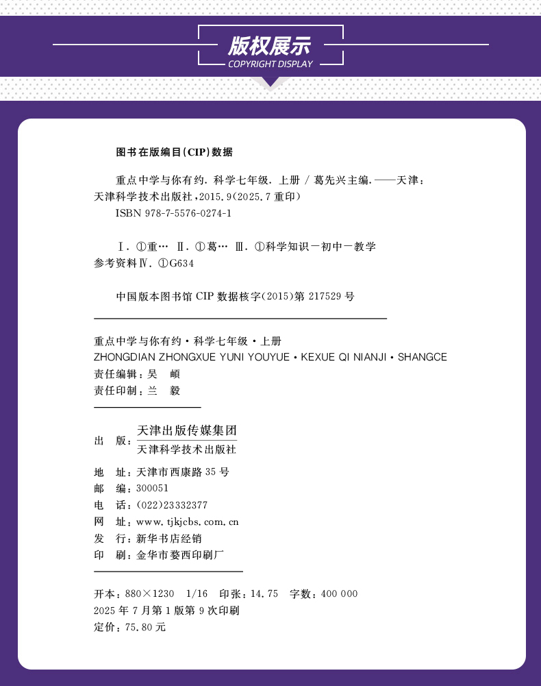 新版 重点中学与你有约 科学 浙教版(七上、八上、九全)