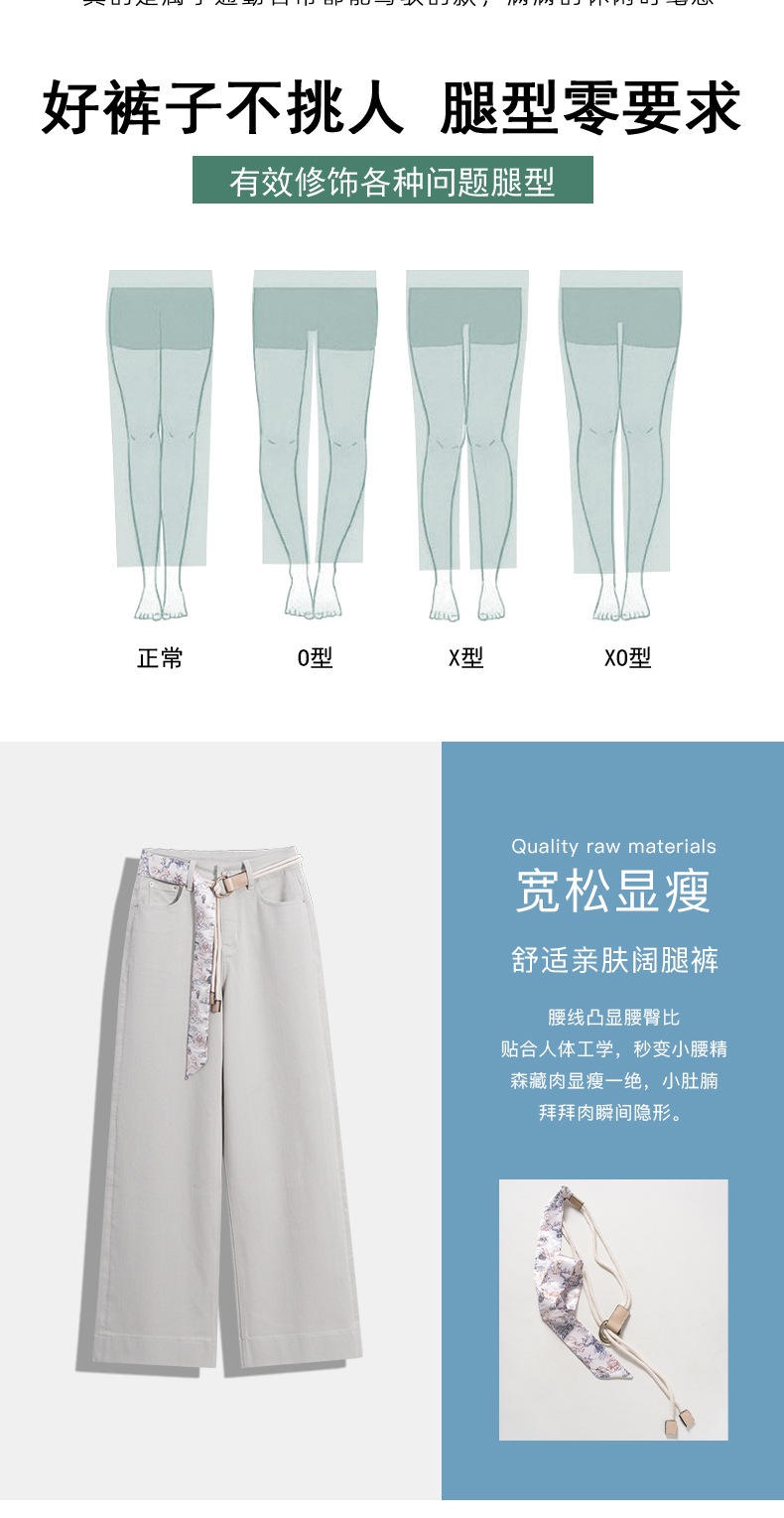 「自」全新升级【铂金会员174/天猫229/差价55】(42554)洛诗琳知性优雅轻奢直筒裤2025早秋阔设计感腰带阔腿牛仔裤