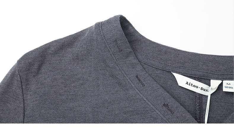 高级感深炭灰长袖 T 恤 春季亨利领设计简约通勤上衣