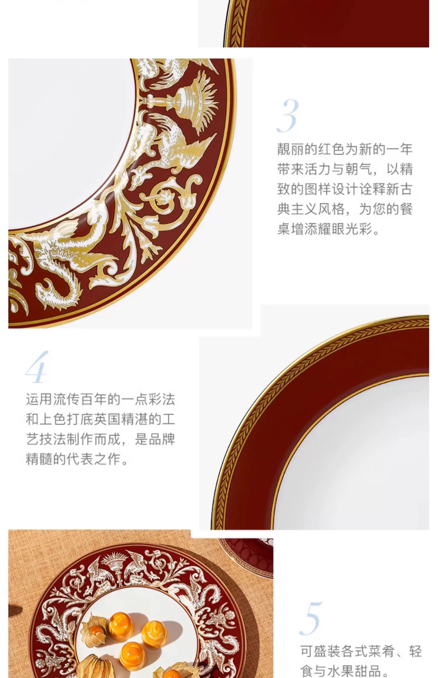 【WEDGWOOD】威基伍德 金粉年华鎏金红骨瓷餐盘欧式西餐餐盘