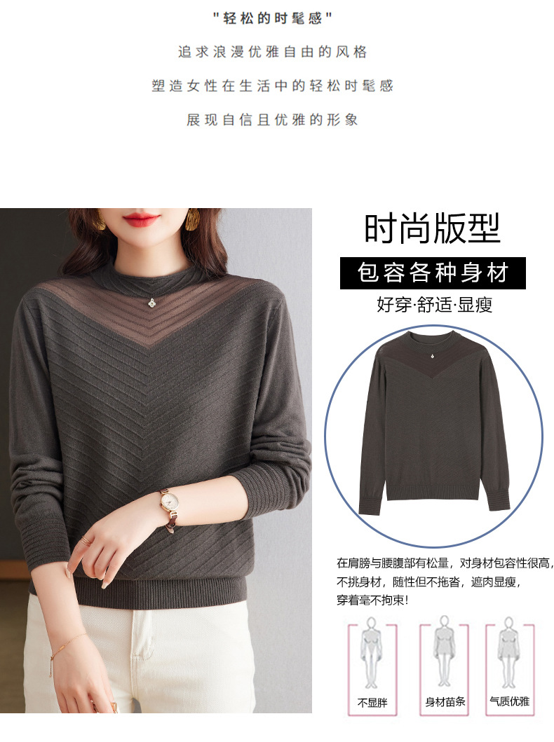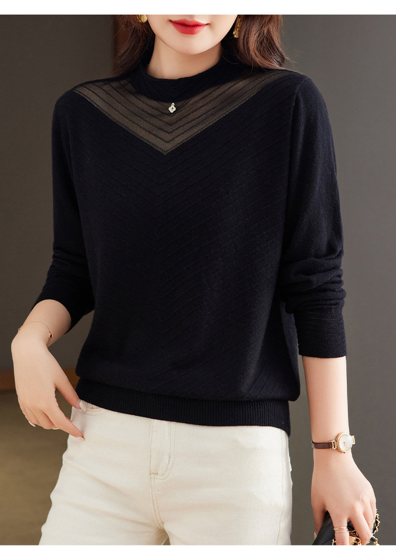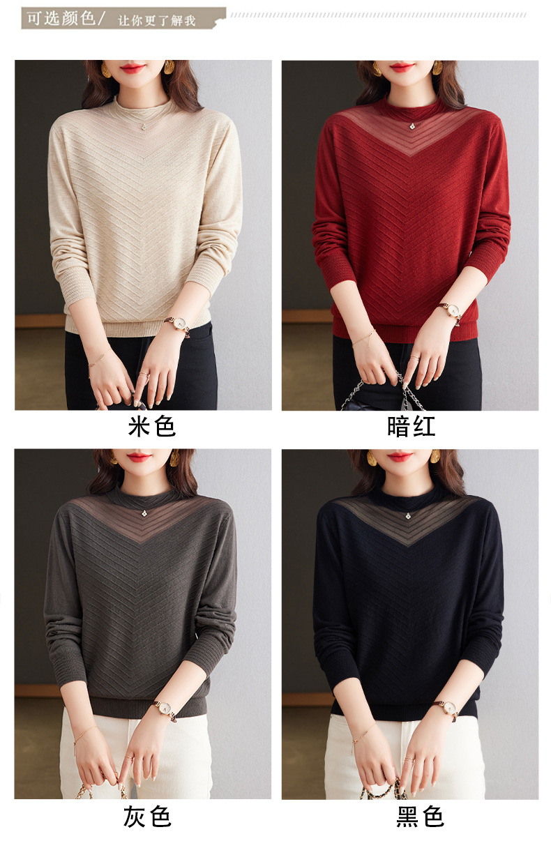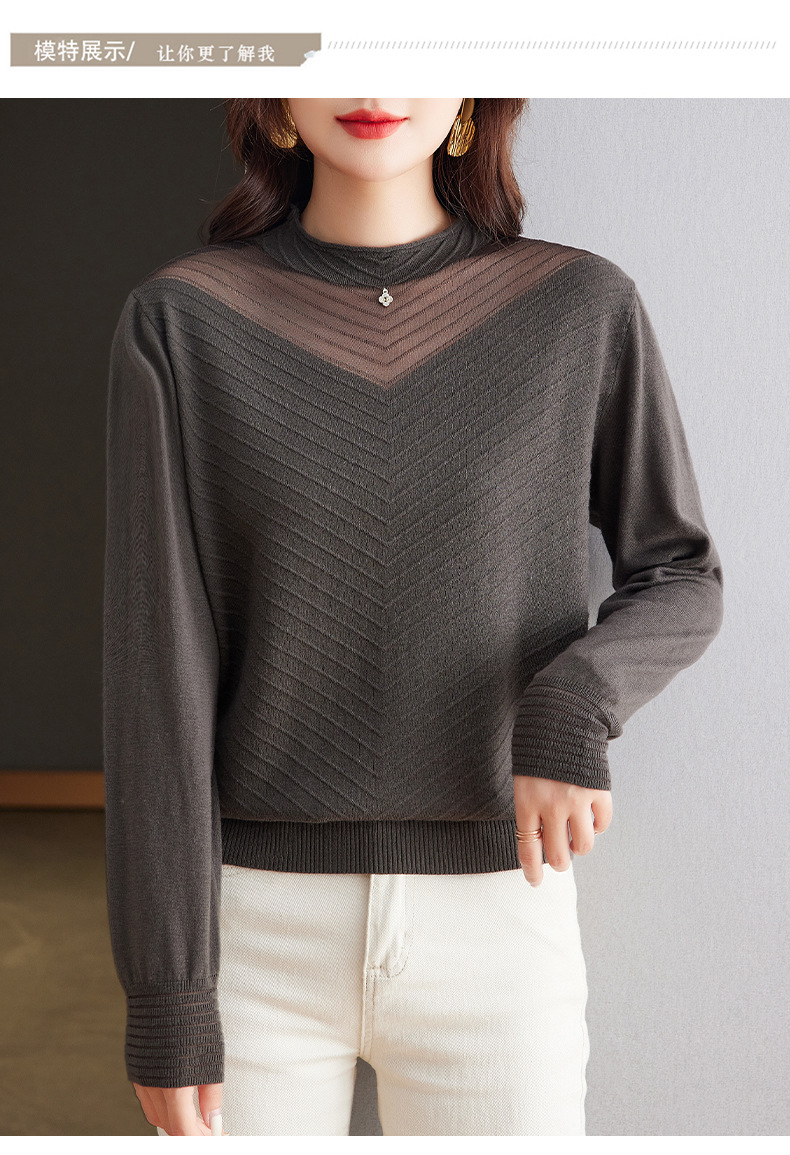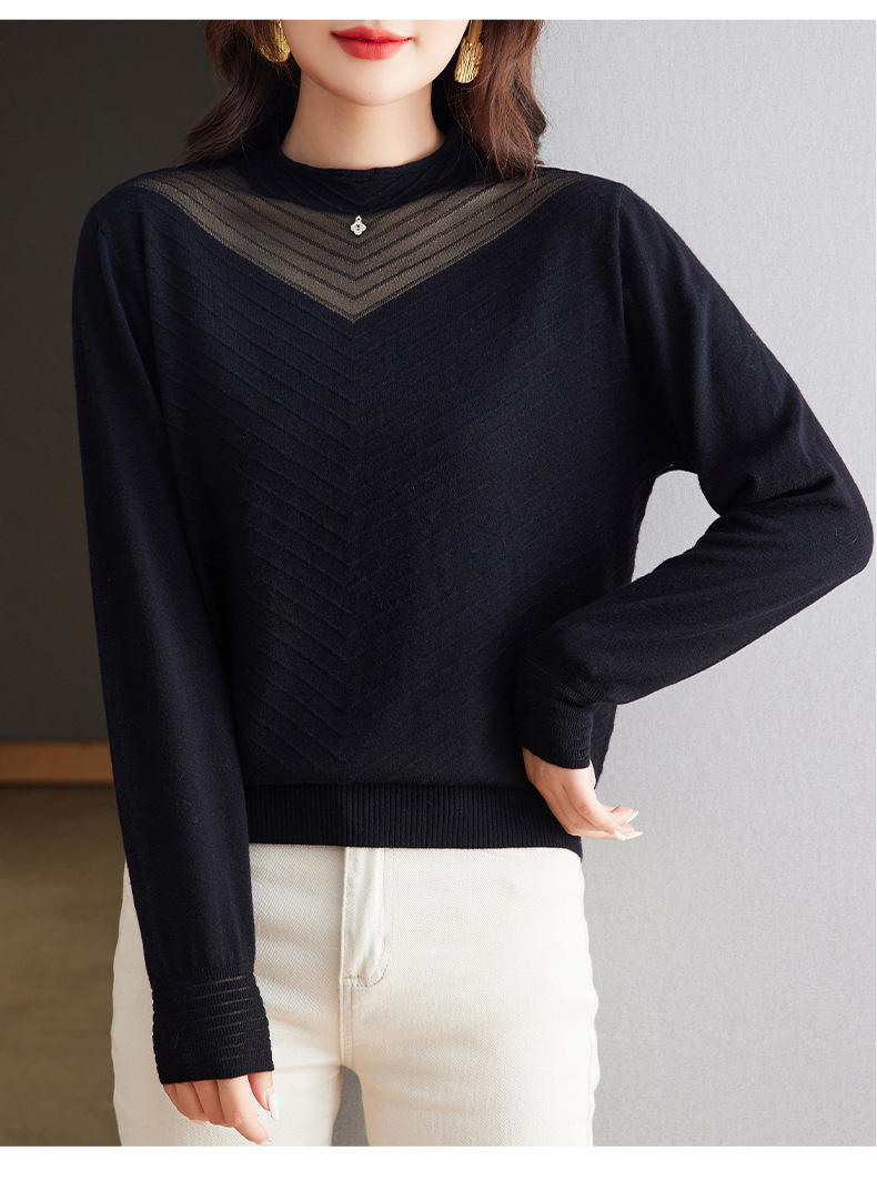 CC-tbrk-6899微透薄款镂空网纱羊毛针织长袖t恤2024秋新款短款百搭显瘦打底衫