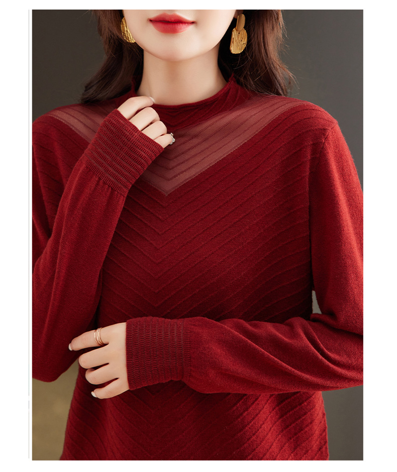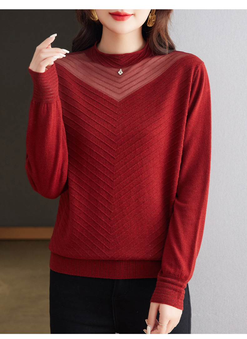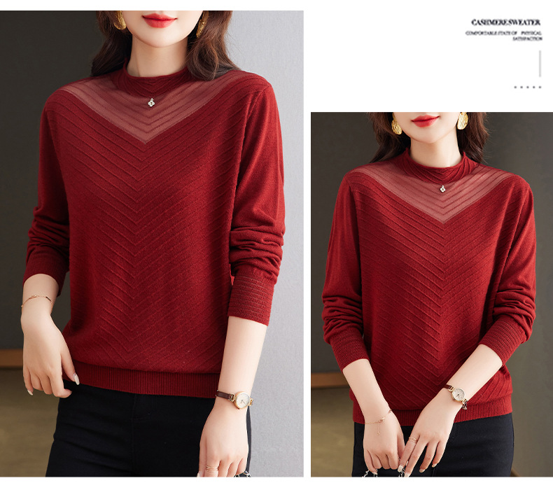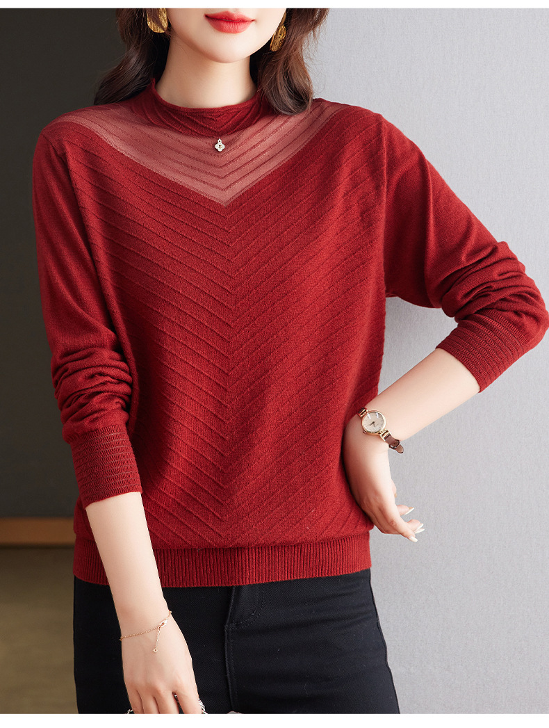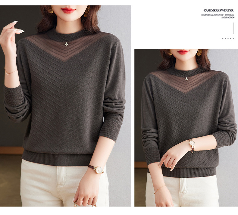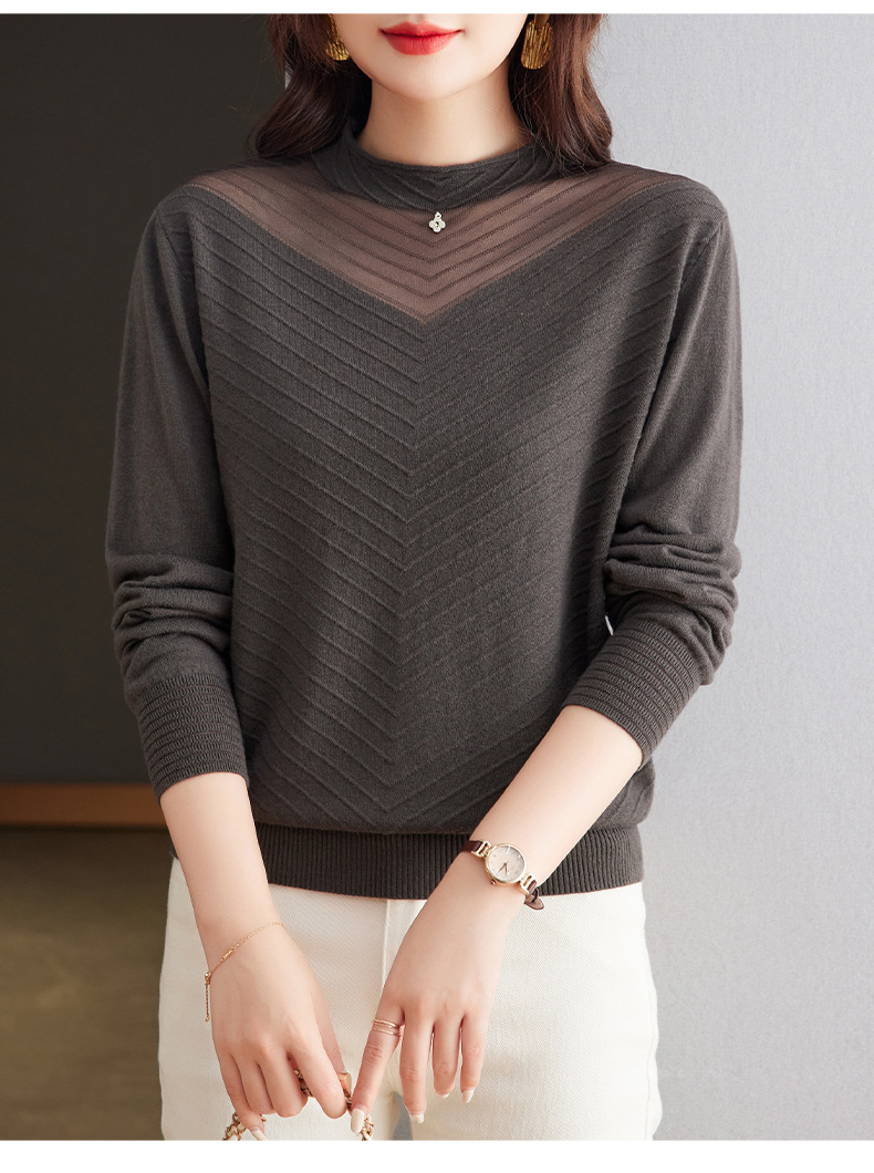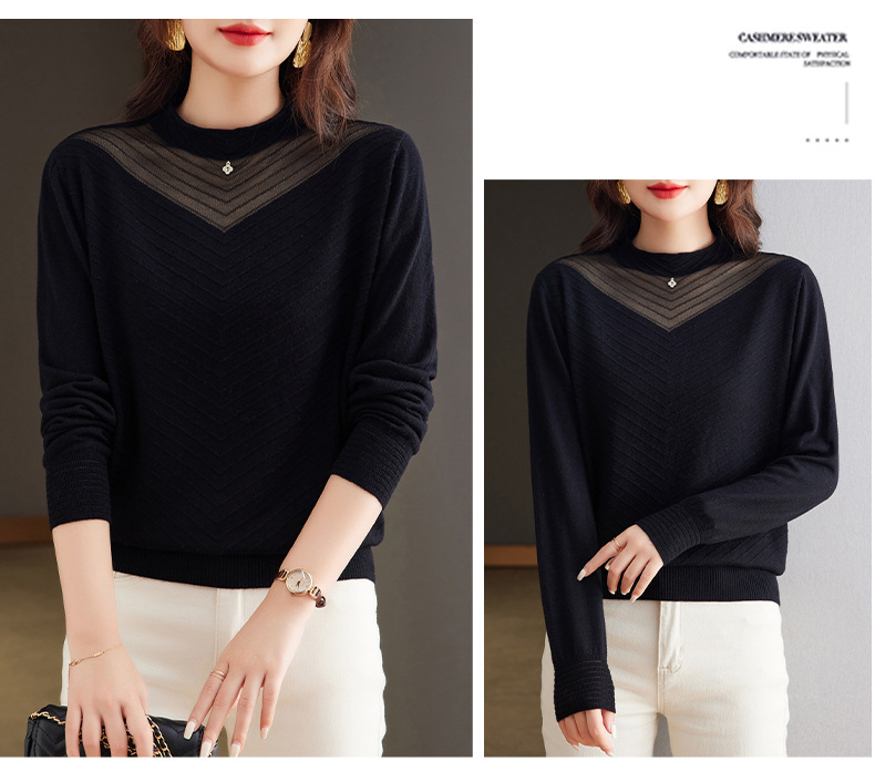 CC-tbrk-6899微透薄款镂空网纱羊毛针织长袖t恤2024秋新款短款百搭显瘦打底衫