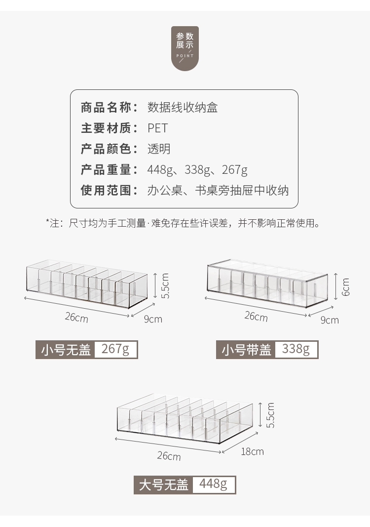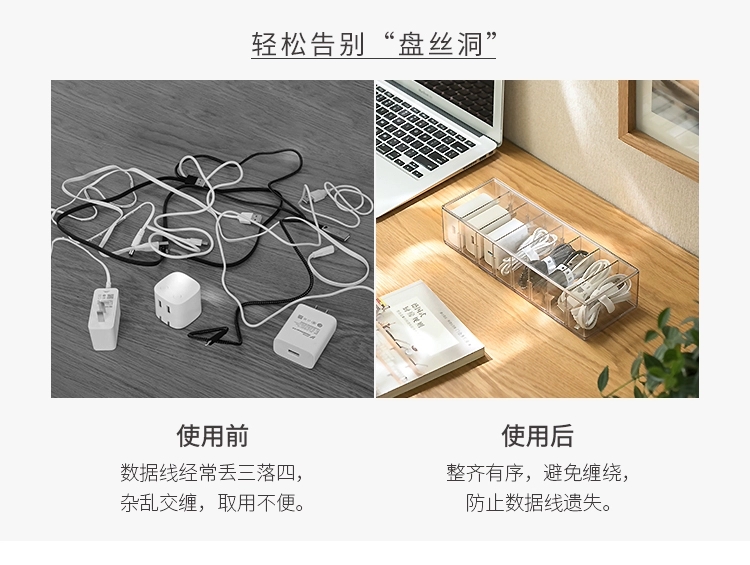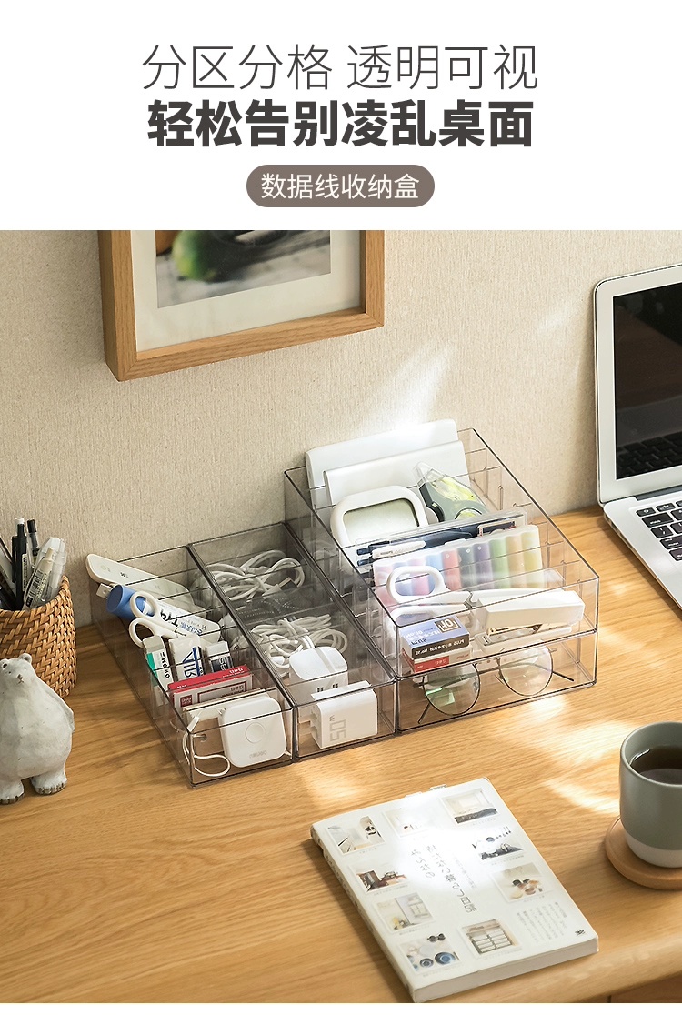 数据线收纳盒分格桌面电源线整理盒手机平板充电器充电线收纳