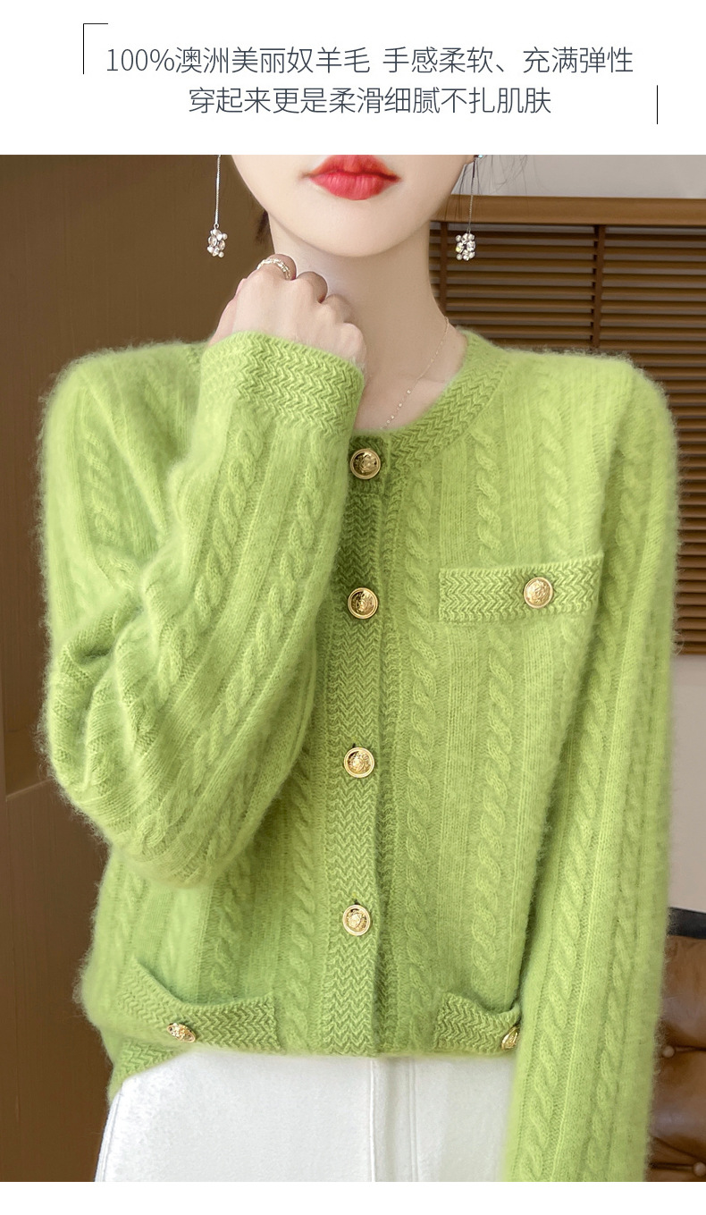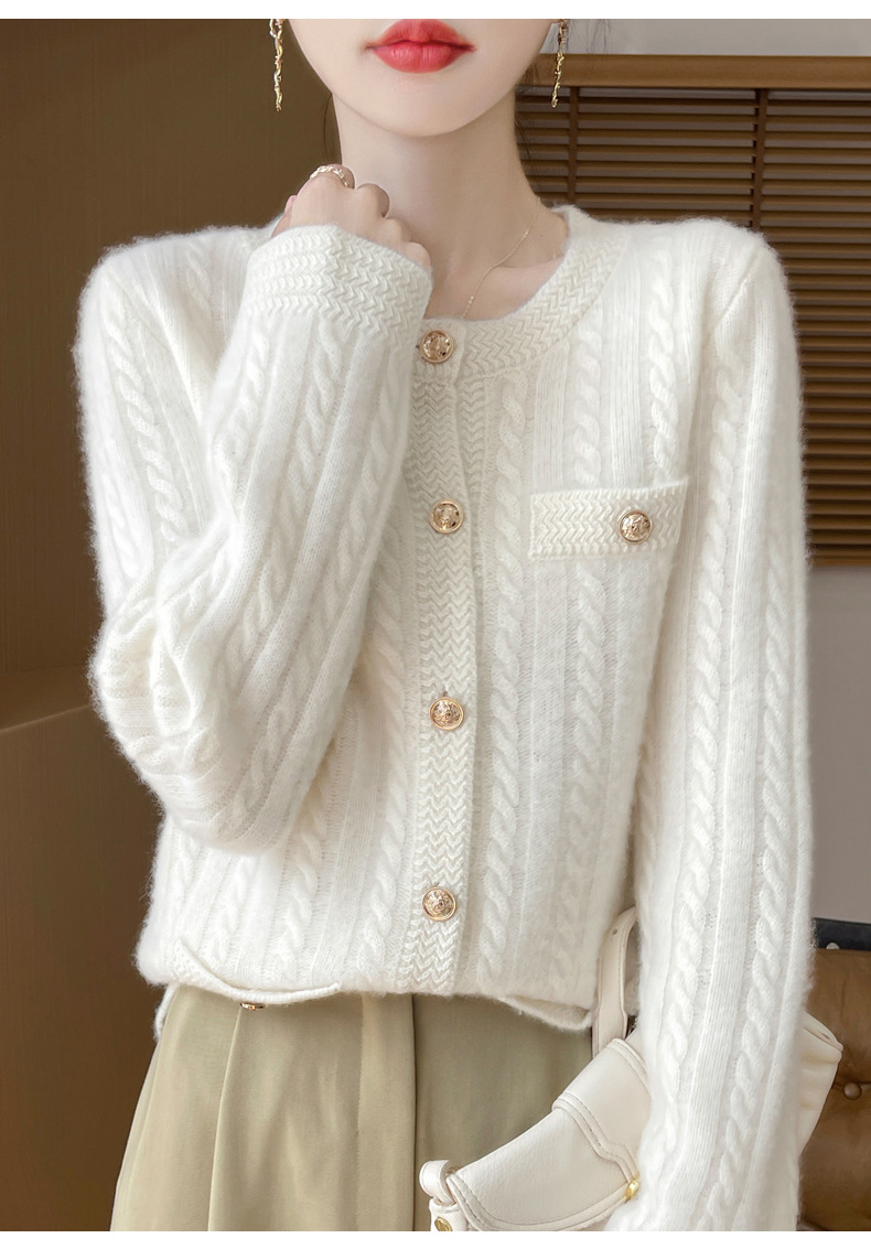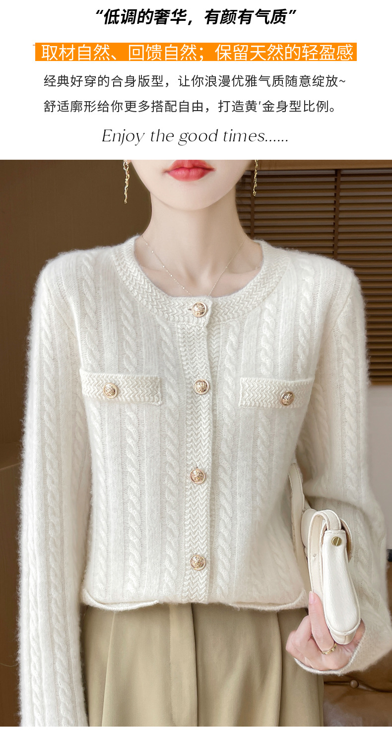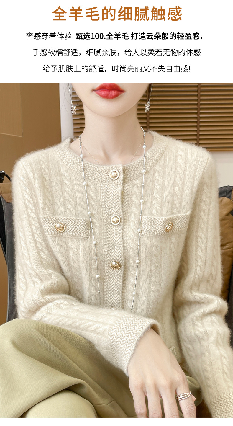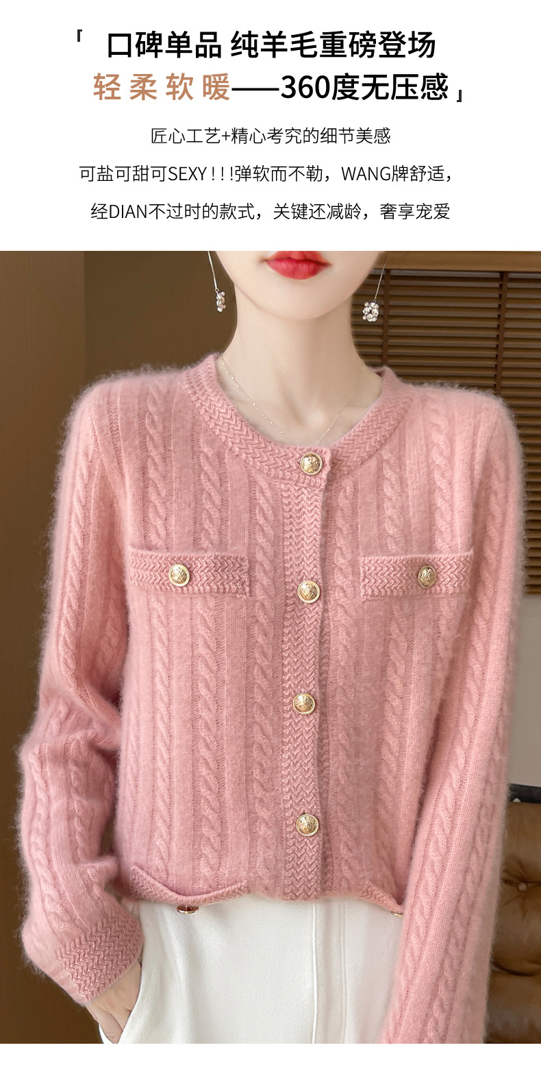 丁摩 100%纯羊毛小香风绞花开衫DMR327