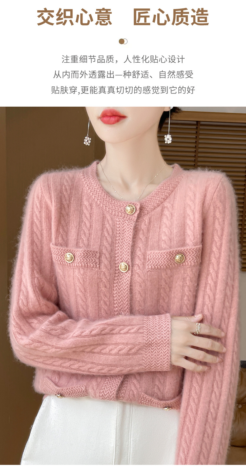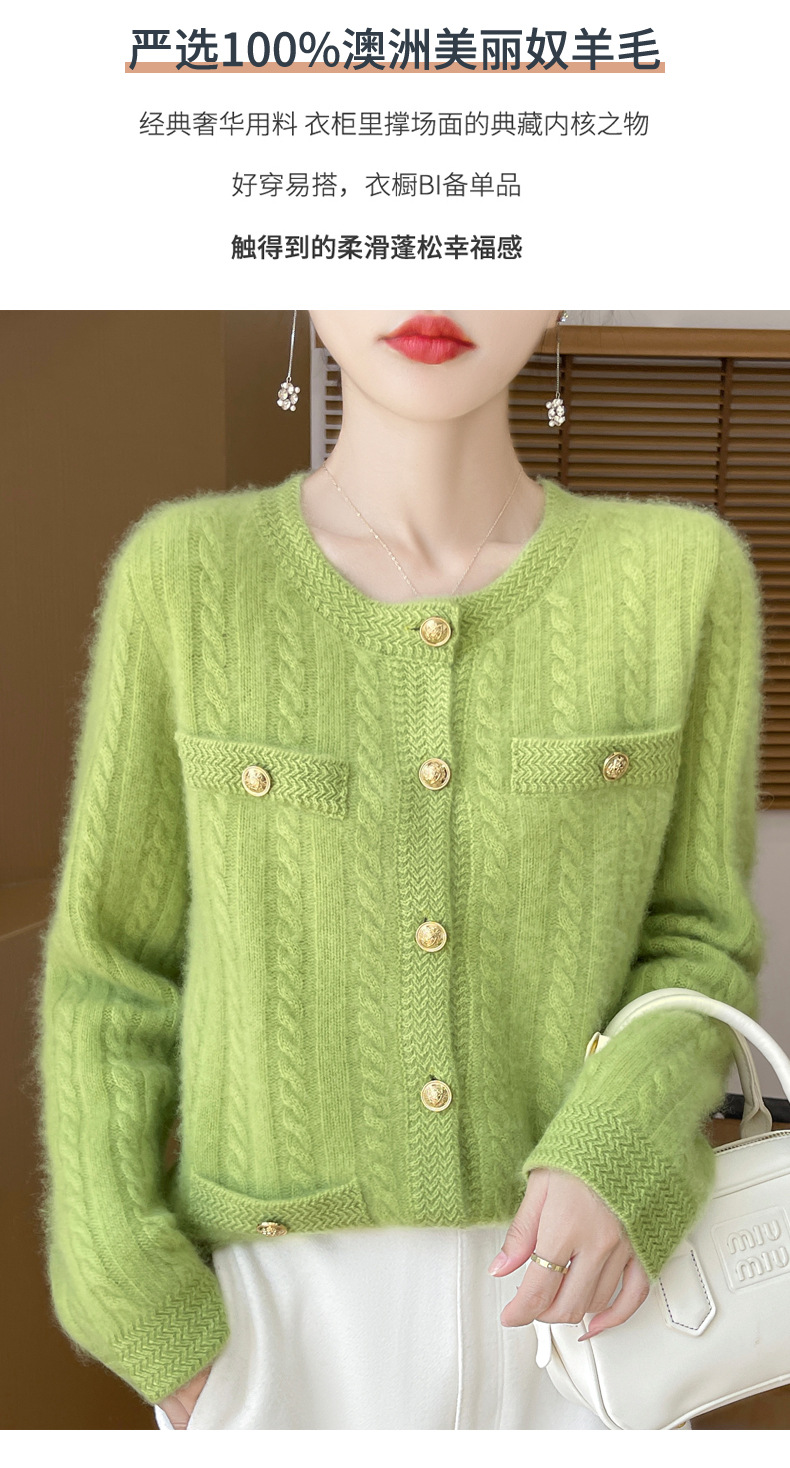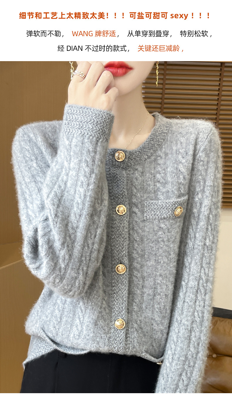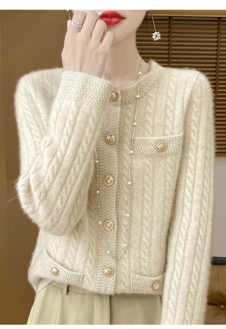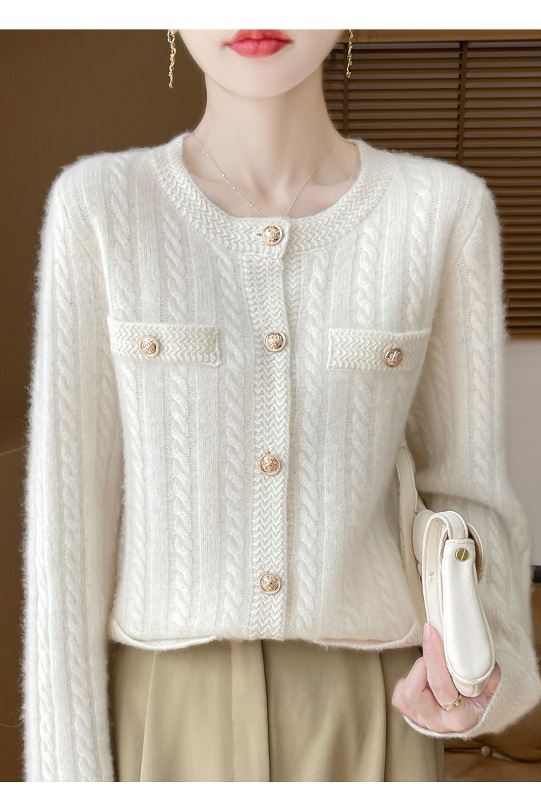 丁摩 100%纯羊毛小香风绞花开衫DMR327