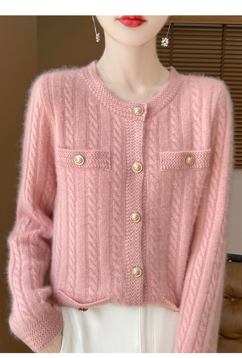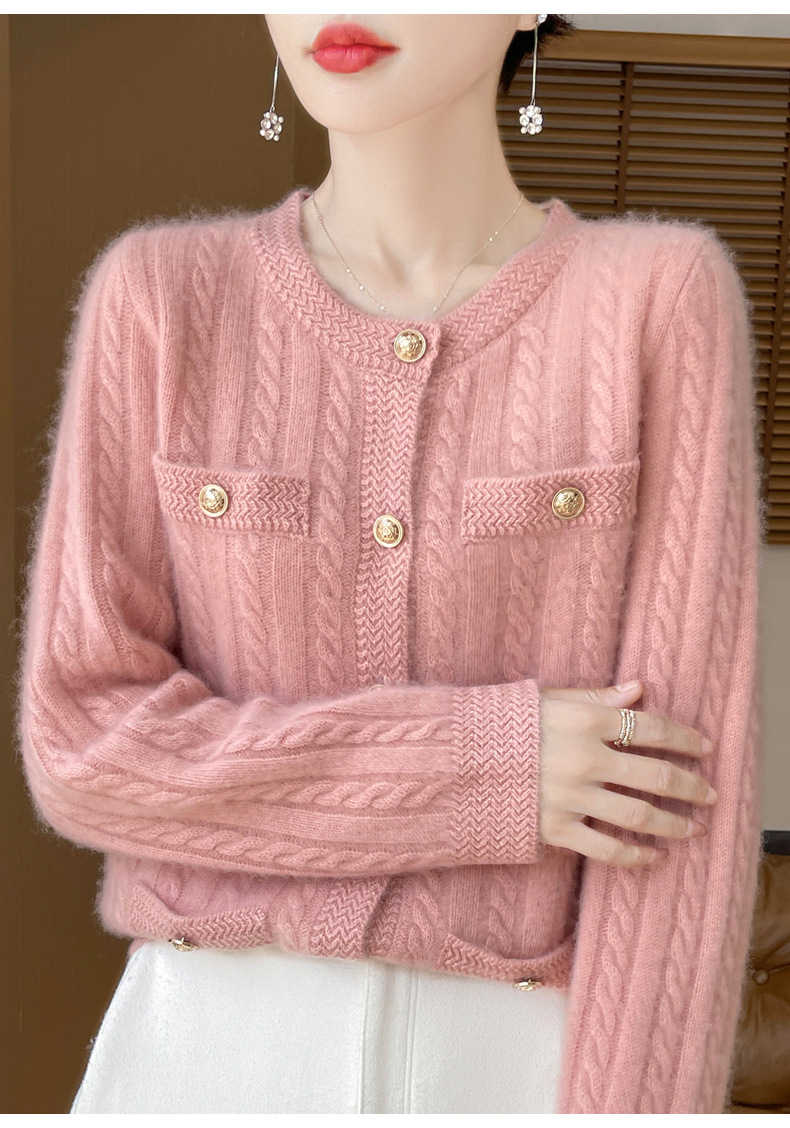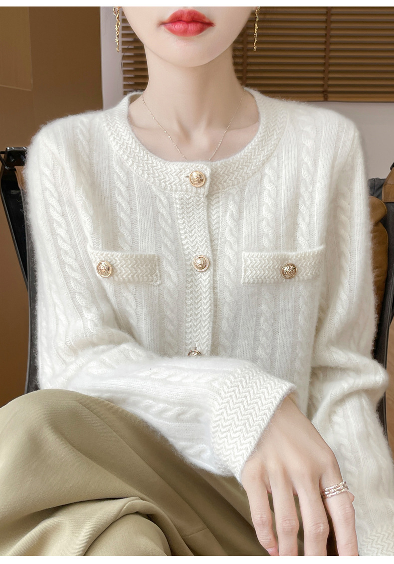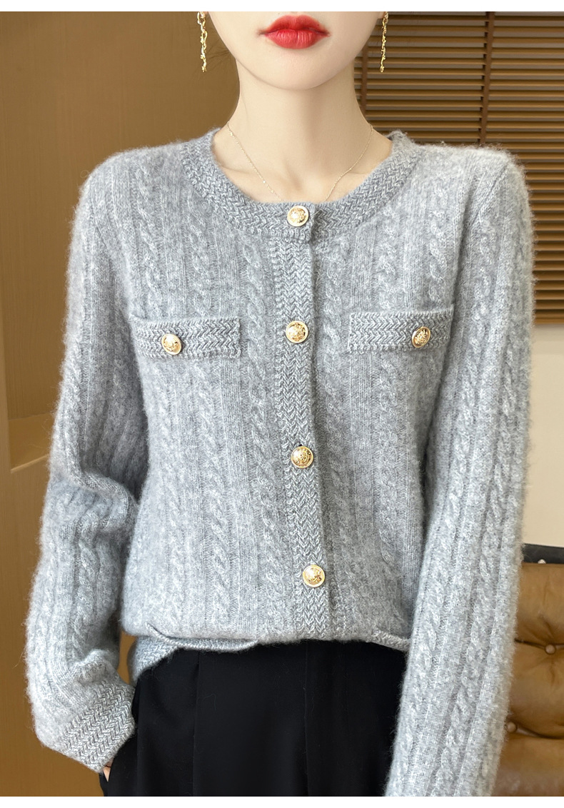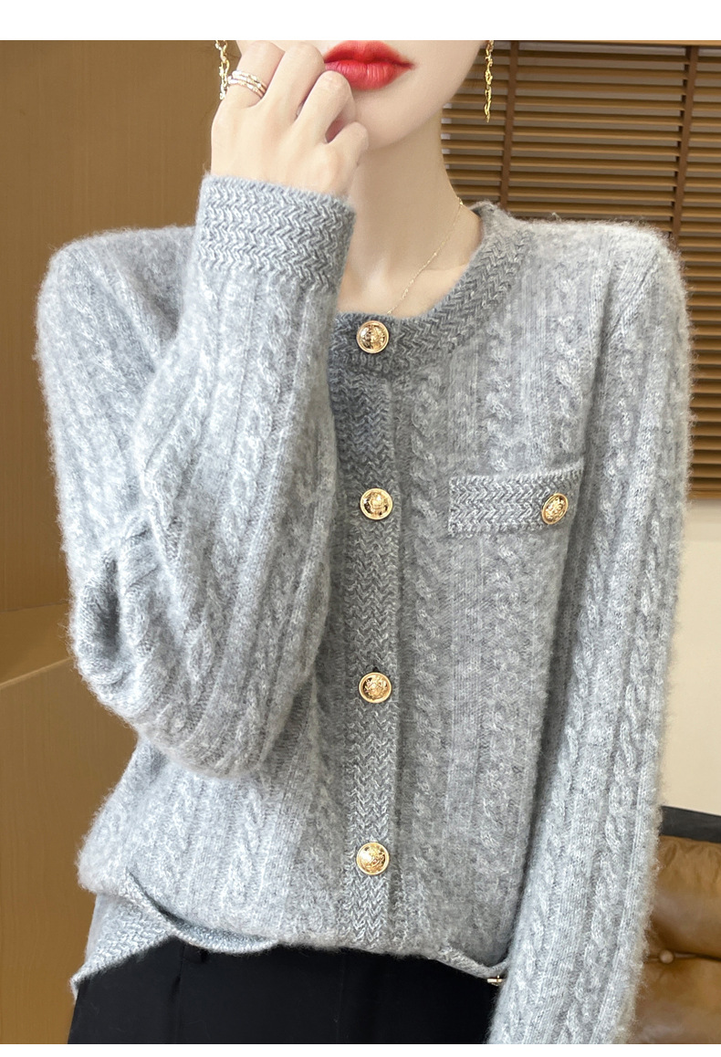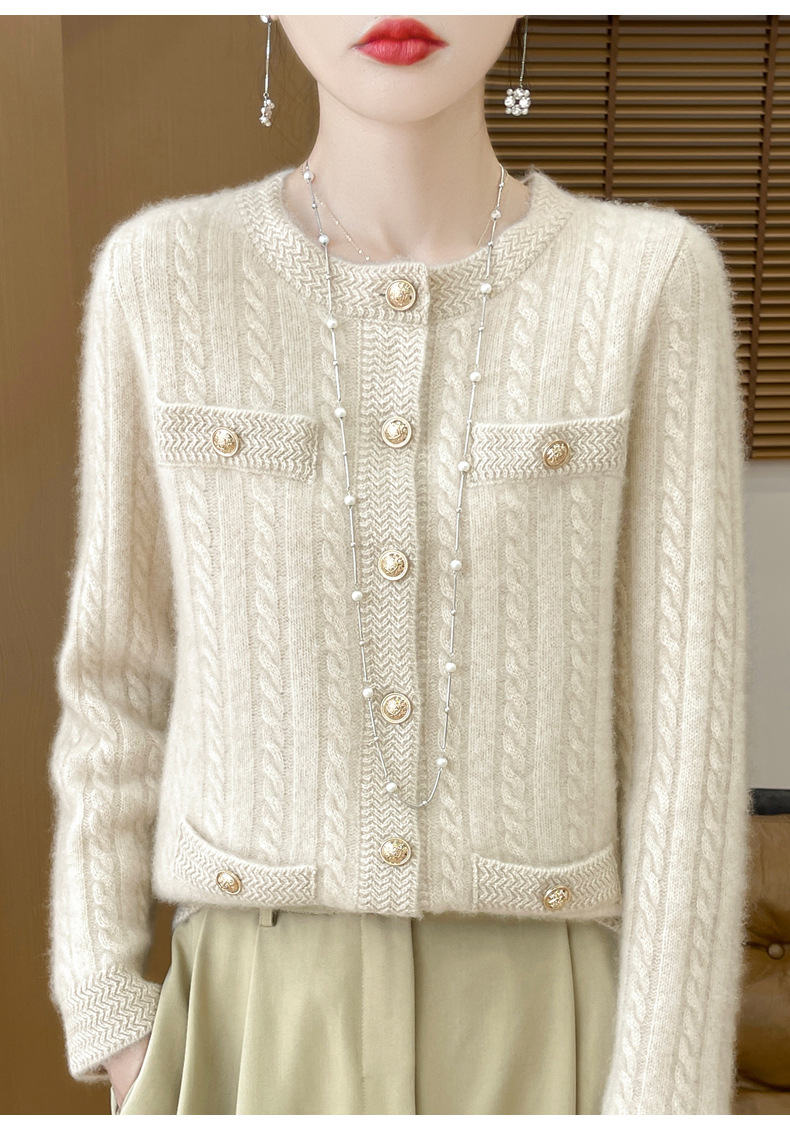 丁摩 100%纯羊毛小香风绞花开衫DMR327