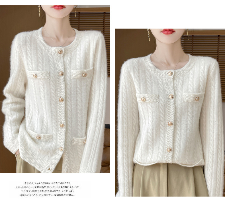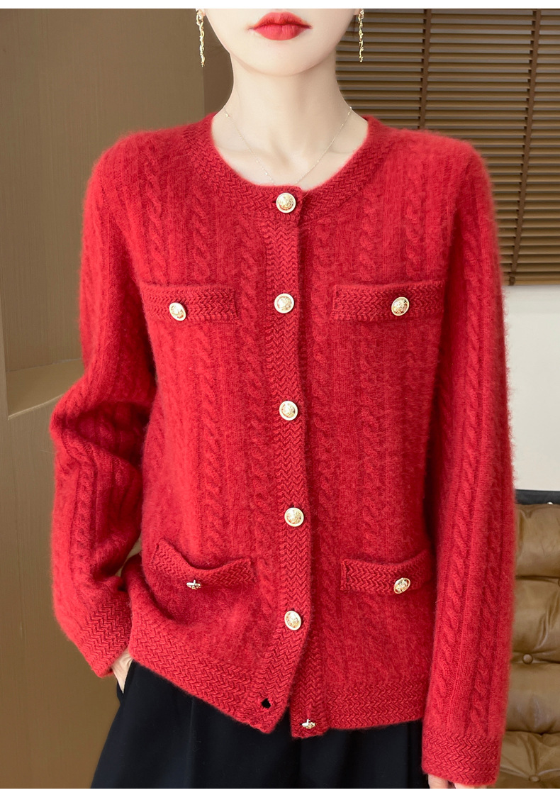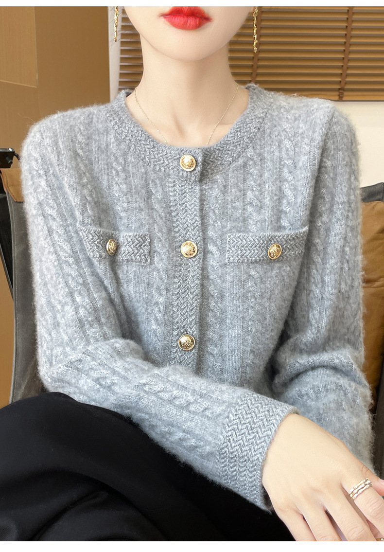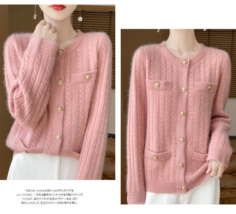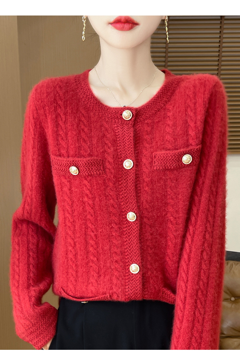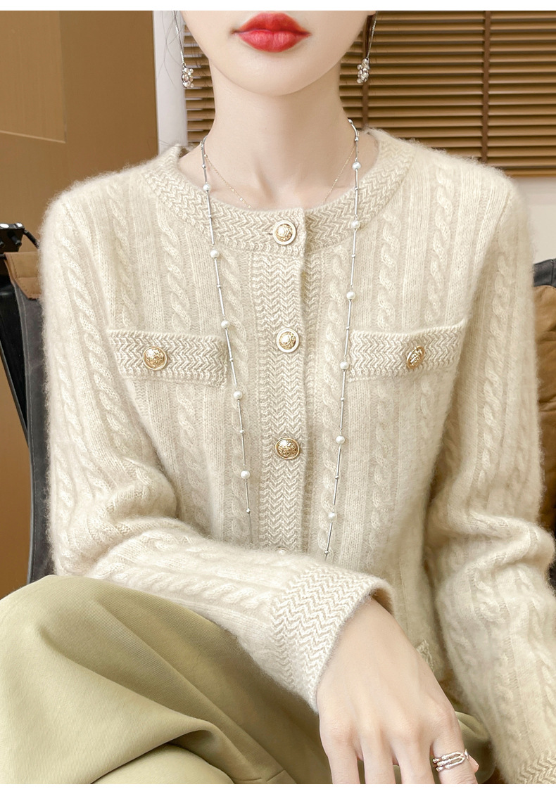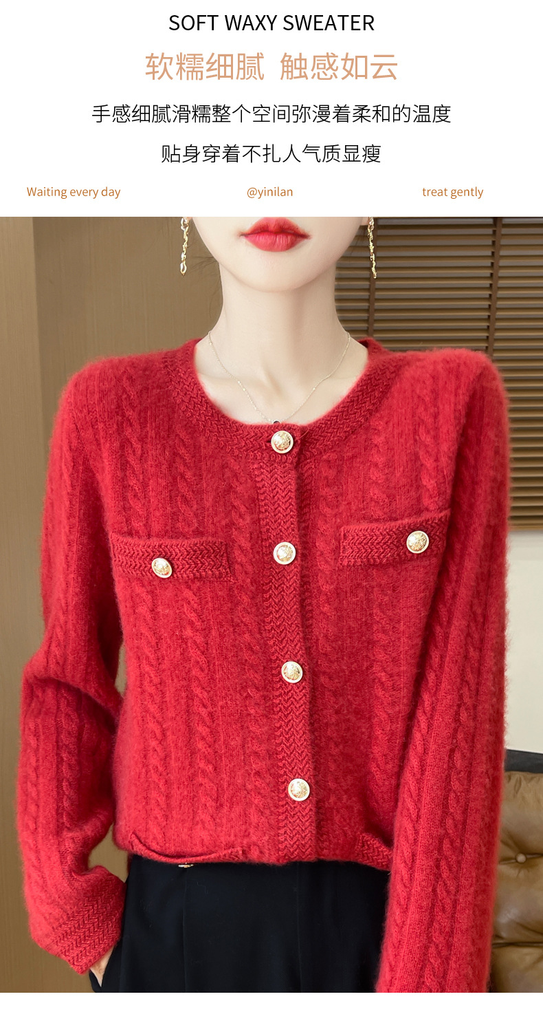 丁摩 100%纯羊毛小香风绞花开衫DMR327