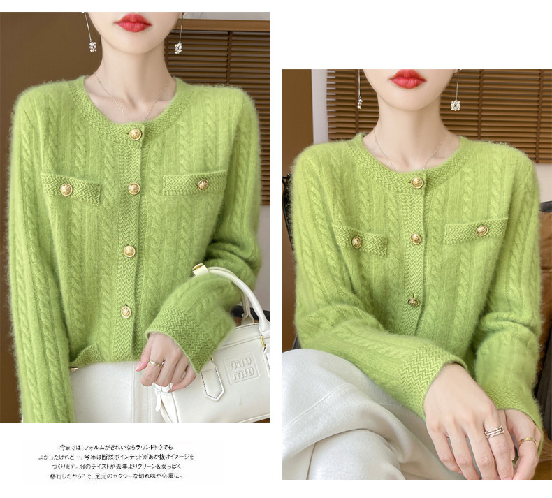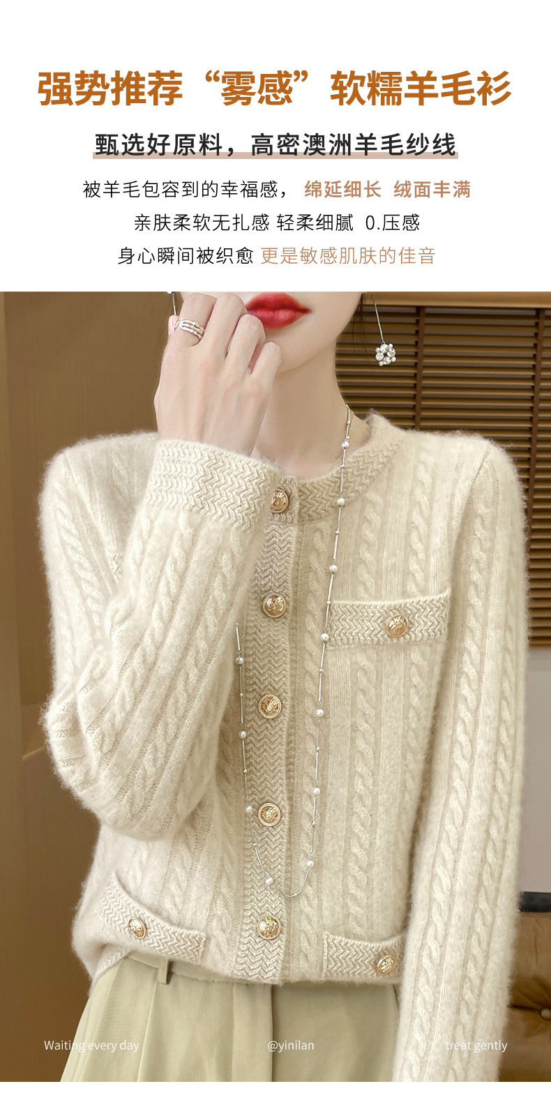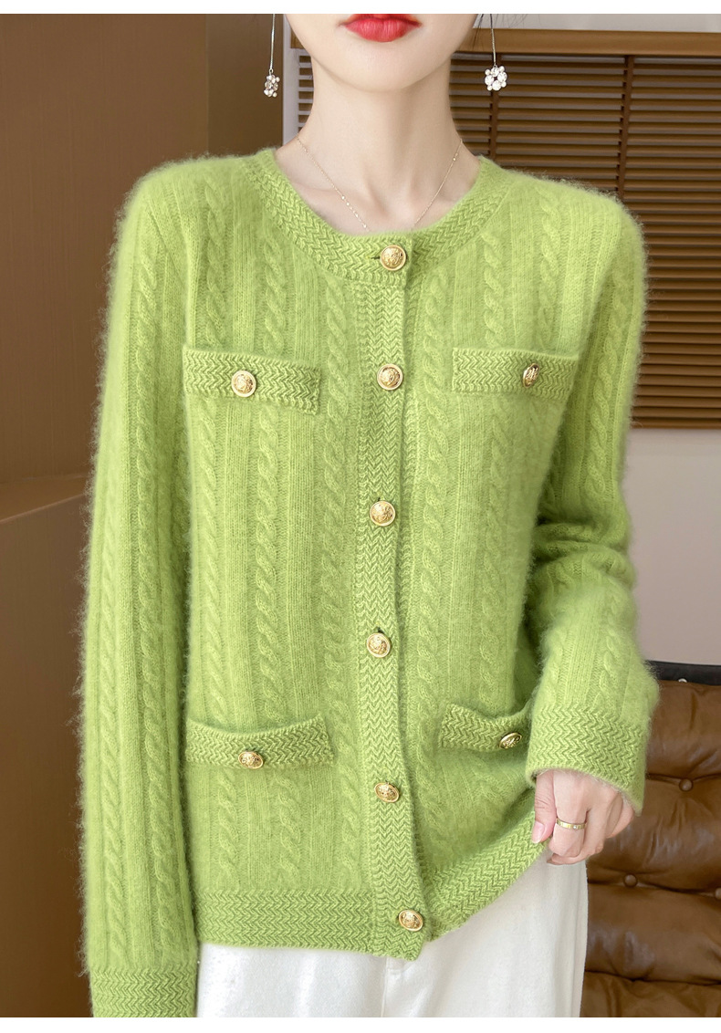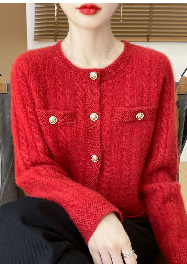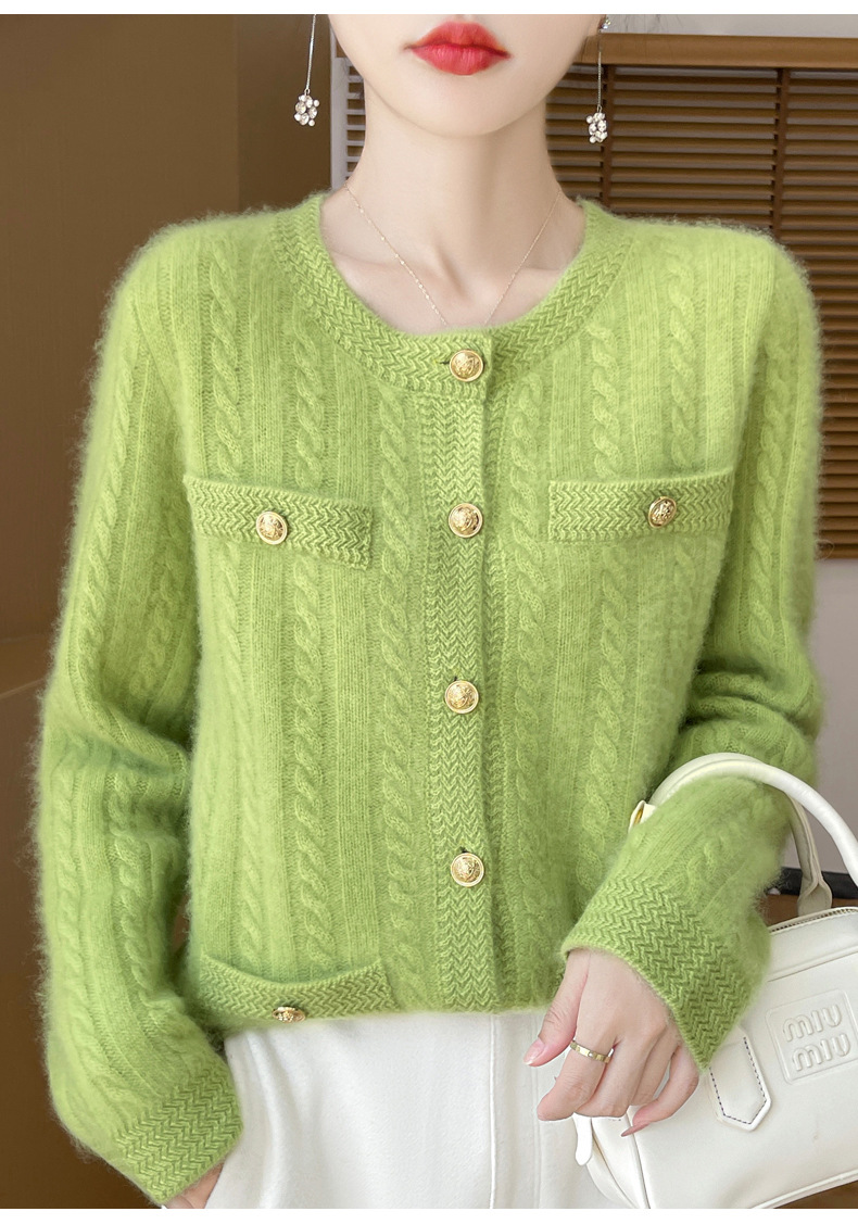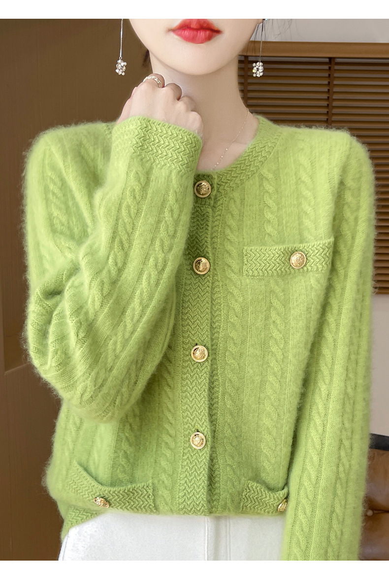 丁摩 100%纯羊毛小香风绞花开衫DMR327