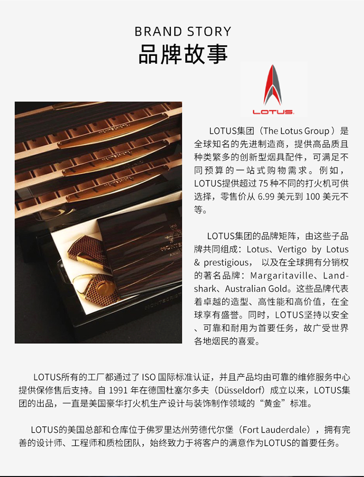 有盛誉。坚持安全、可靠和耐用为首要任务,一直是美国豪华打火机生产设计与装饰制作领域的“黄金”标准。