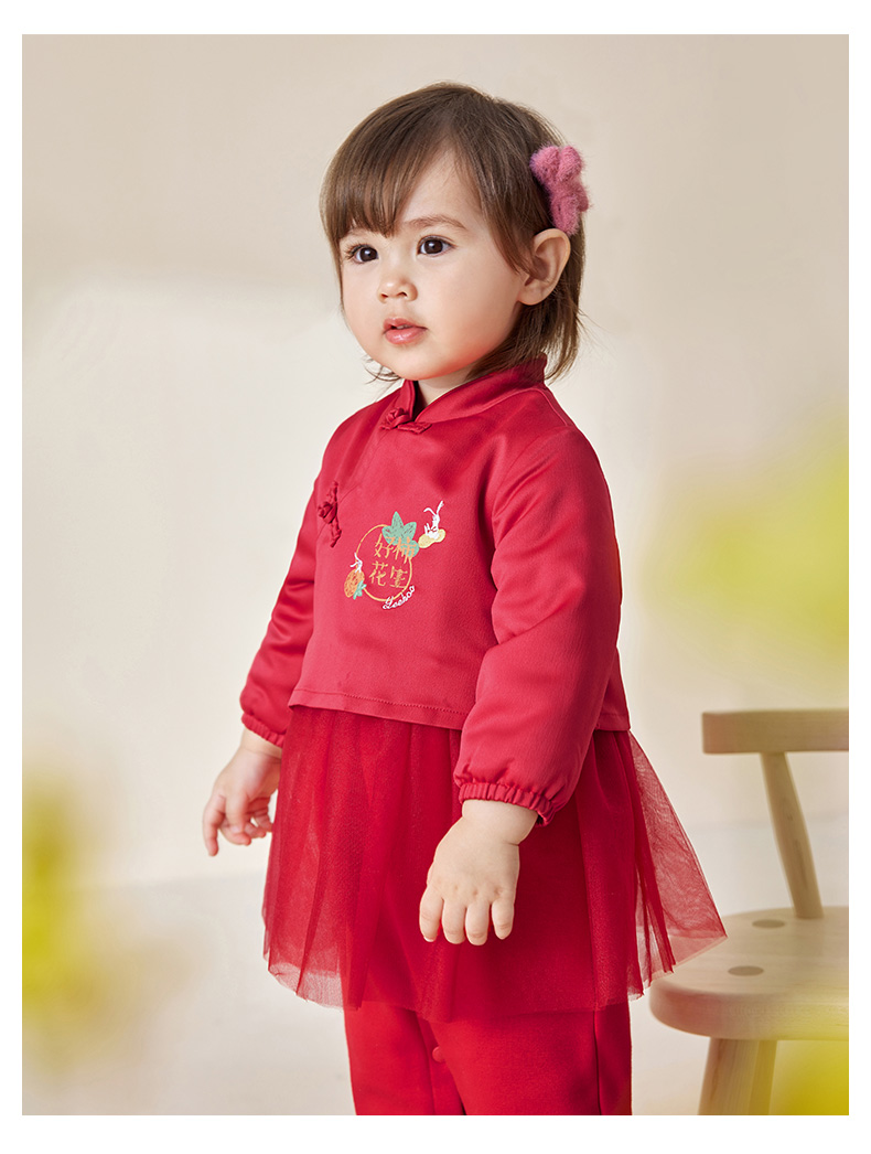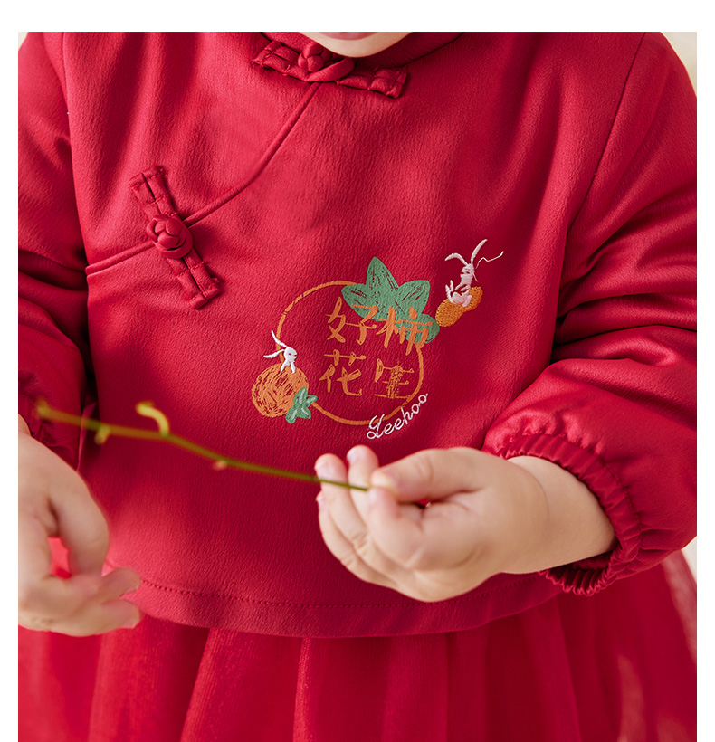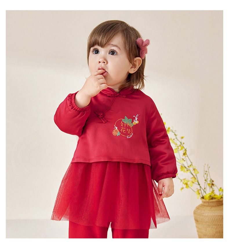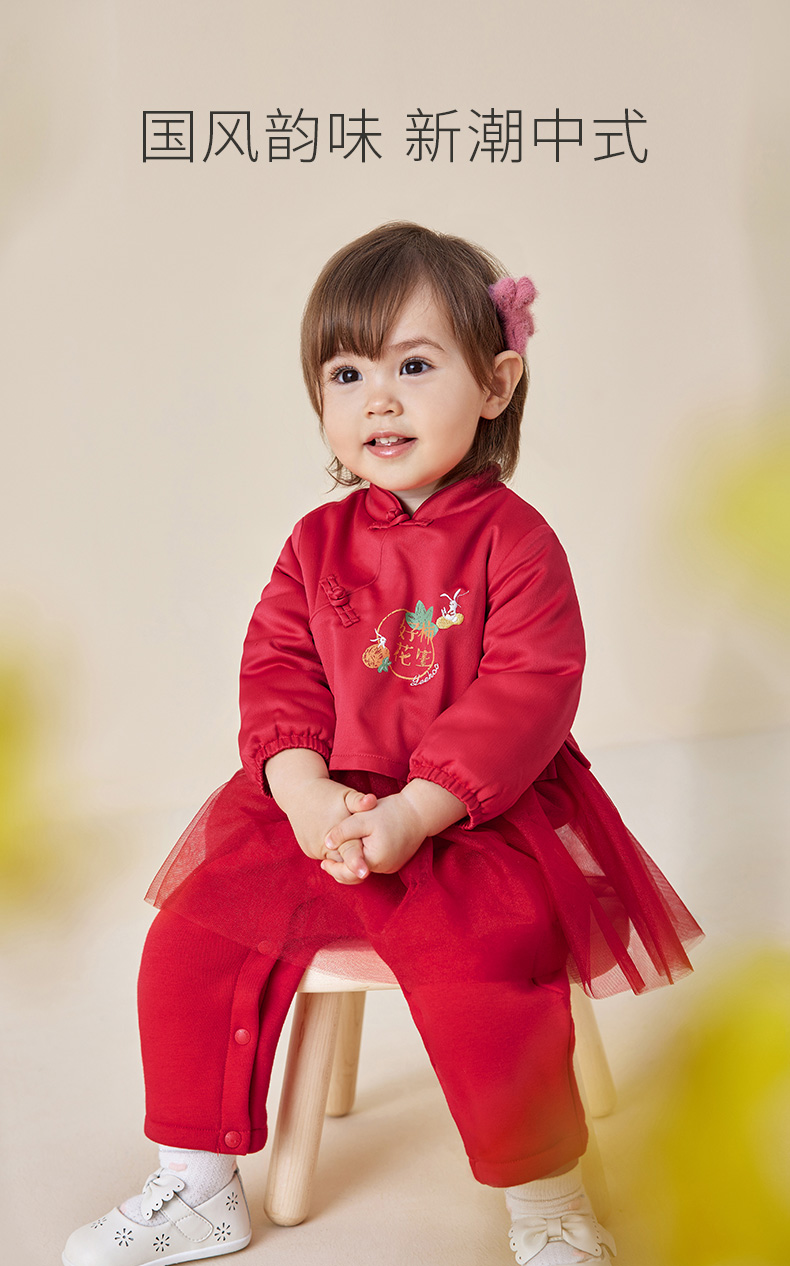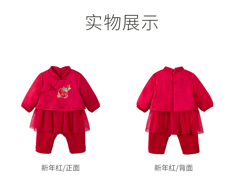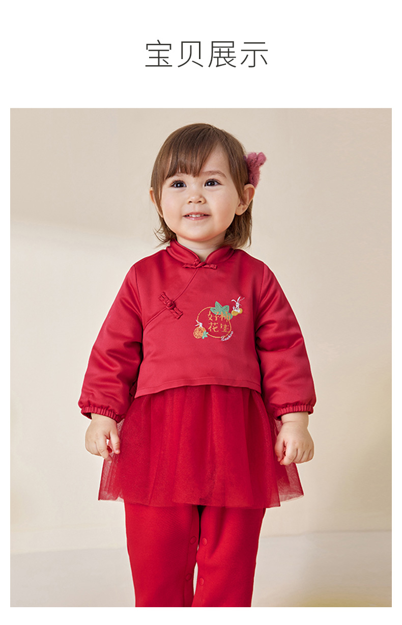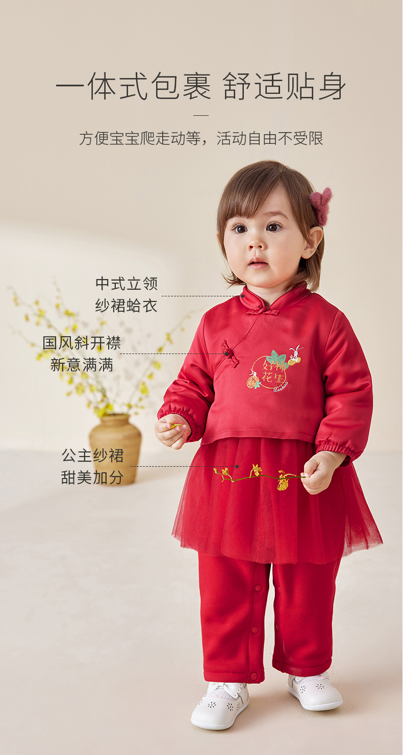 【商场同款】英氏夹棉连体衣秋冬款哈衣女童新年系列爬服