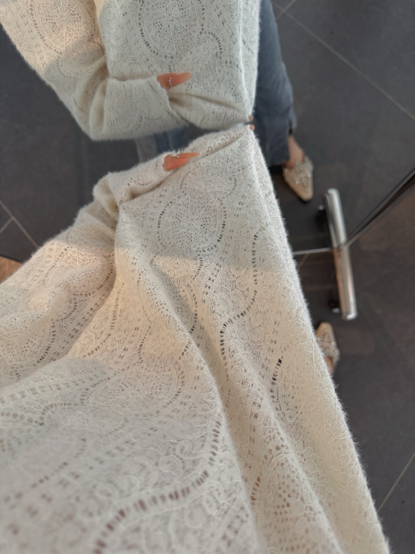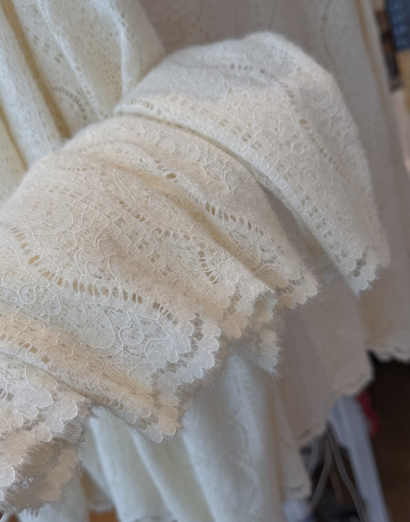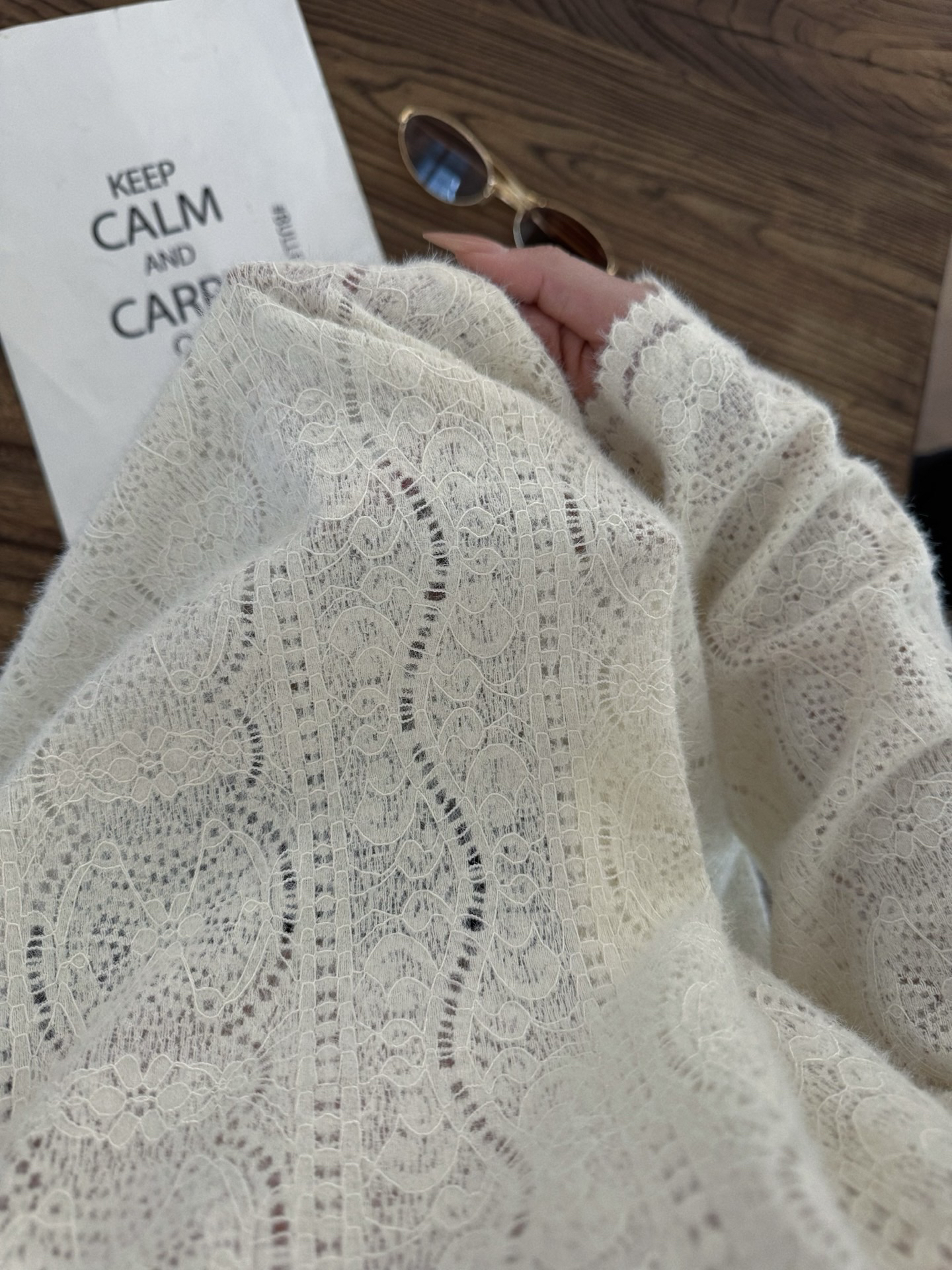运用镂空机织和睫毛蕾丝的工艺,既有柔软的触感 同时具备蕾丝花型的筋骨!表层模拟兔绒感的毛丝纤维 丰盈且亲肤,毛绒绒的触感 完全不扎!!