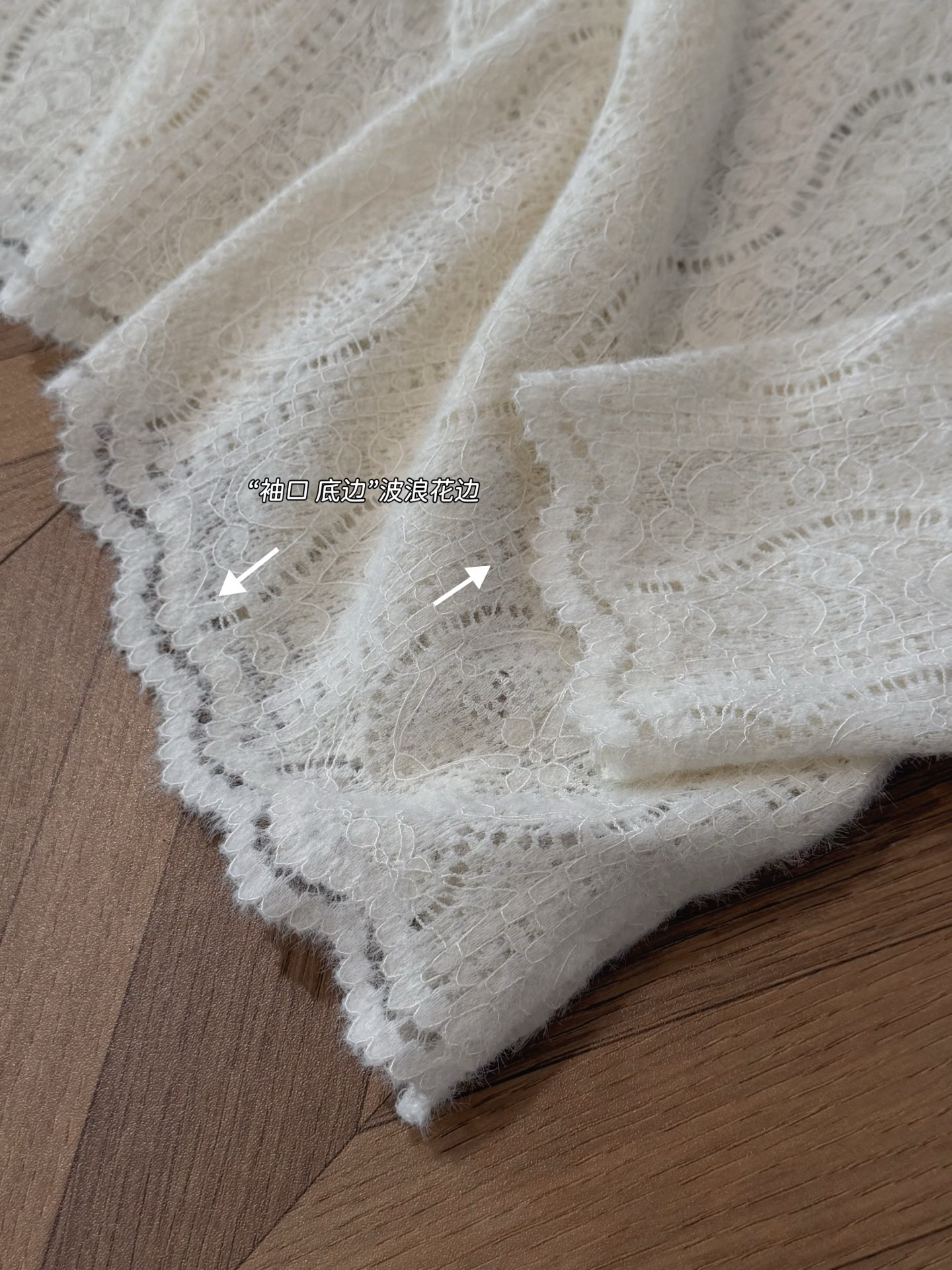 ➡️袖口、底摆是精美的波浪花边设计,需要定位裁 格外费料!对于这个蕾丝的精致度 真的爱了!!我最近天天穿 脱不下说的就是它了 超喜欢!
