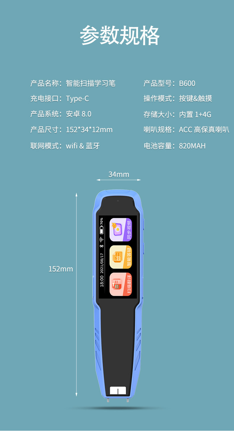 笔博士离线英语点读笔1.97寸离线版B600(4G)智能扫描笔,词典笔搜题,解题一支笔搞定