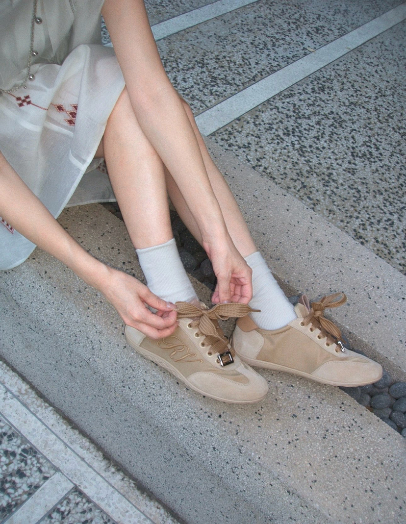 Viv low Sneaker 新款德顺鞋,搭配经典标志性水钻小方扣,低调彰显时髦态度。重点是,原楦原材,只有卡其色和白色~~~