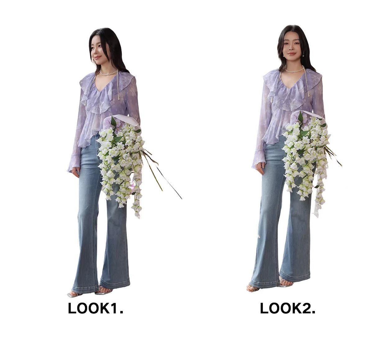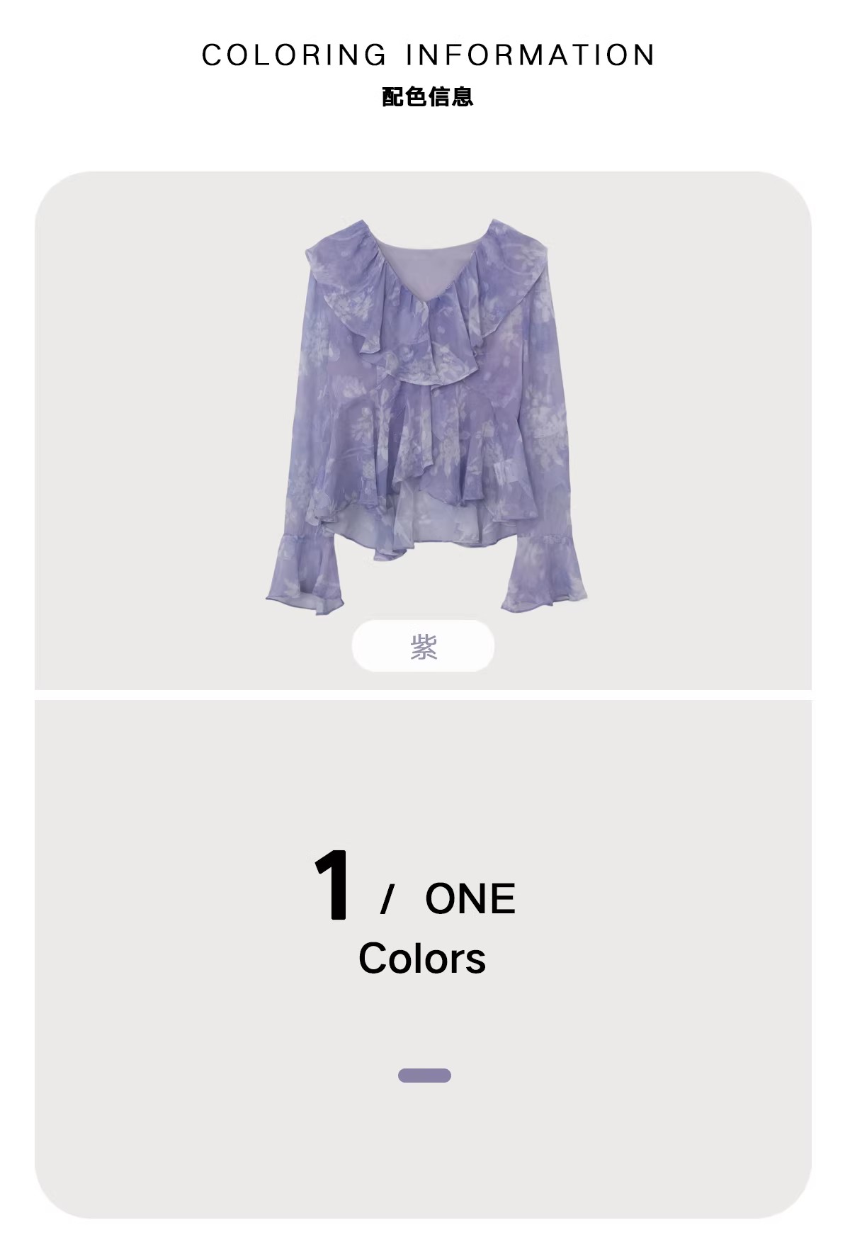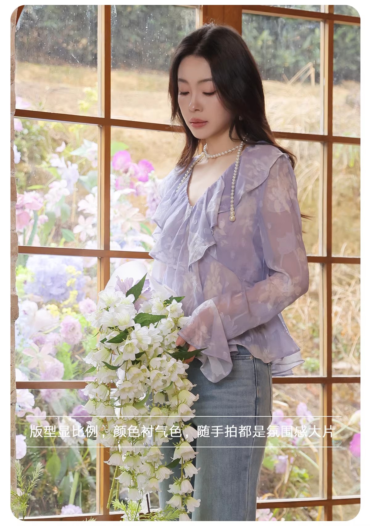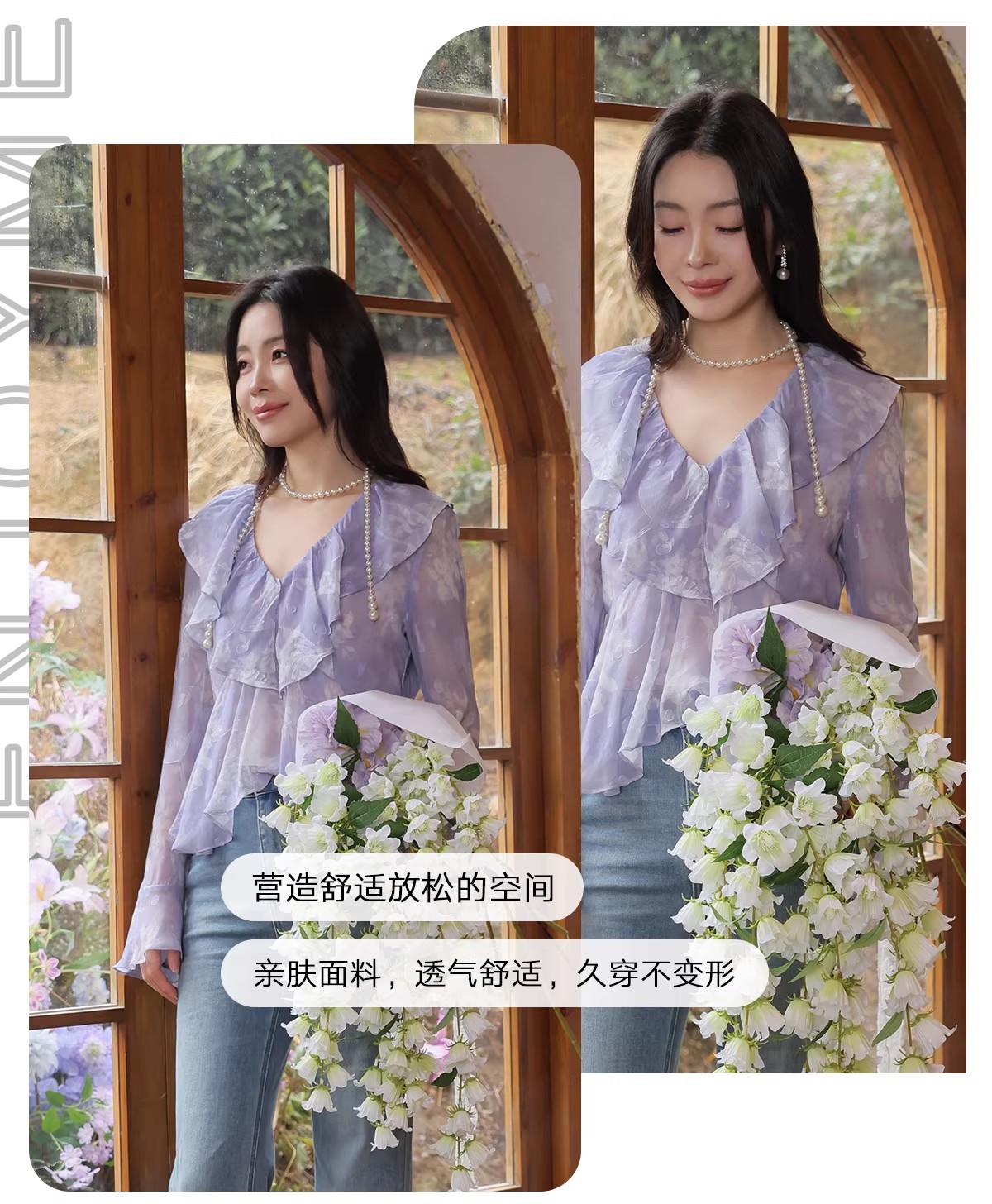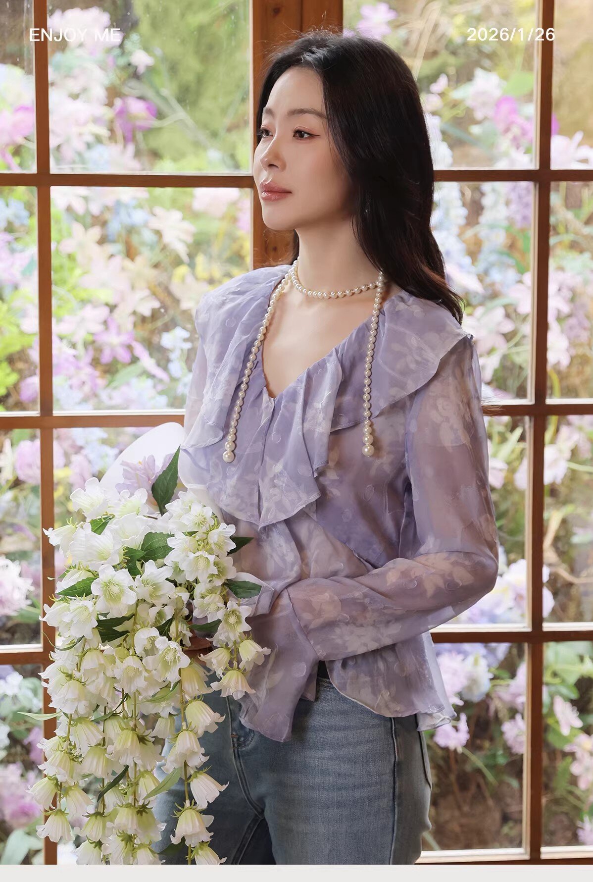 【门店同款】ENJOY春季“柔光芳序”蝶梦紫藤荷叶边上衣 169247797