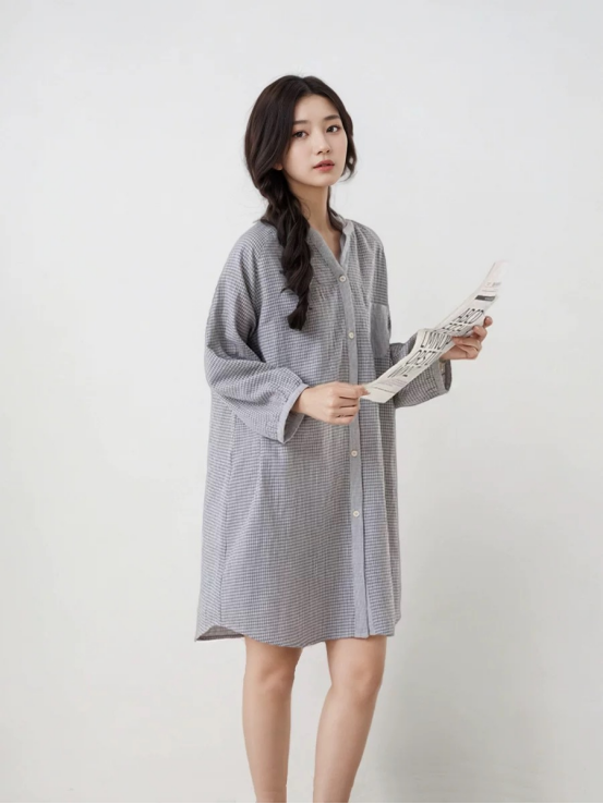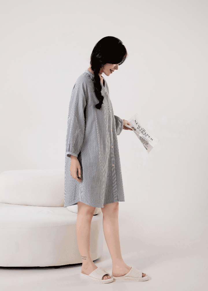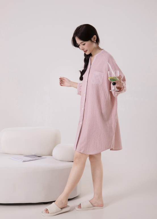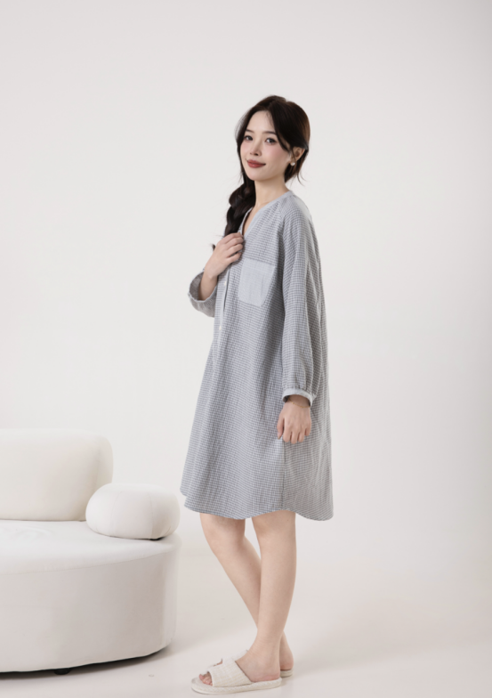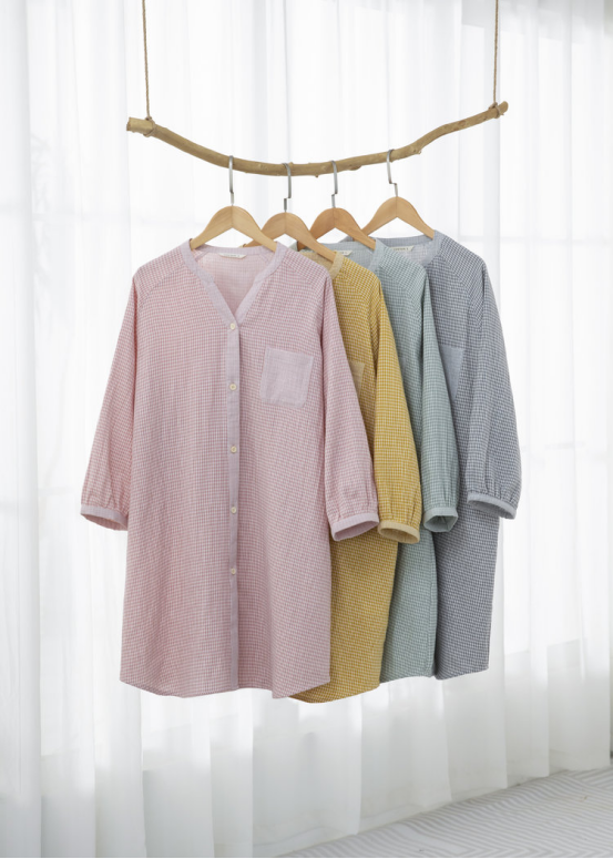 🙋♀ 【法国玛万生活方块田园风V领裙】棉质睡衣😍越穿越舒服 一定不要错过!超级绵软!肉眼可见的软糯👍