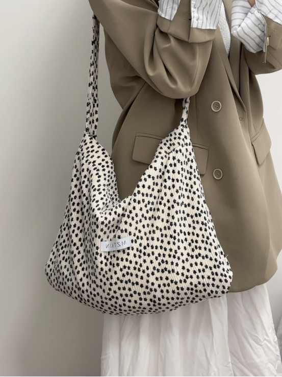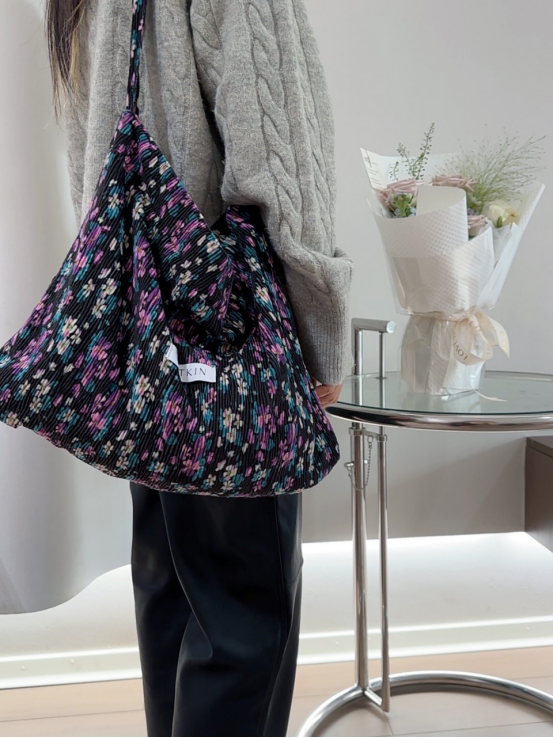 还有跟秋天很搭的碎花款,是章若楠同款~ 日系慵懒拉满 超清爽der~ 材质是灯芯绒,背着超舒适,也很能装,嘿嘿