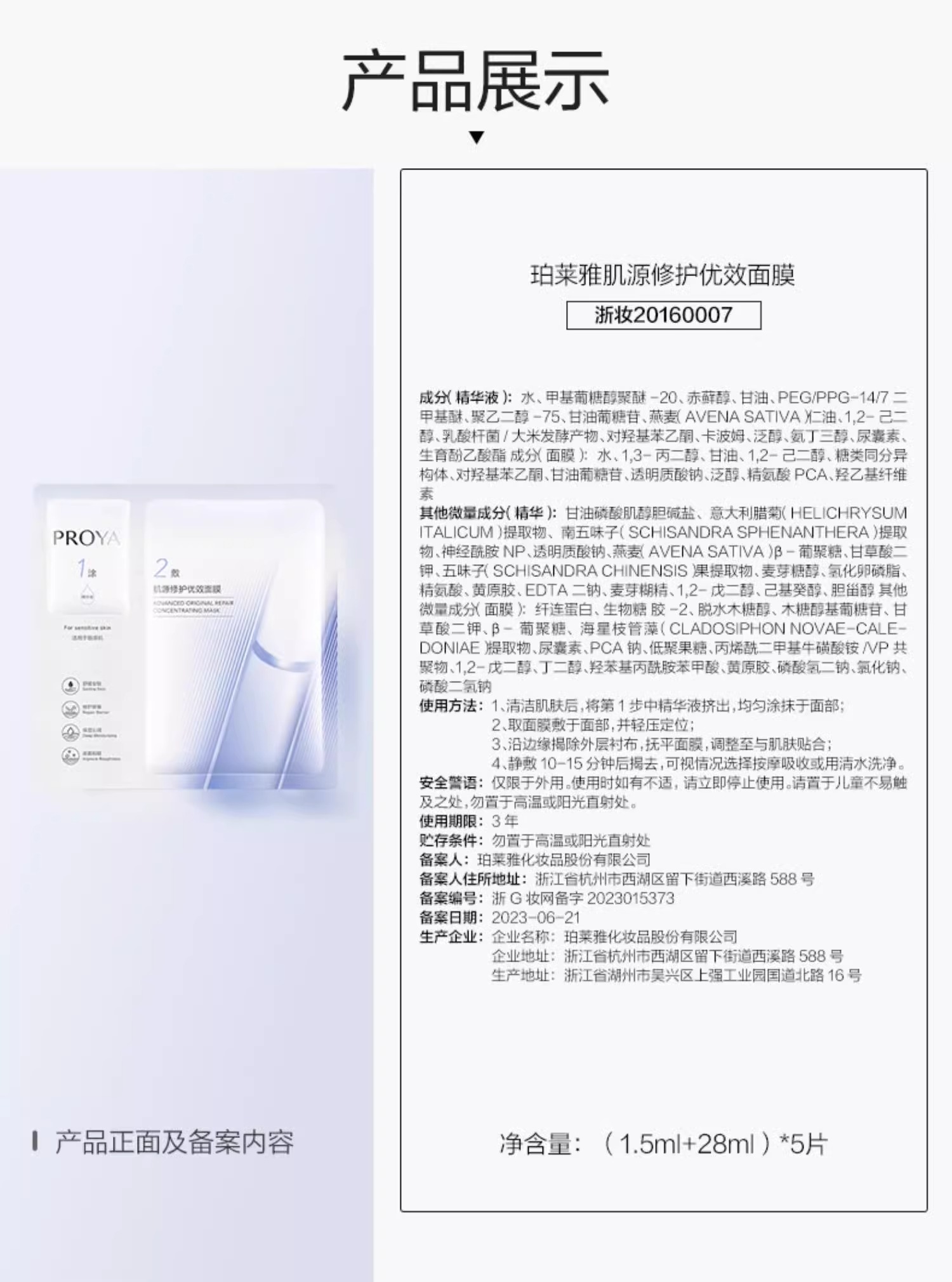 珀莱雅肌源修护优效面膜(1.5ml+28ml)*5片/盒(源力面膜 2.0版)