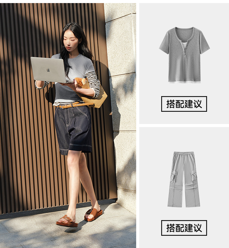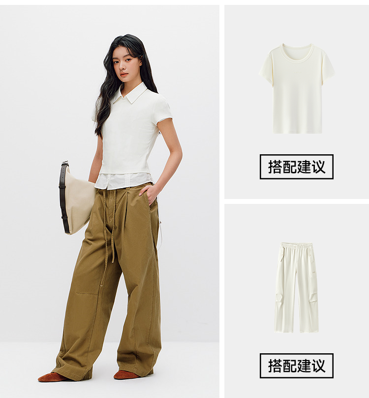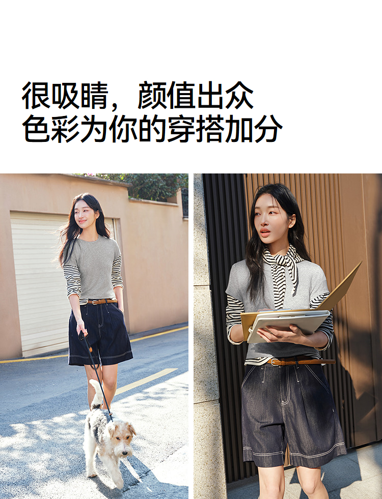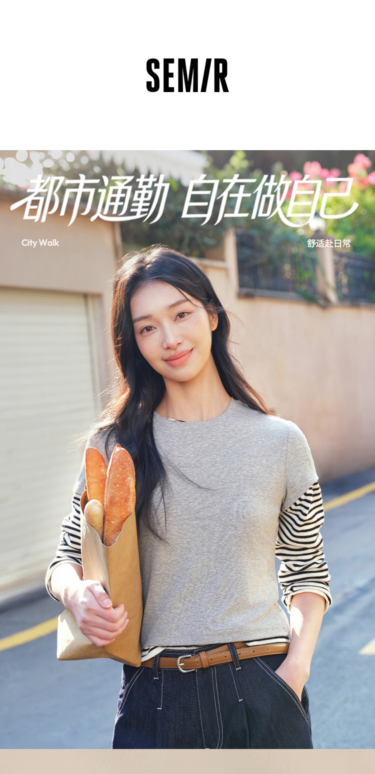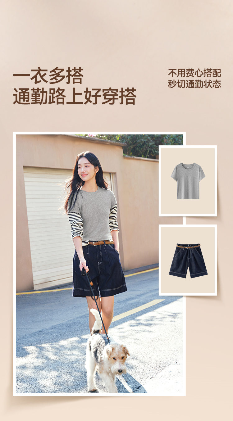 商场同款|森马短袖T恤女夏短款纯色修身圆领2026新款休闲简约上衣