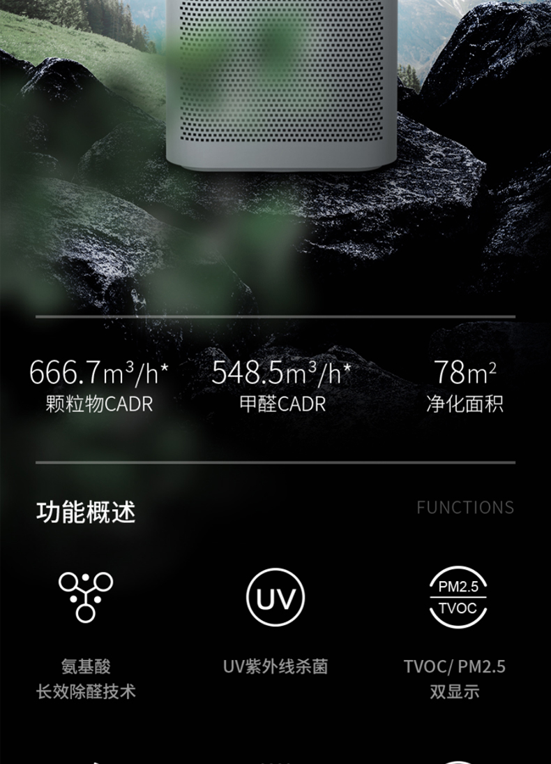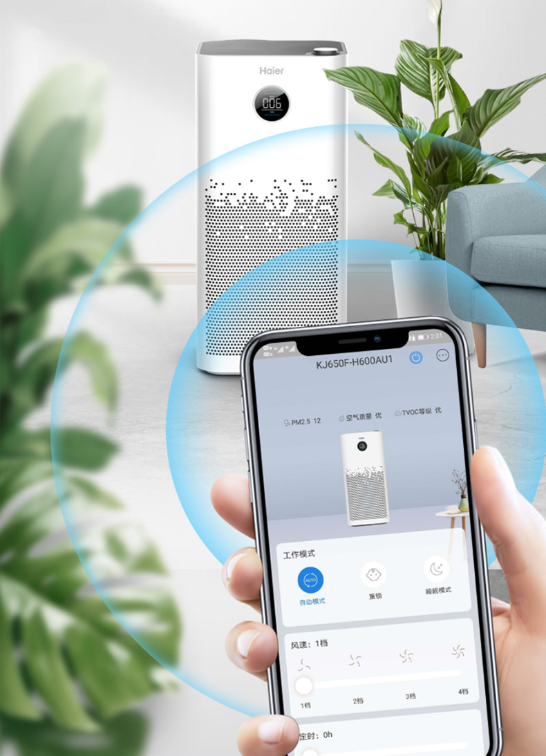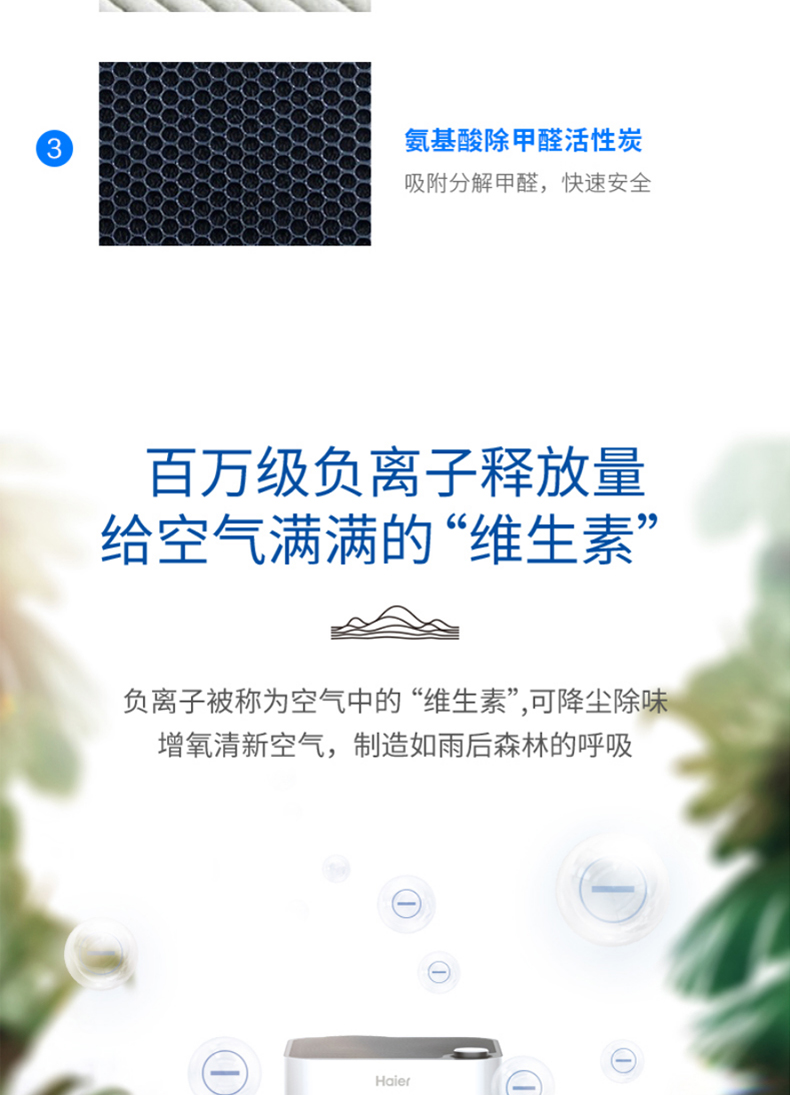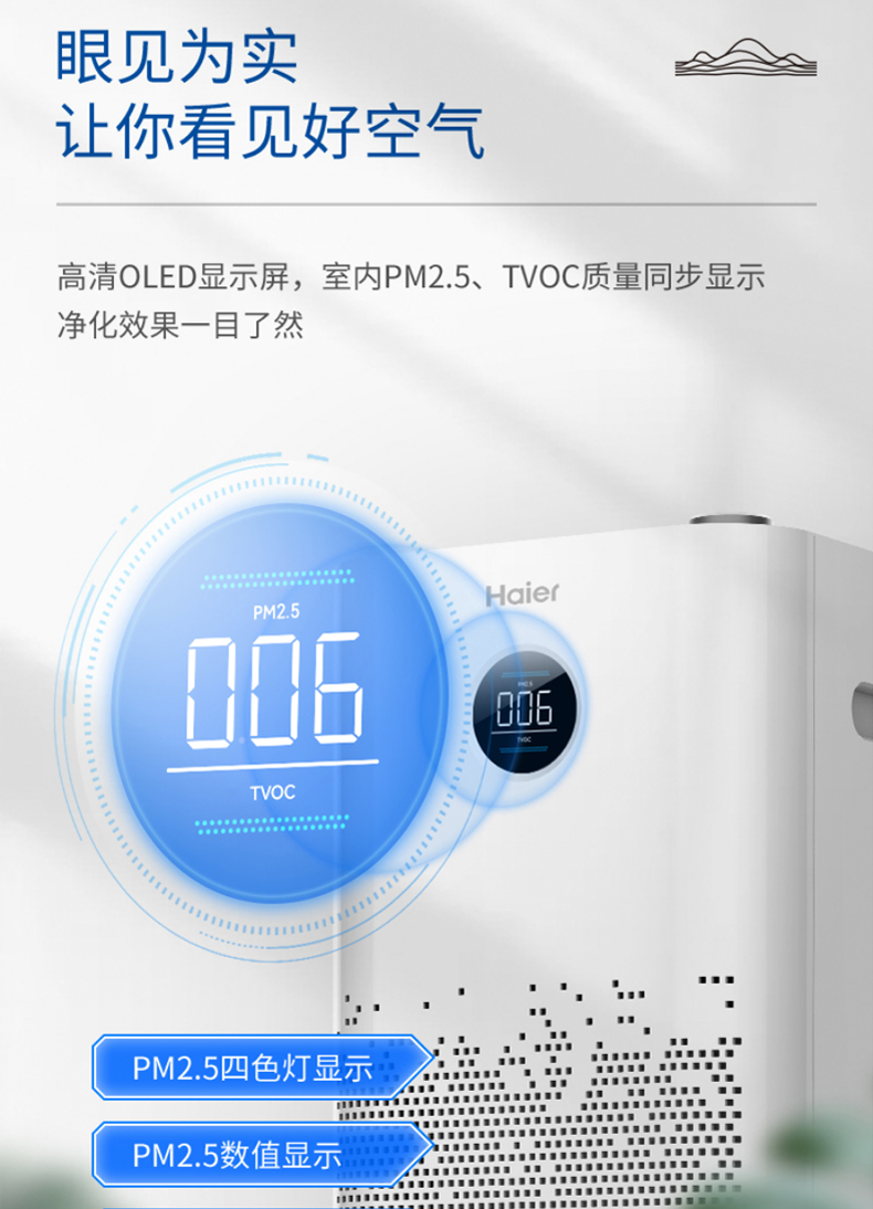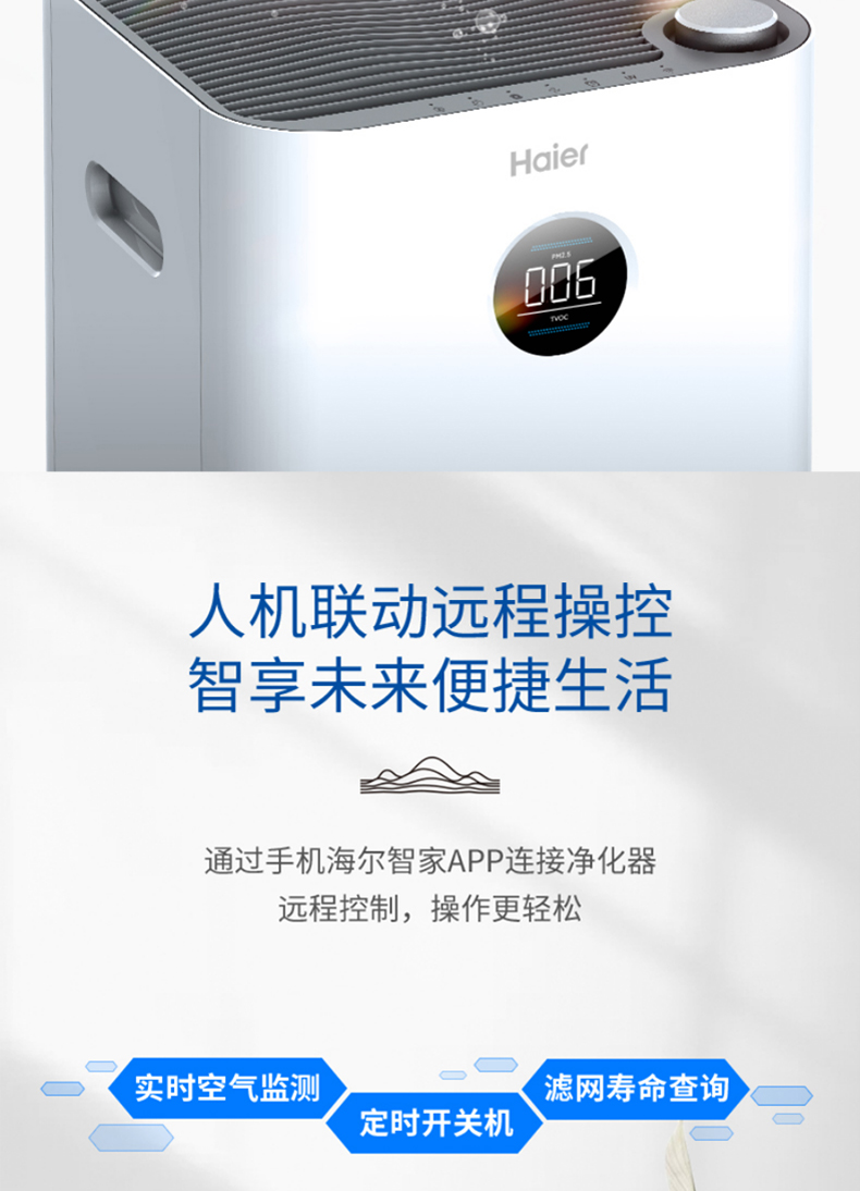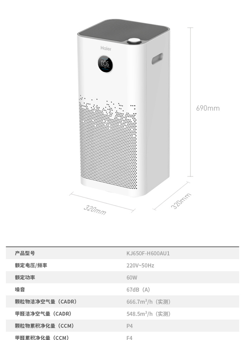 海尔(Haier) 空气净化器家用除甲醛除雾霾除烟除尘 紫外线除菌 氨基酸分解除醛 除TVOC 四色显示 KJ650F-H600AU1