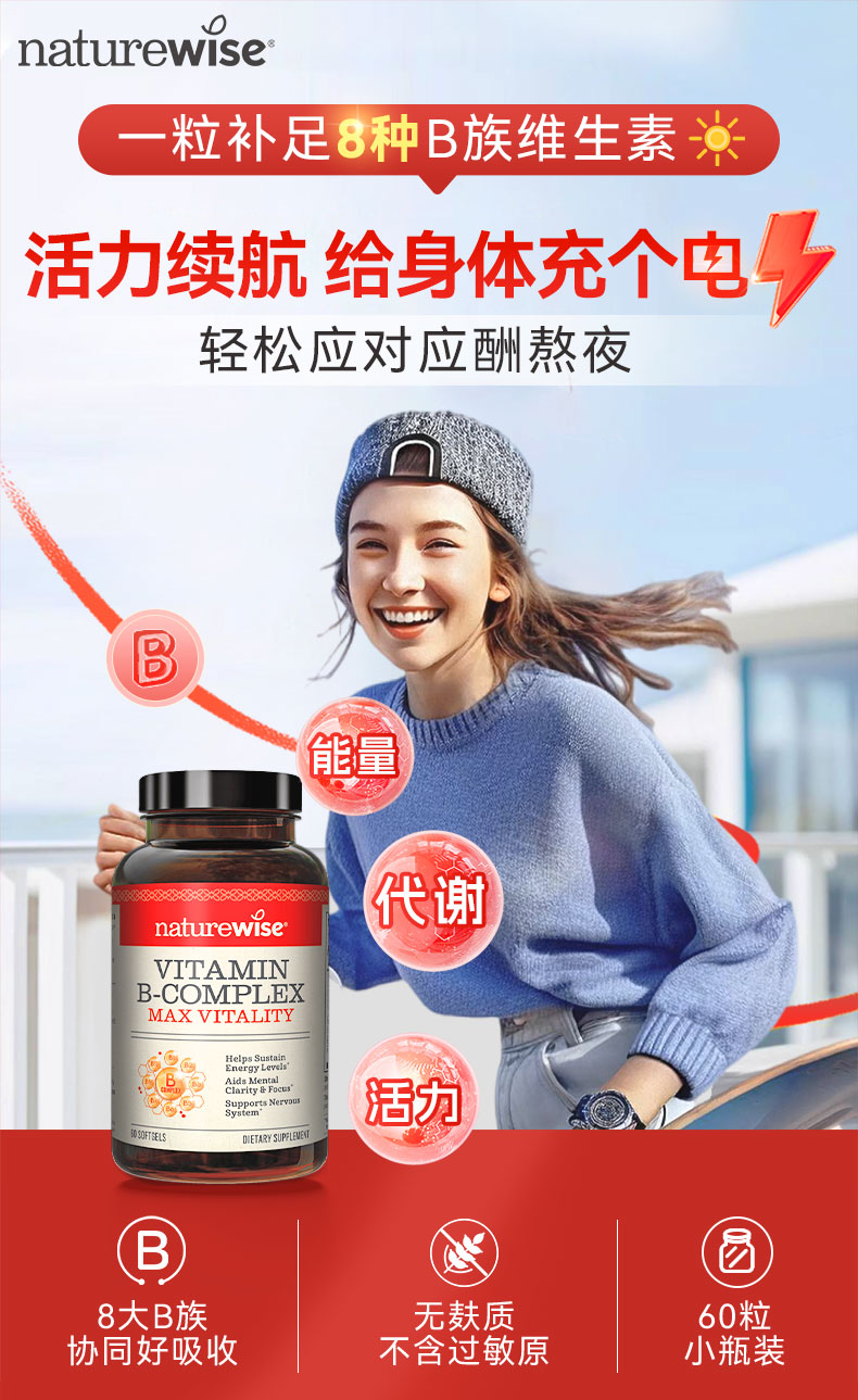 ³【小鲸营养-复合B族维生素胶囊】60粒/瓶 8种维生素B族营养 XN03-CRMM-XJJK