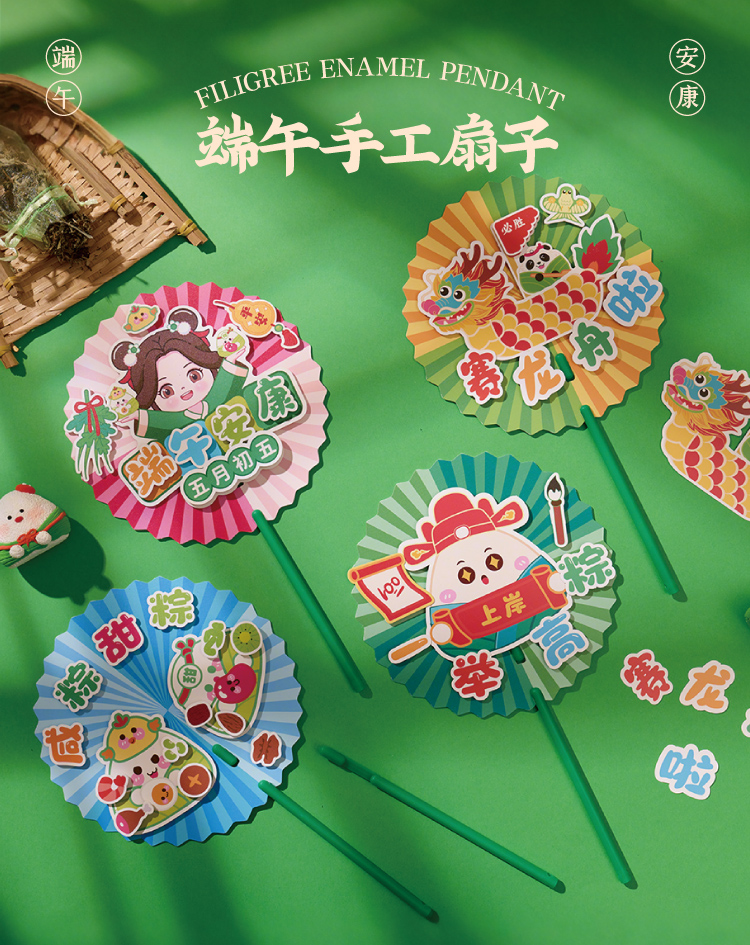 2025端午节礼物手工diy扇子儿童制作材料包幼儿园粽子龙舟团扇玩具