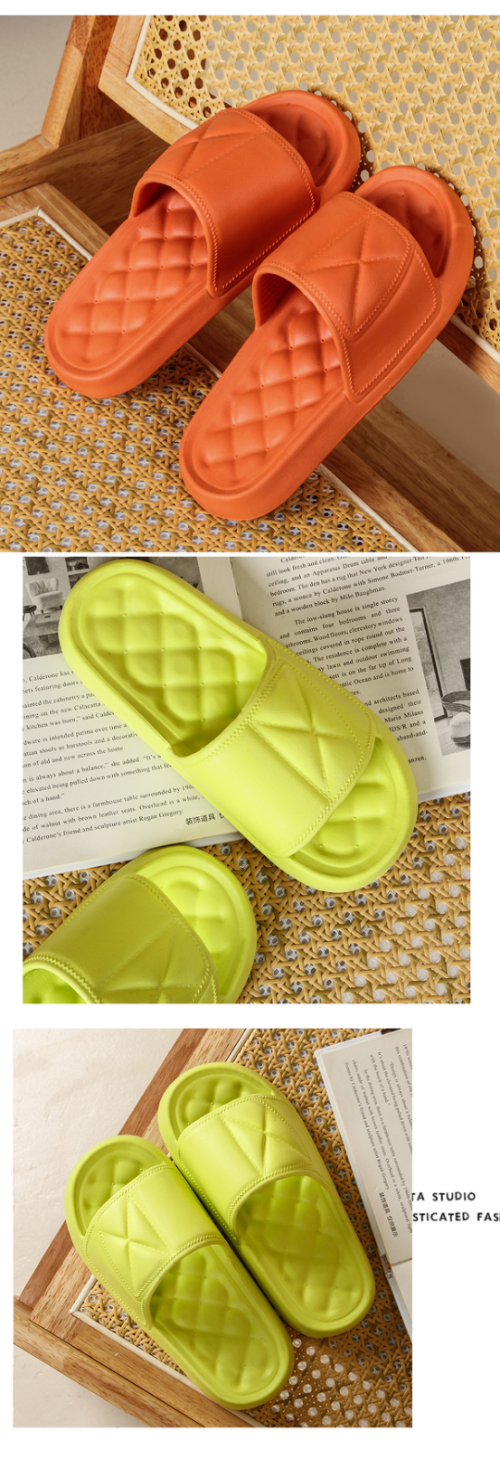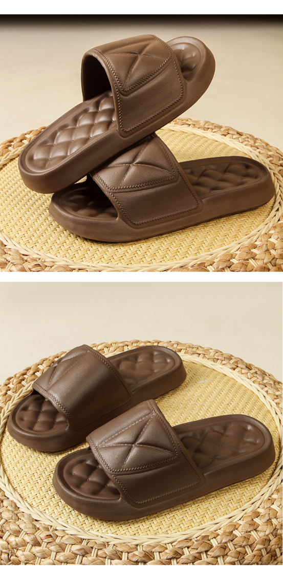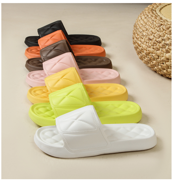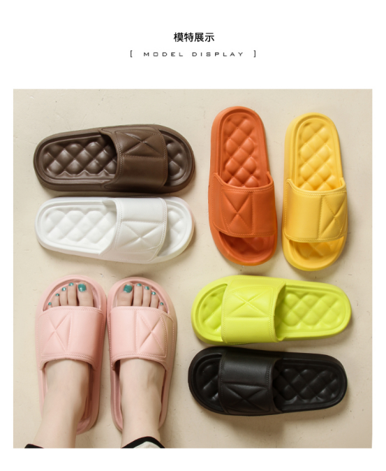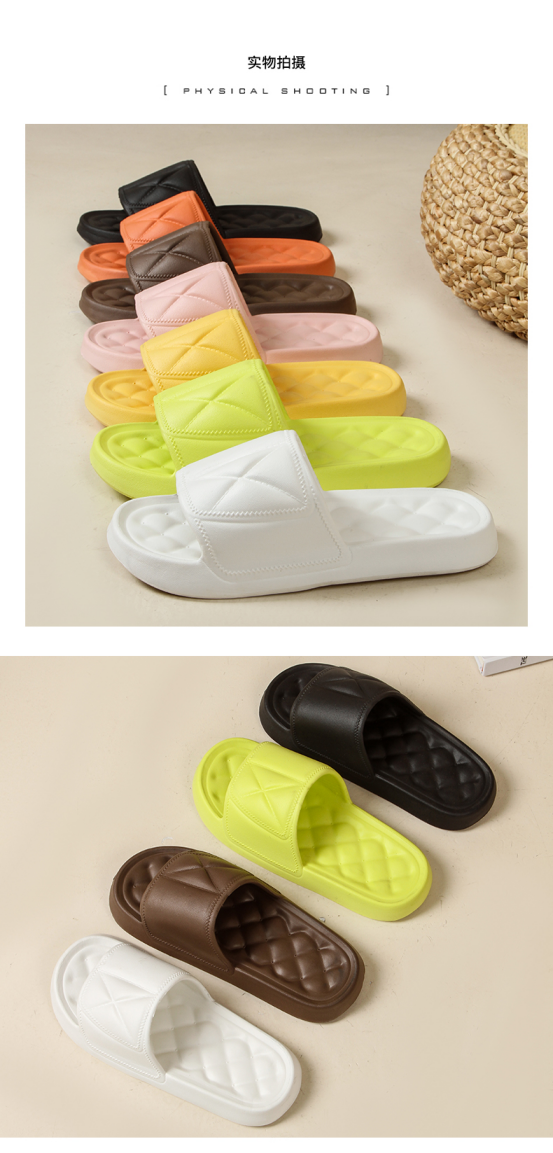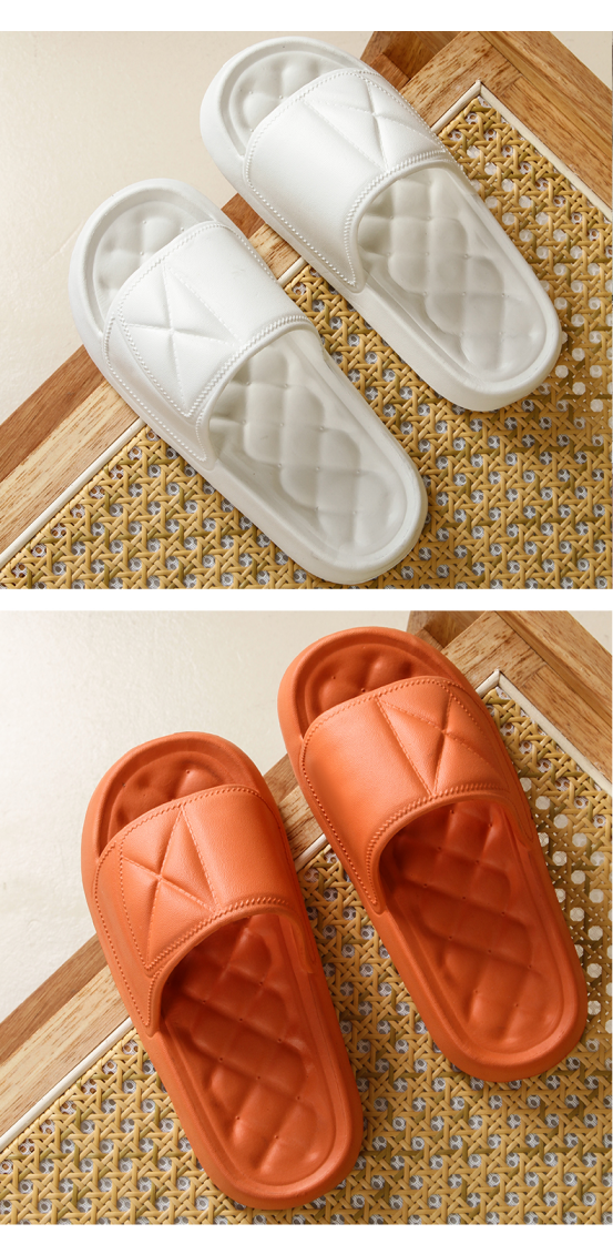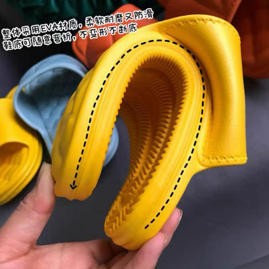 整双鞋子 采用的都是EVA材质 这种材质不仅环保,还具有不吸汗、 不臭脚的特点,特别适合汗脚人群使用 一体成型的设计使得拖鞋具有很好的韧性,