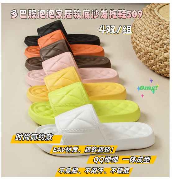 【4双/组,单拍不发】开春宠粉福利 ~~【女款-多巴胺泡泡家居软底沙发拖鞋509 】7色好靓💖上脚超级轻便❗️无敌踩屎脚感🦶暴走三公里都不带喊疼!🤣 脚感爆好!