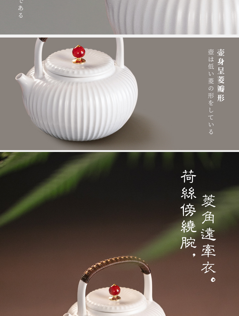 【莺歌烧旗舰店】雪花釉菱瓣陶壶