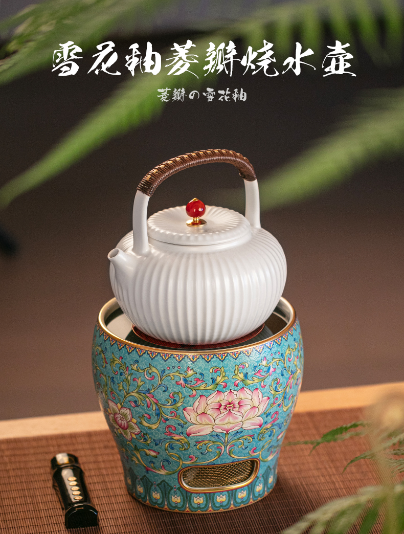 【莺歌烧旗舰店】染付绣绘竹节火钵·钛壶套装