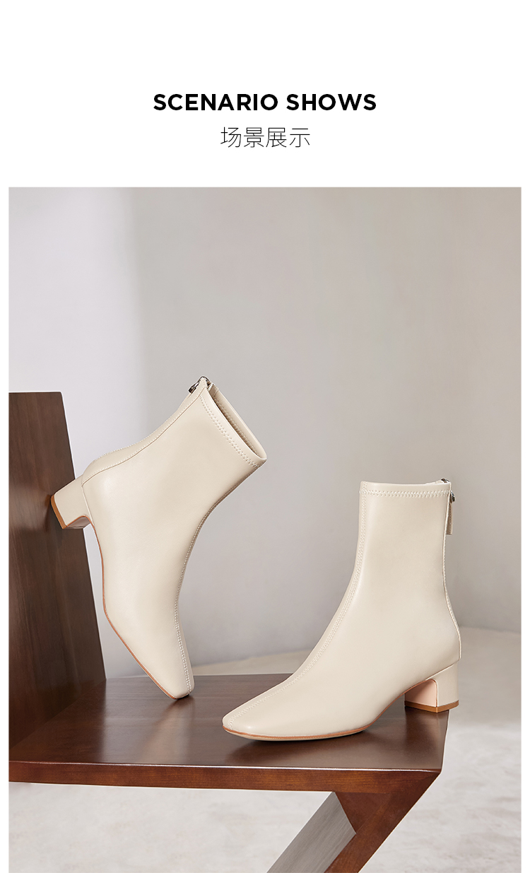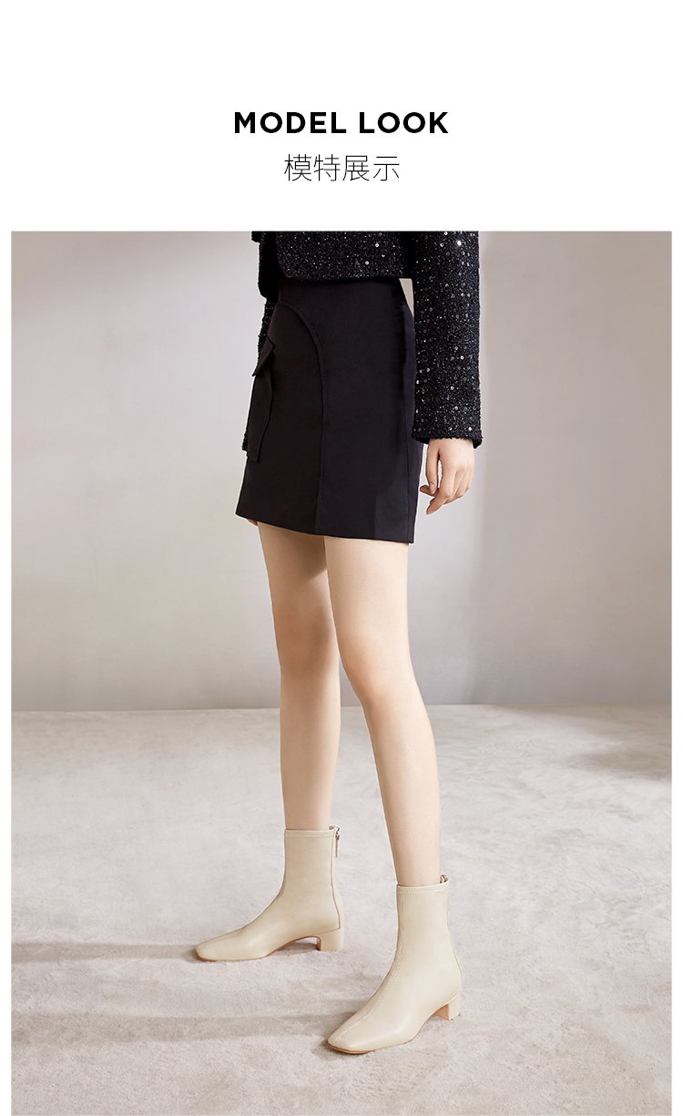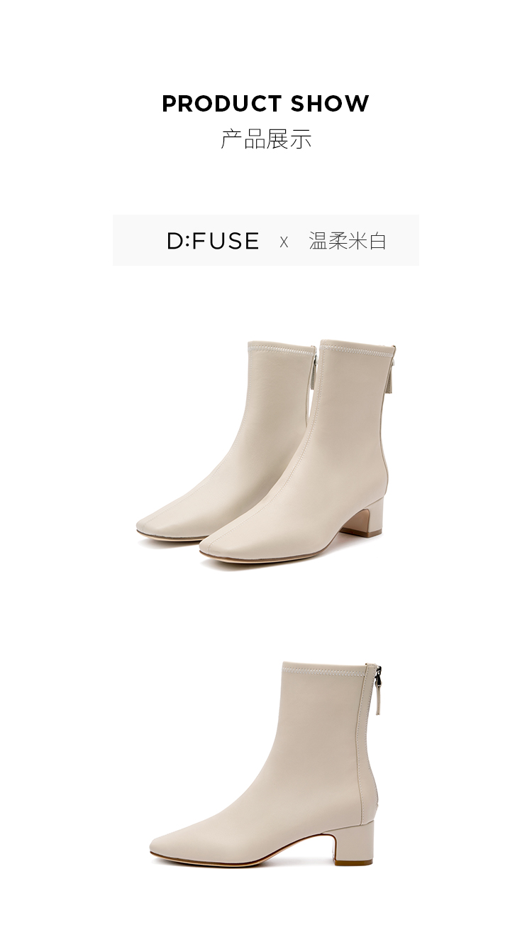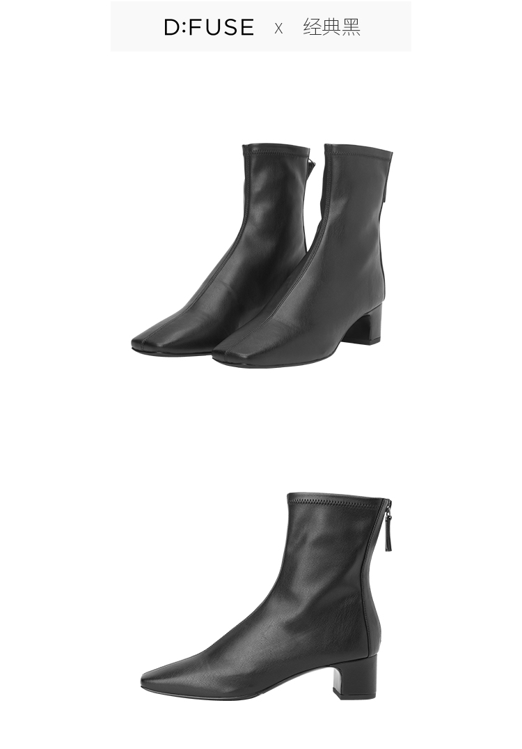 Dfuse迪芙斯冬季新款短靴女网红瘦瘦靴方头粗跟英伦女靴子女鞋DF34116704