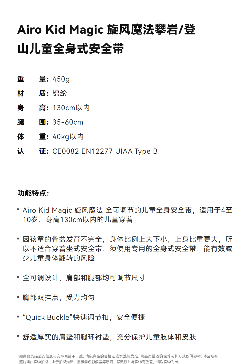 KAILAS凯乐石 Airo Kid Magic旋风魔法攀岩/登山儿童全身式安全带