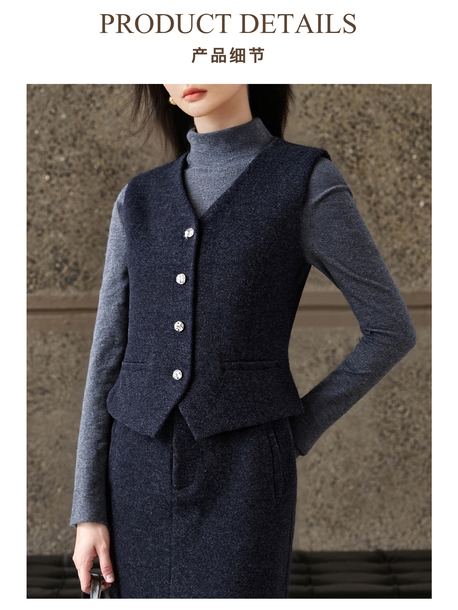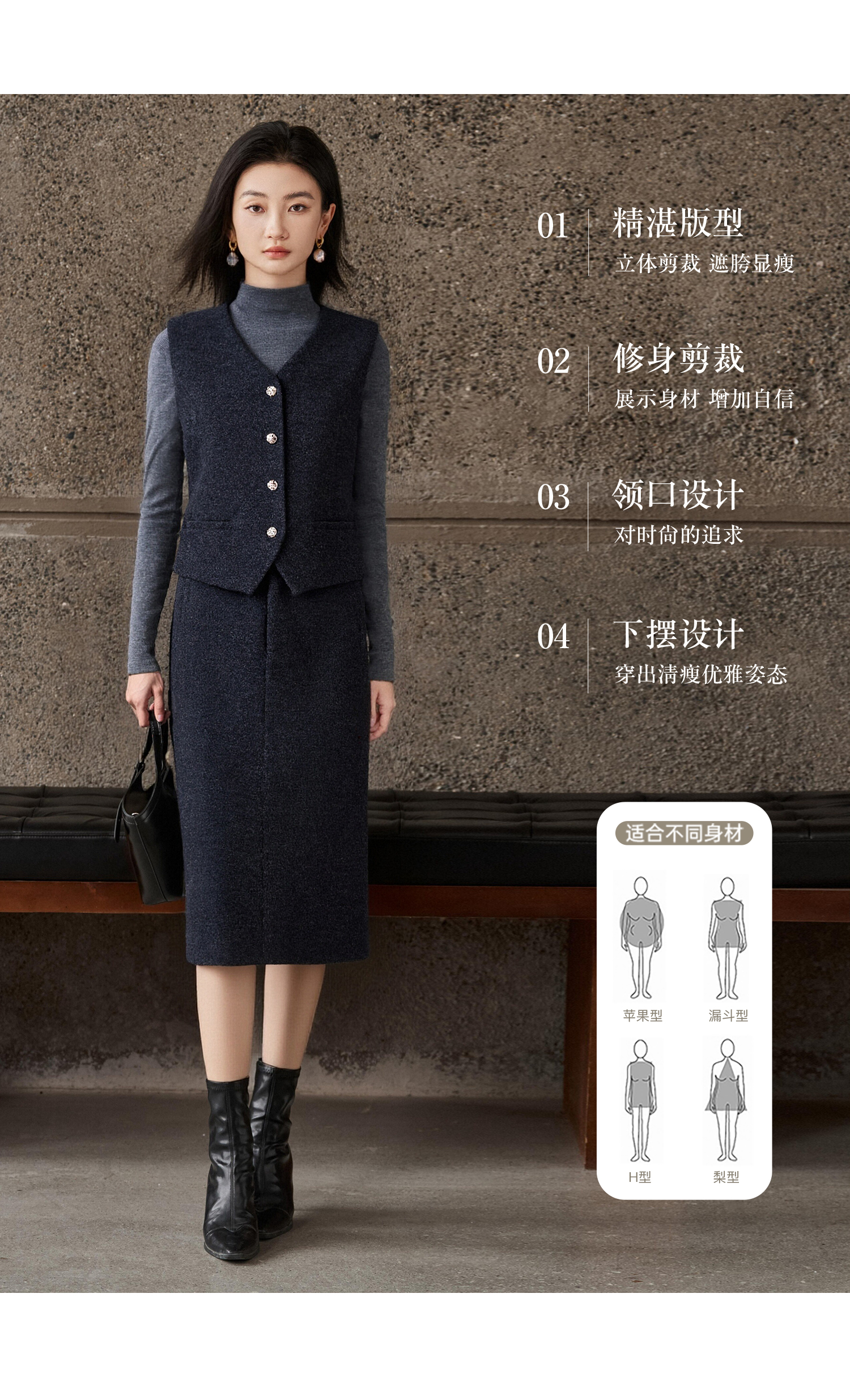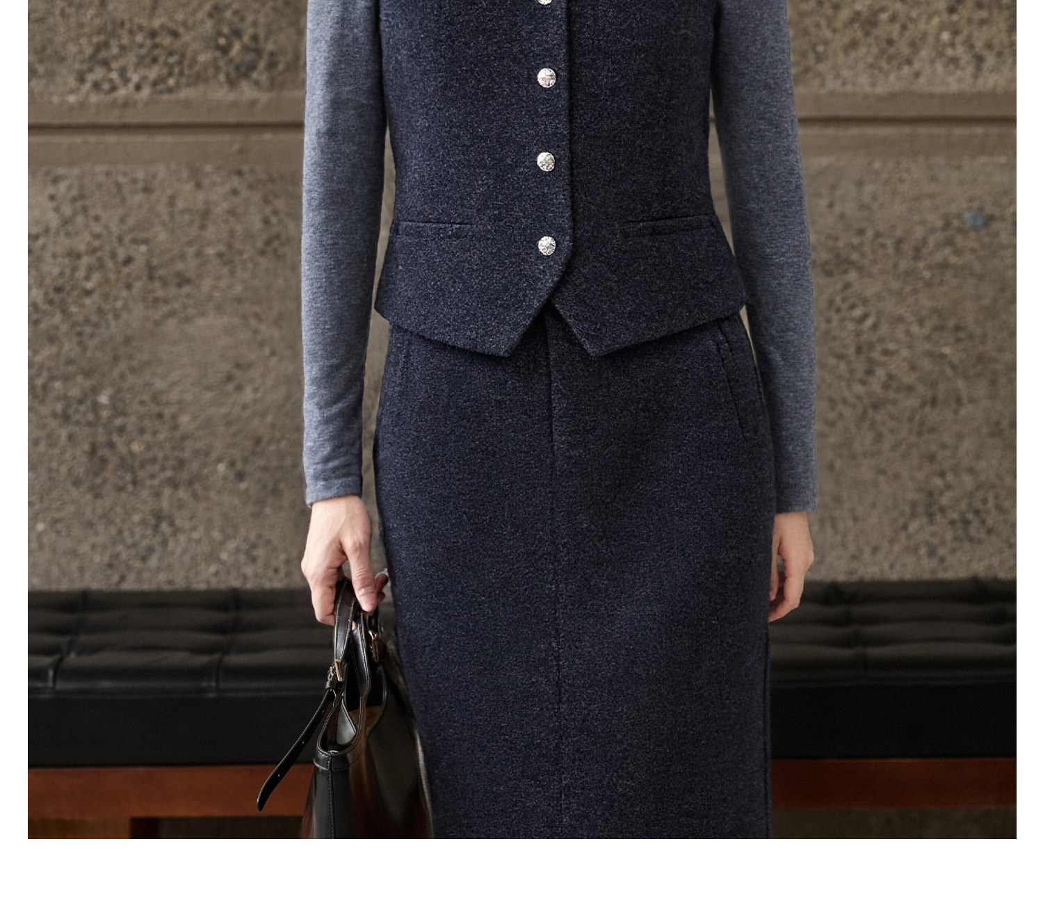 米思阳2025秋冬新款通勤职业OL羊毛保暖内搭磨毛马甲+磨毛半身裙女5326(单拍)
