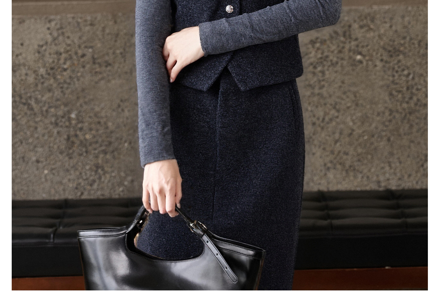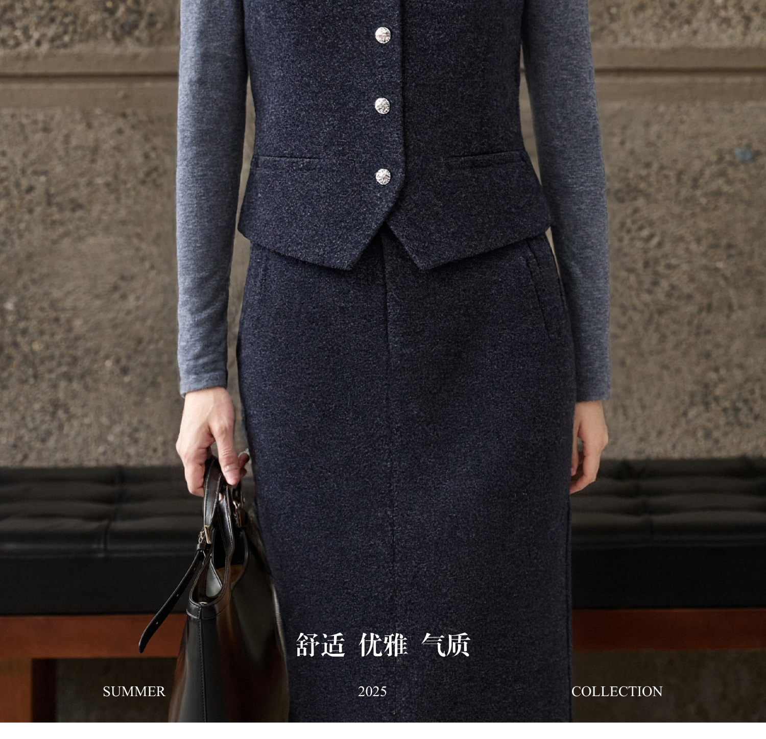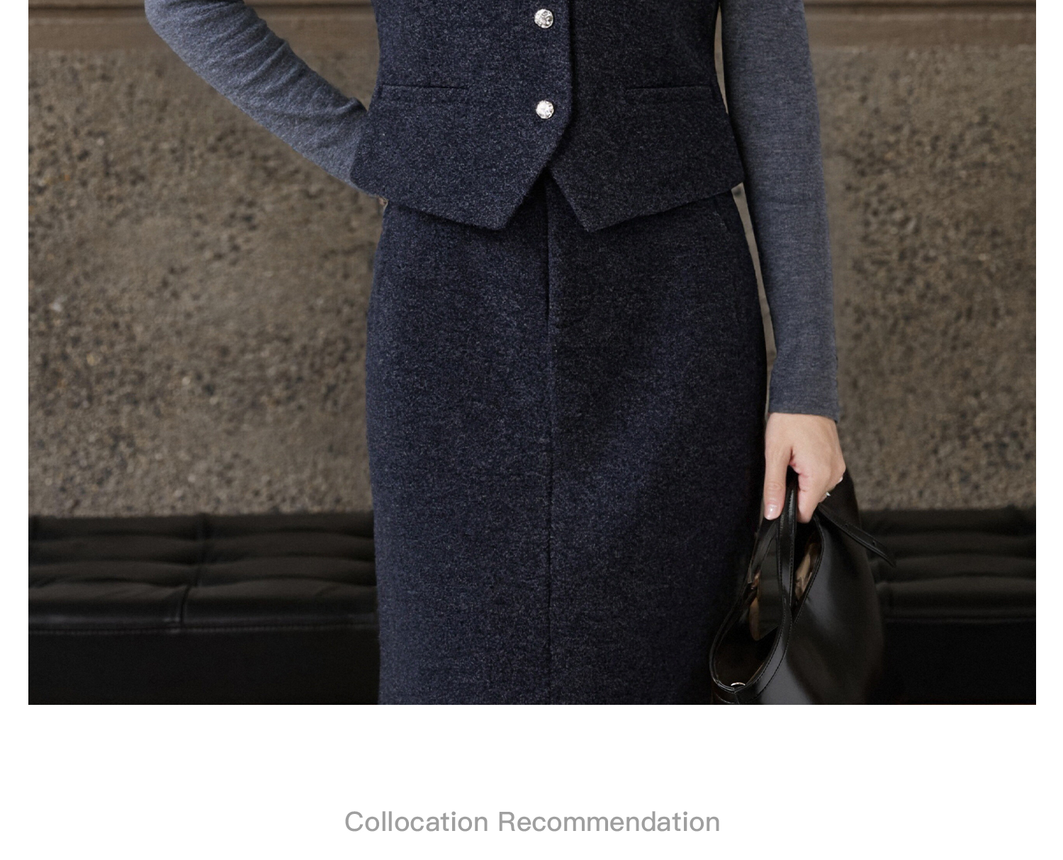 米思阳2025秋冬新款通勤职业OL羊毛保暖内搭磨毛马甲+磨毛半身裙女5326(单拍)