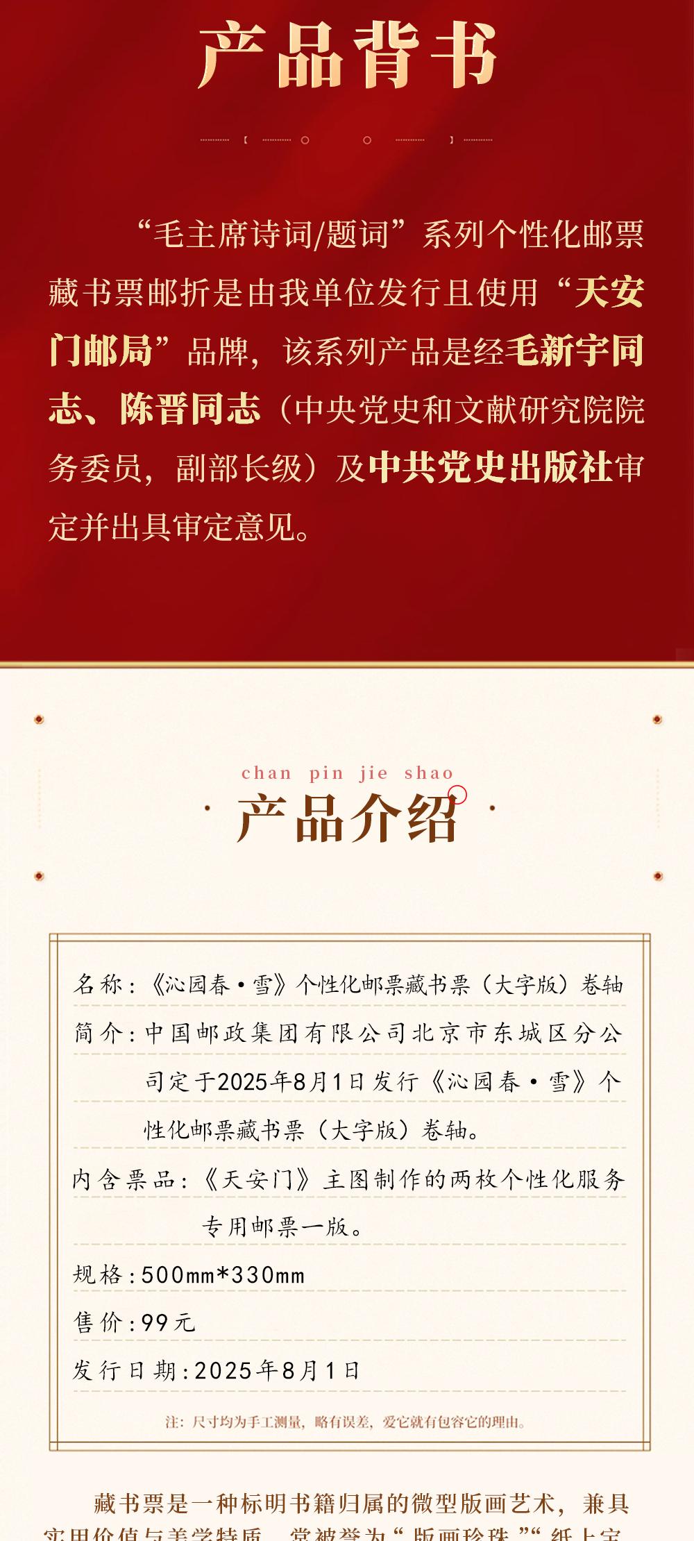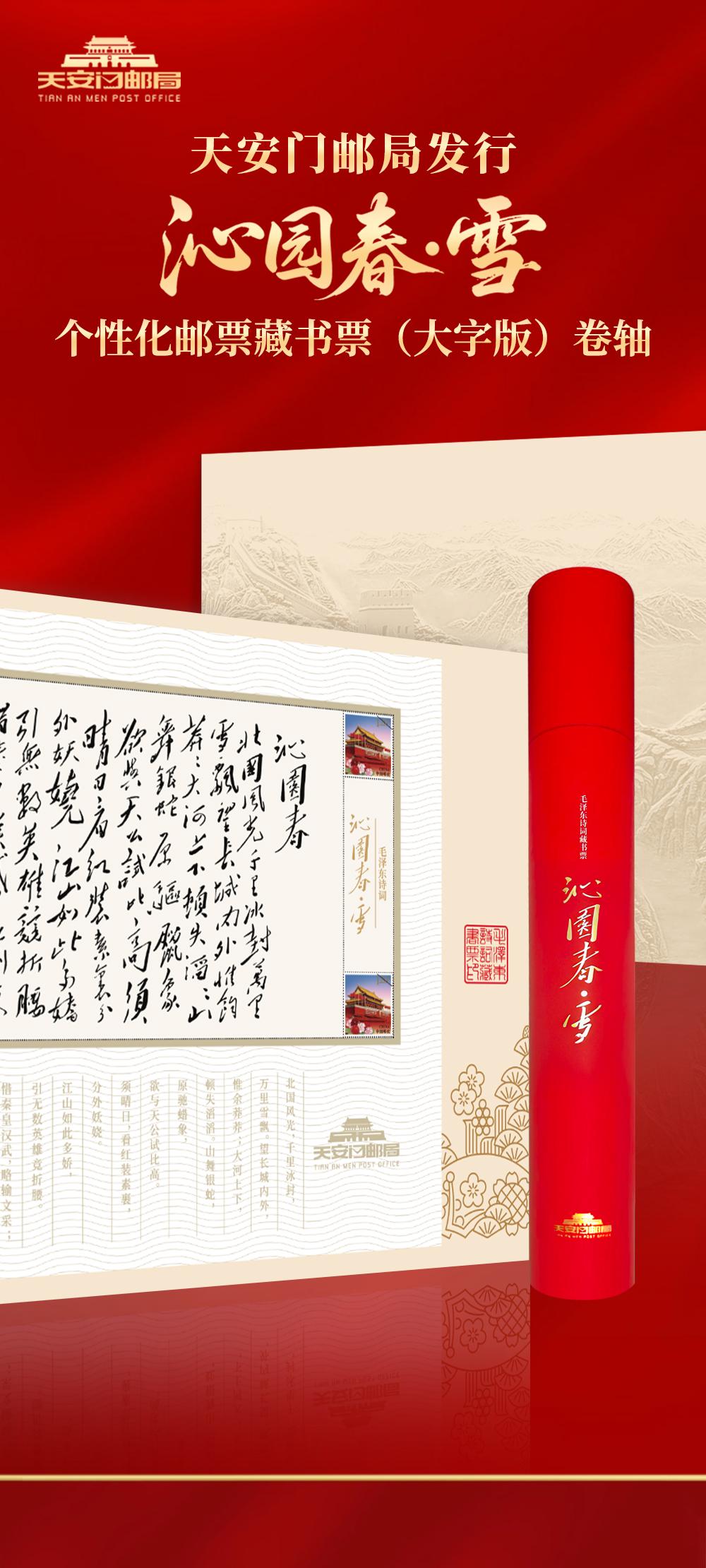 毛主席题词《沁园春•雪》大字版卷轴书票