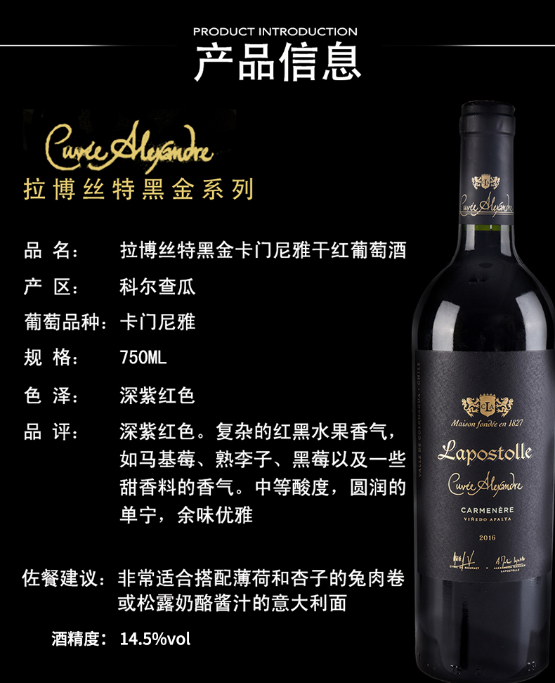 拉博丝特红酒智利十八罗汉原瓶进口lapostolle黑金干红葡萄酒开门红双支礼盒装750ml*2(口味备注或联系客服)