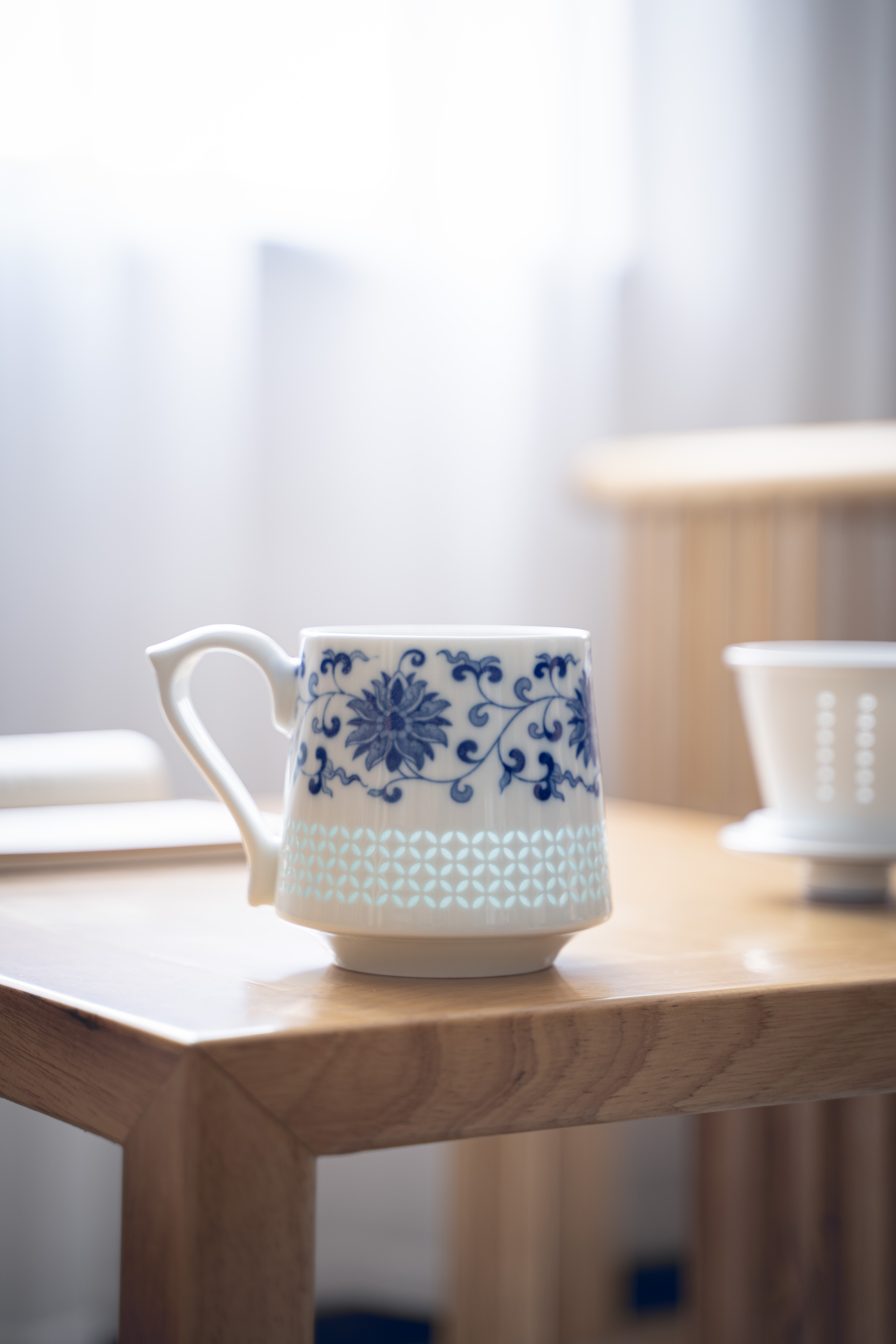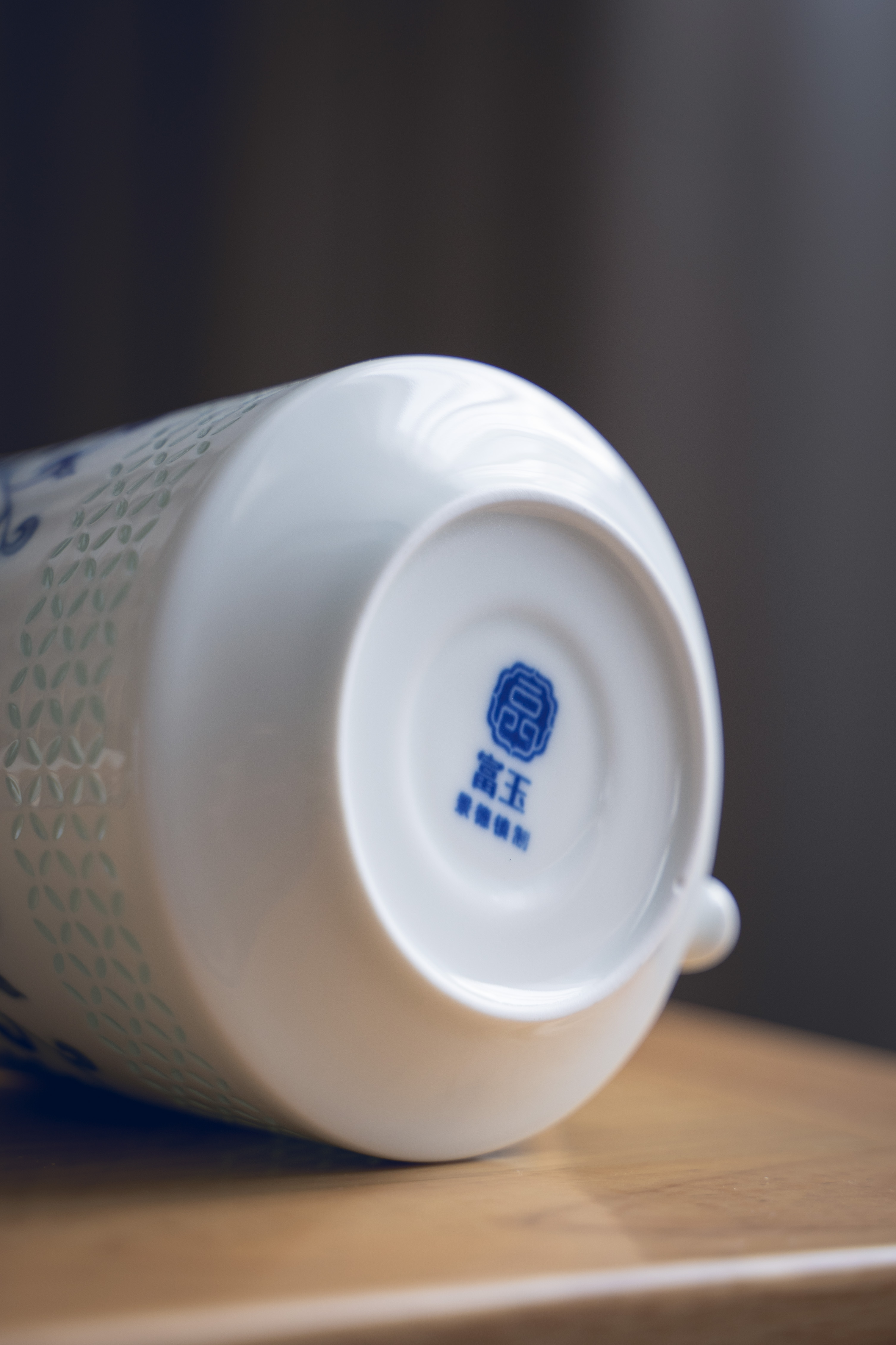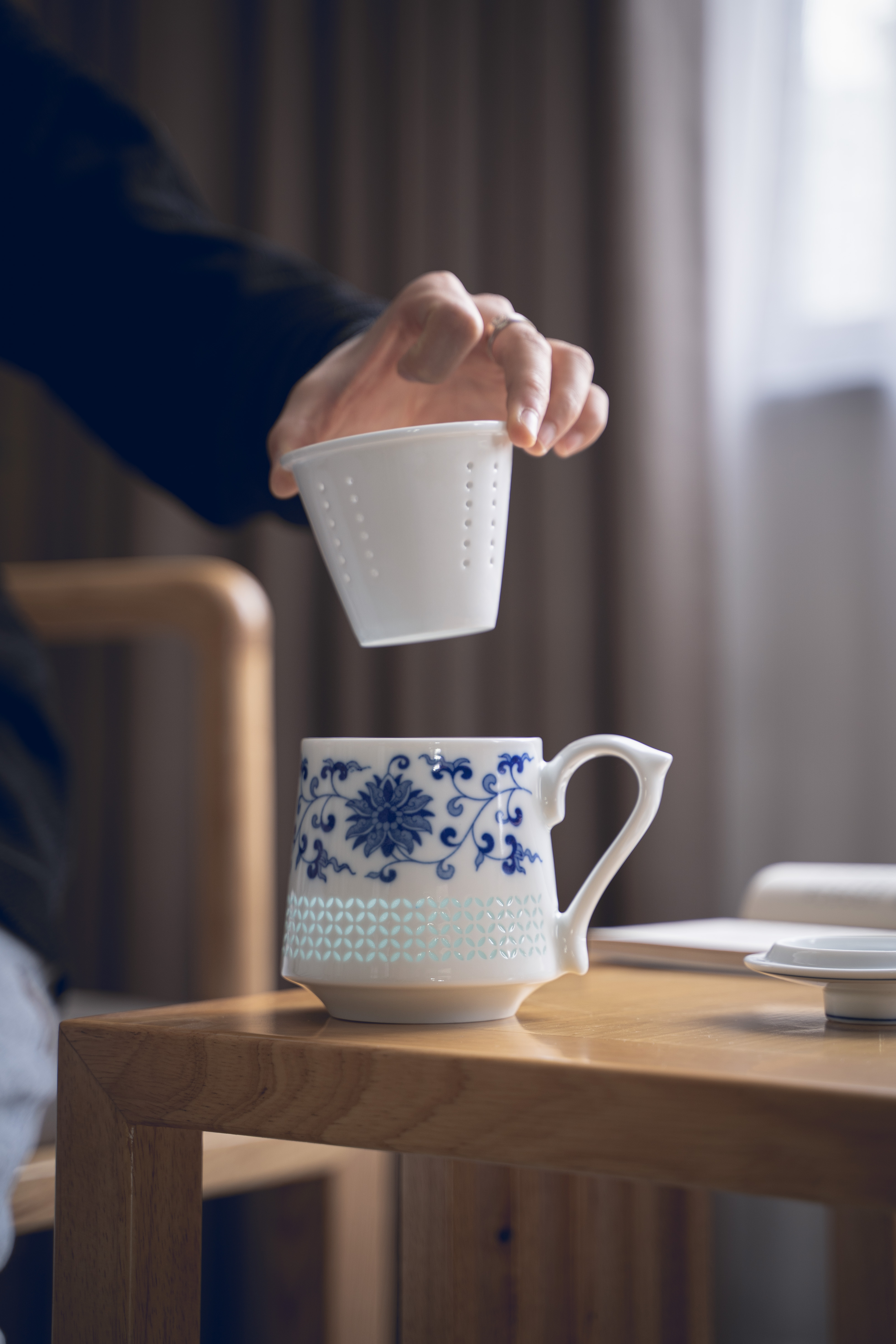 富玉 | 景德镇陶瓷玲珑水杯大容量泡茶带盖茶水分离青花缠枝莲茶漏杯