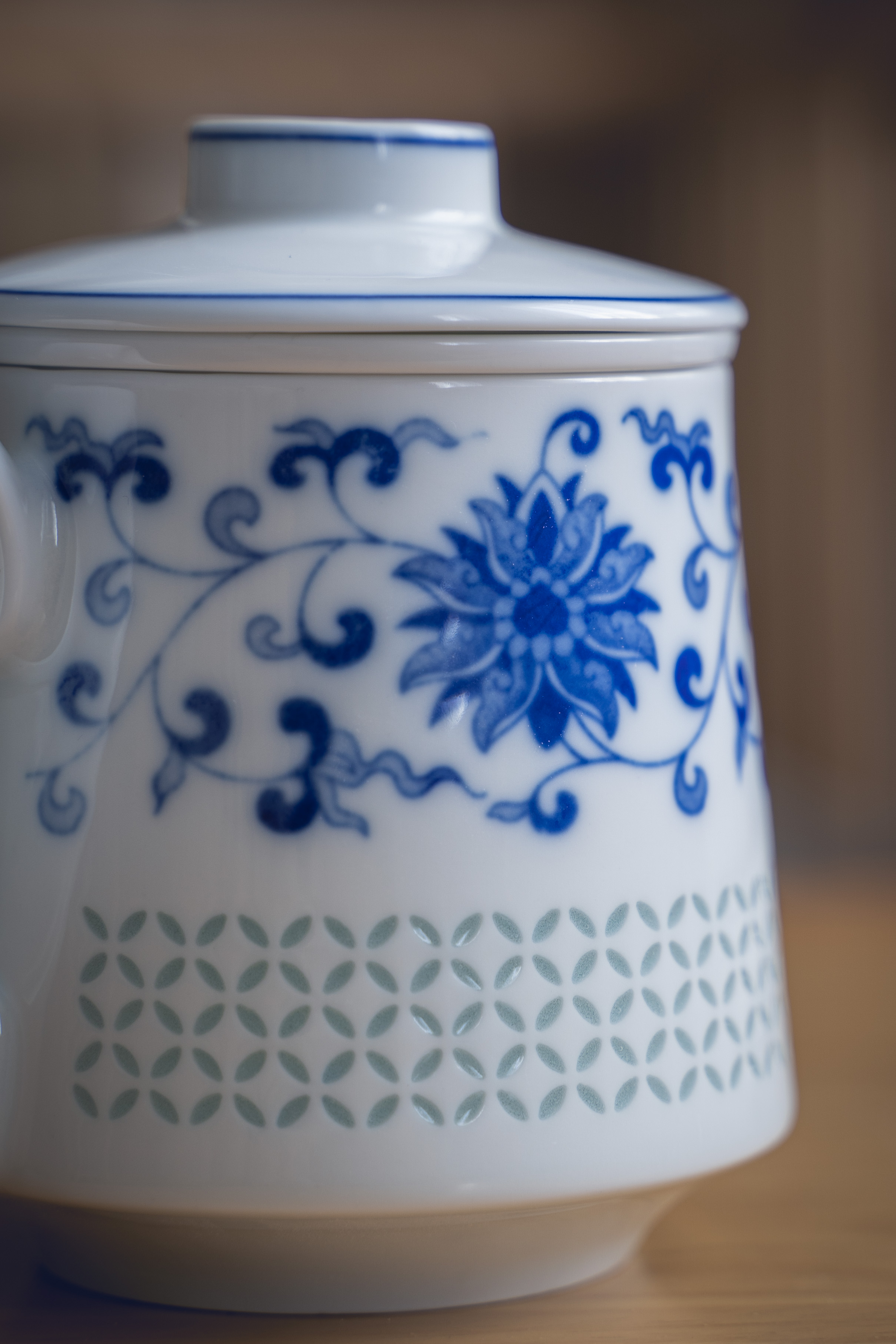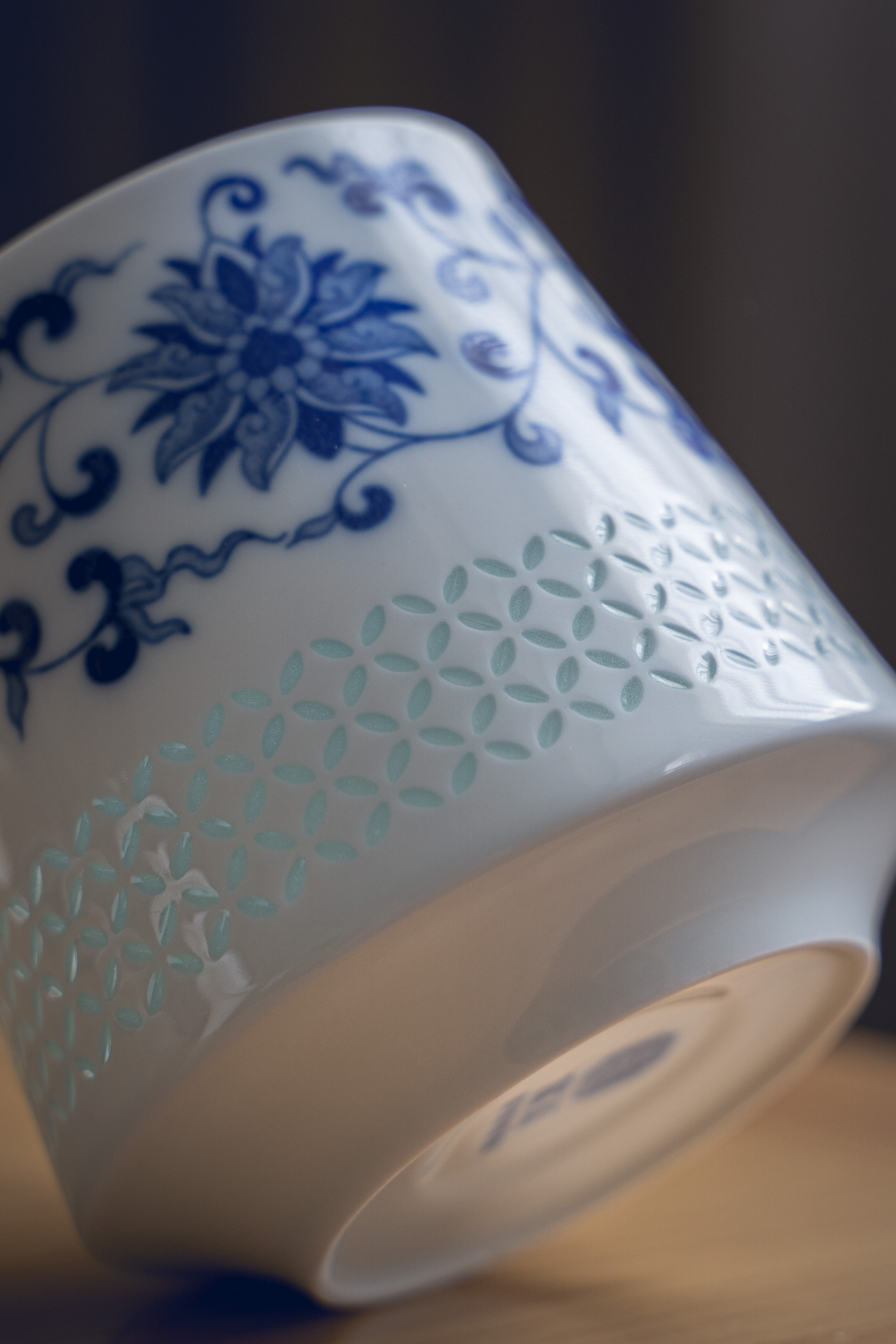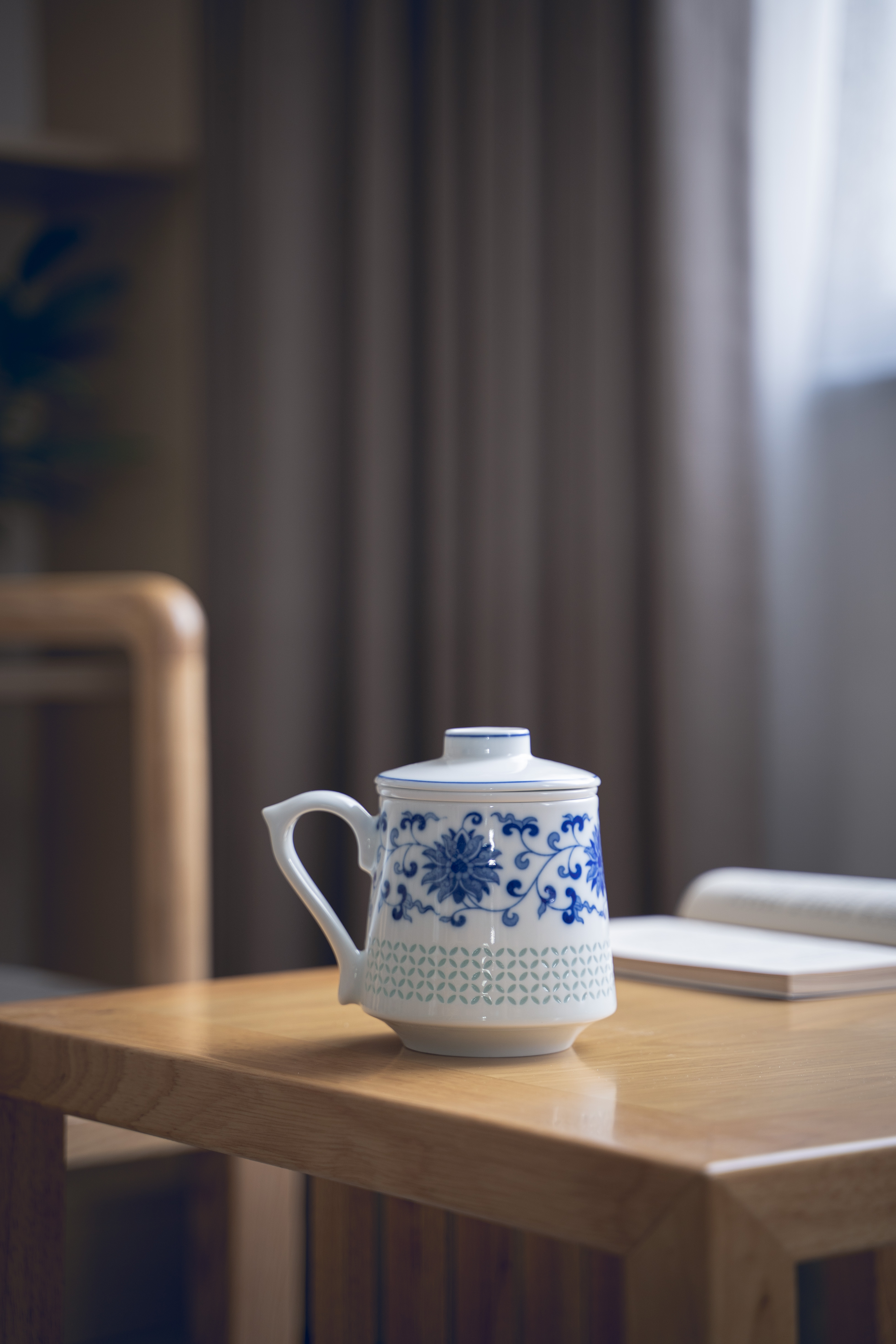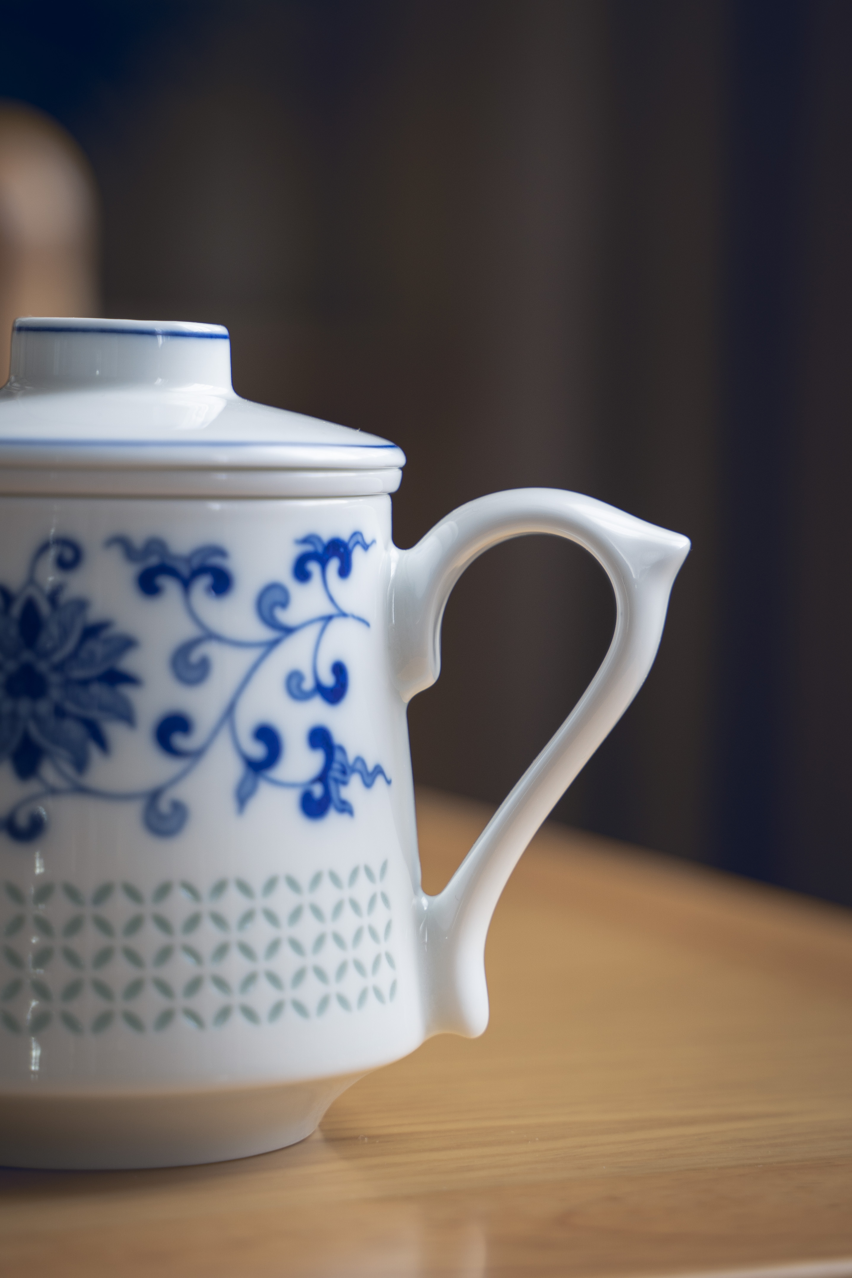 富玉 | 景德镇陶瓷玲珑水杯大容量泡茶带盖茶水分离青花缠枝莲茶漏杯