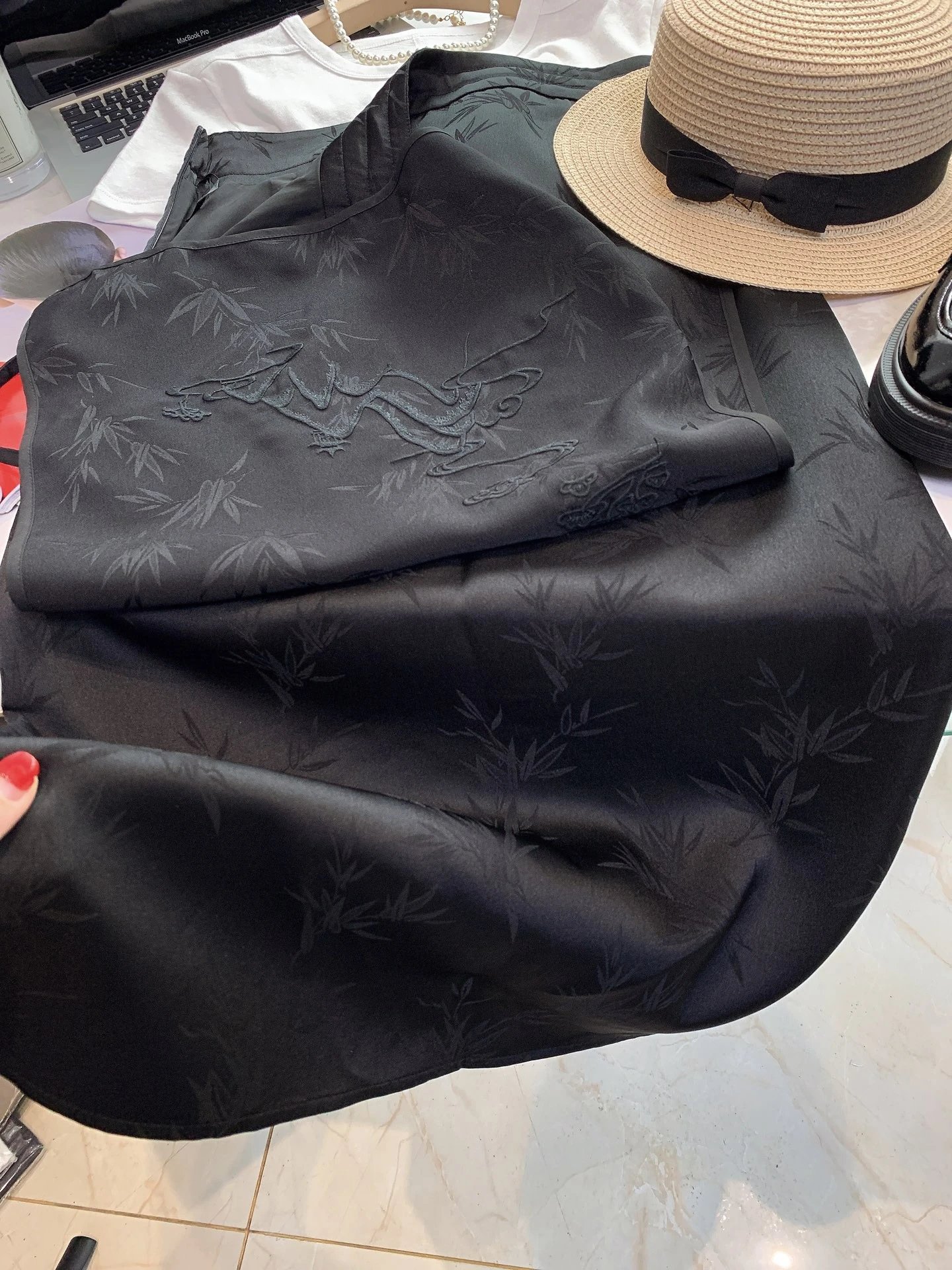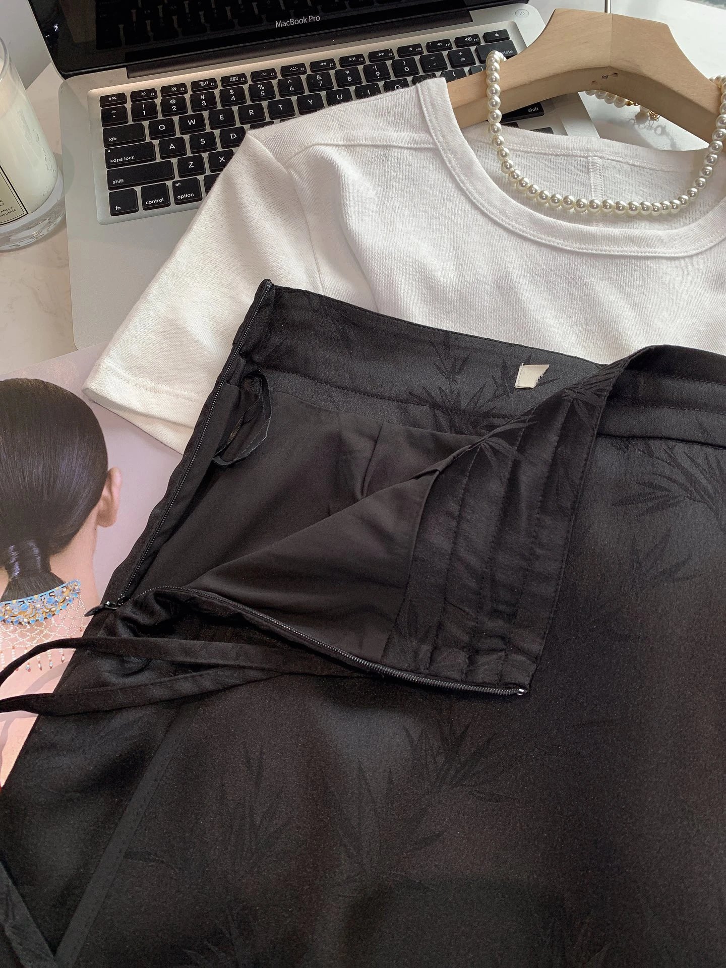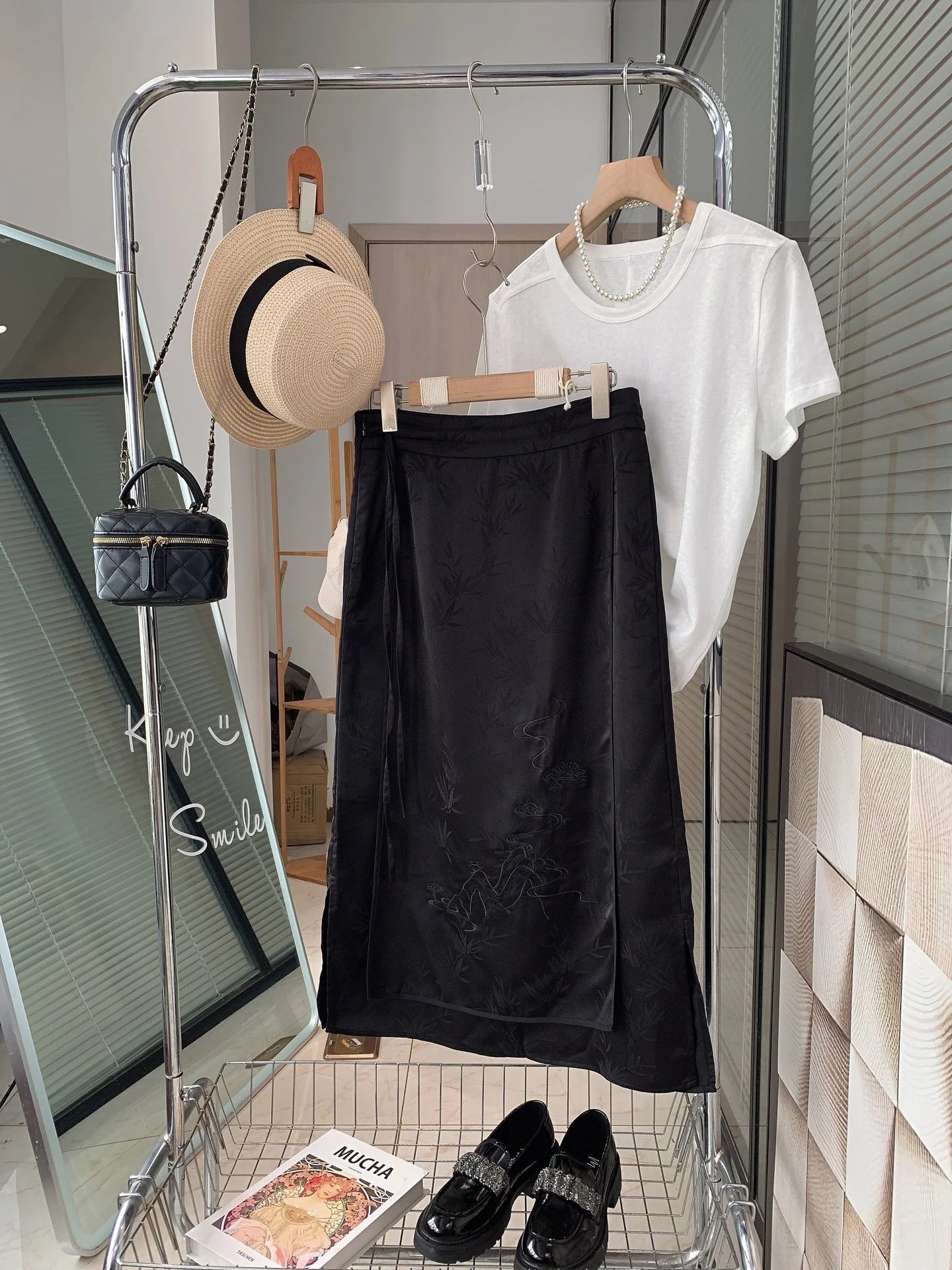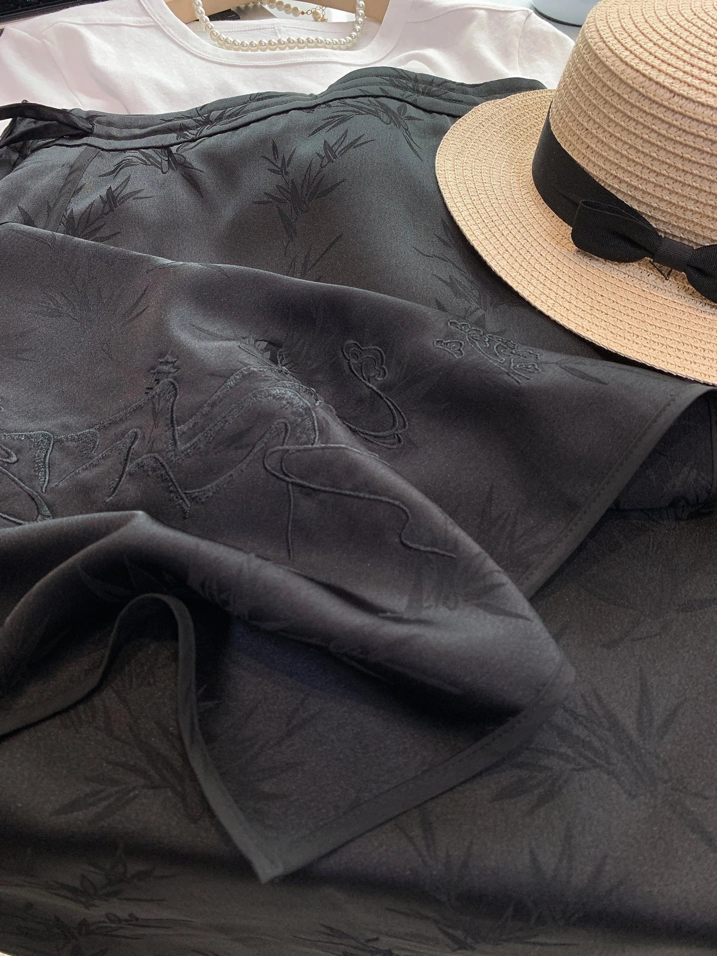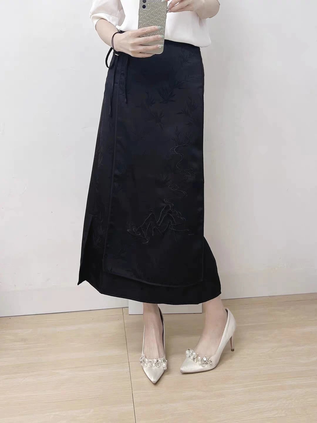 这条半身裙,把东方美学穿在身上!满幅暗纹竹叶提花,搭配正面山水祥云刺绣,水墨意境拉满,低调又显贵,新中式爱好者必入!