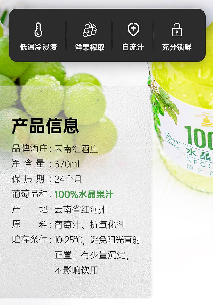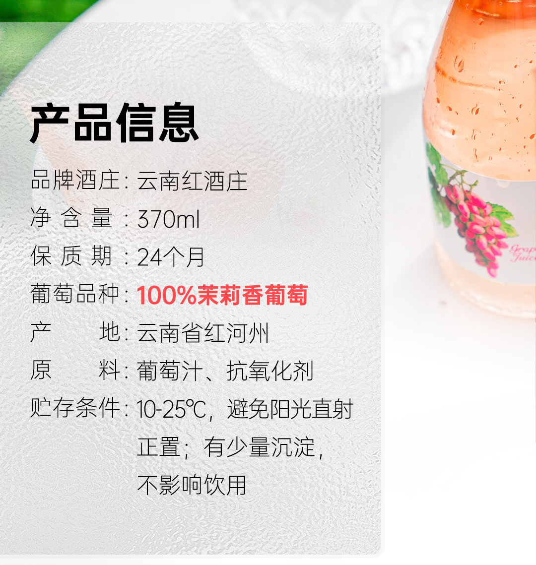 【99元任选3样】玫瑰蜜/水晶葡萄果汁云南红NFC葡萄自流汁无酒精0色素0香精370ml