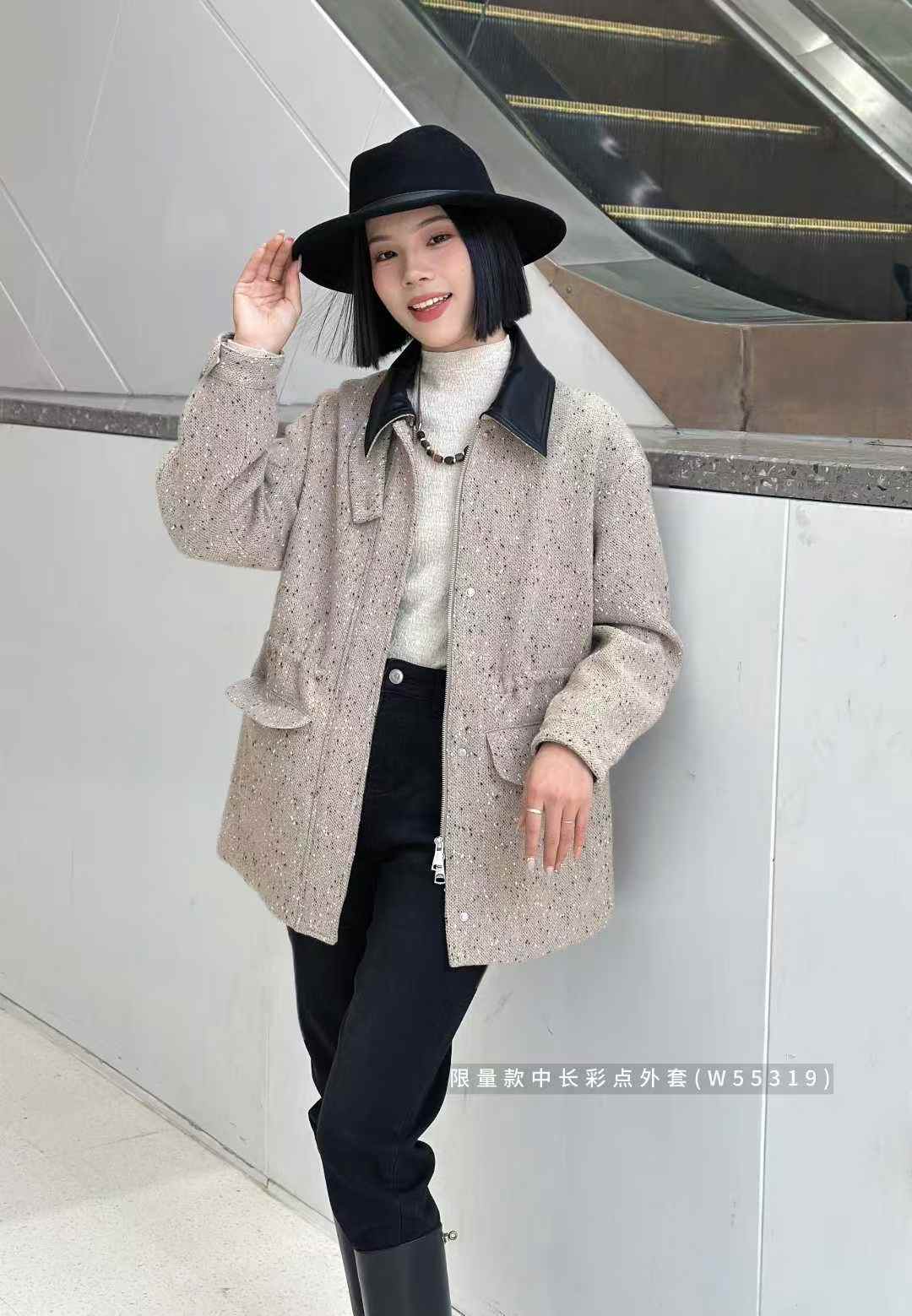 W55319#限量款中长彩点外套