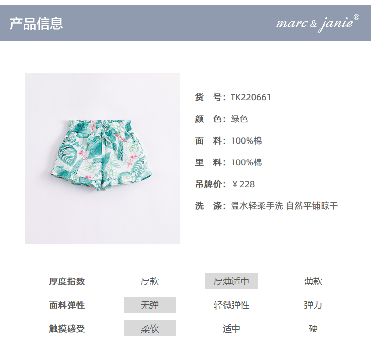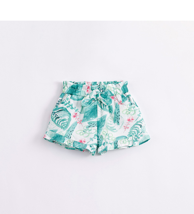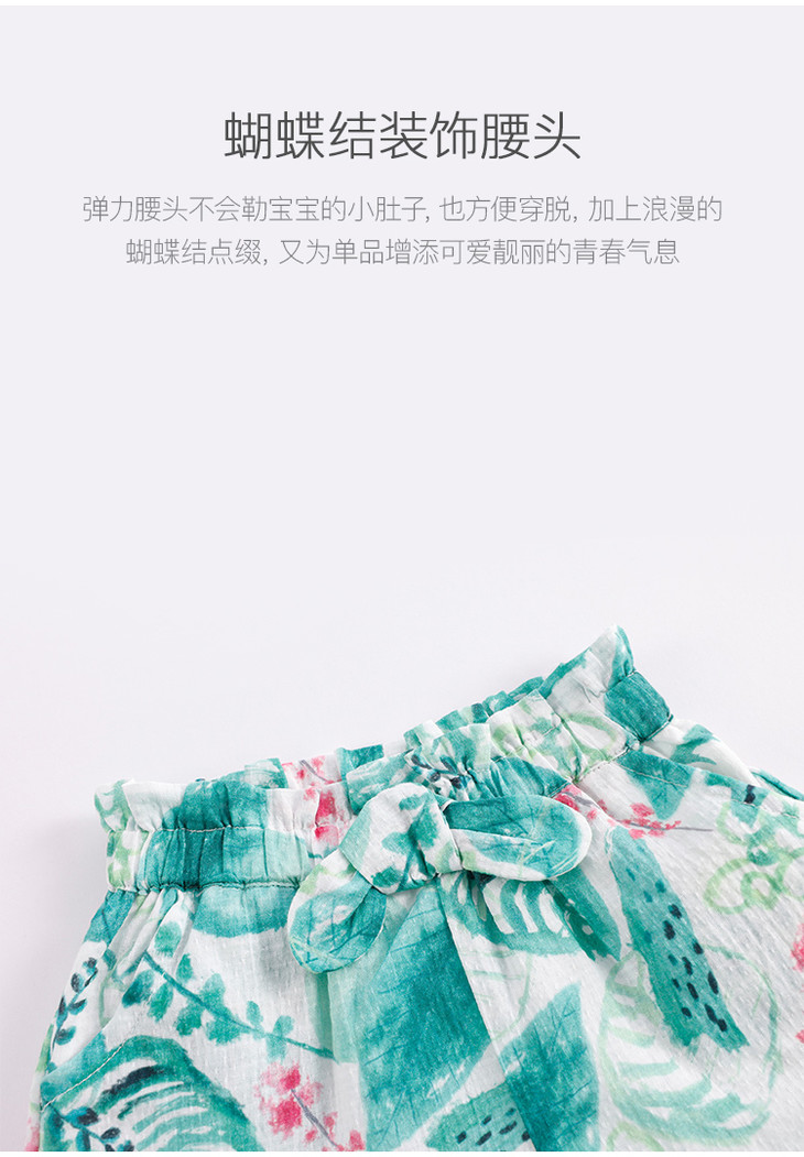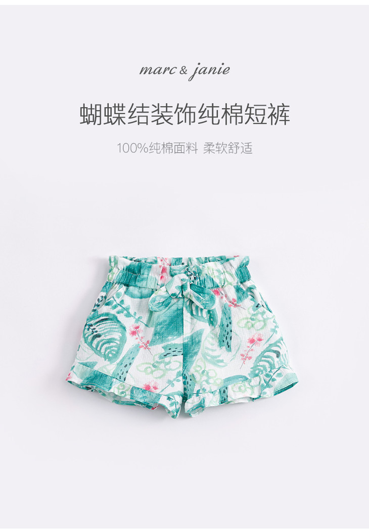 马克珍妮夏装女童蝴蝶结腰头纯棉花边短裤 儿童裤子220661