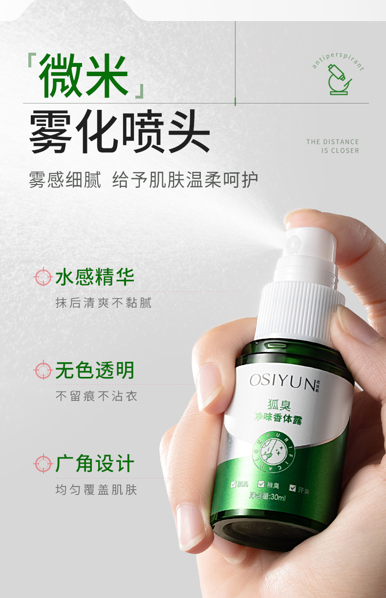 狐臭净味喷雾 净味除臭清香随行男女通用腋臭腋下抑汗香体止汗露去狐臭喷雾