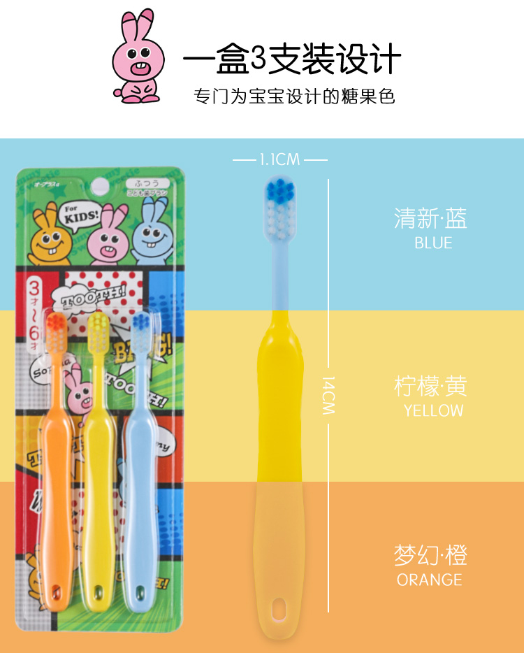 whec 日本O-PLUS奥普乐士儿童口腔护理牙刷三支装(3岁-6岁)