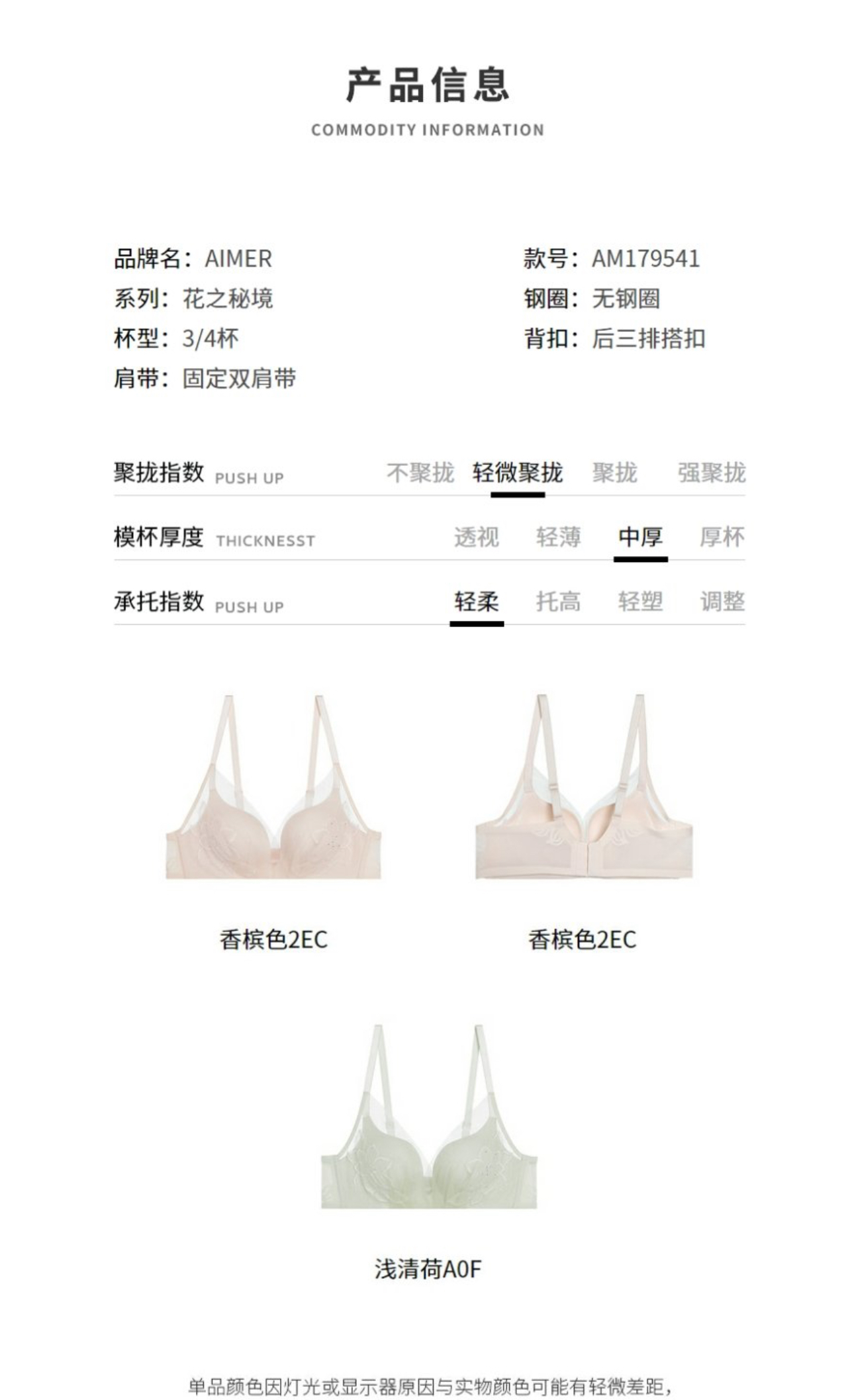 5F AIMER 爱慕花之秘境系列无钢圈文胸 商品图3