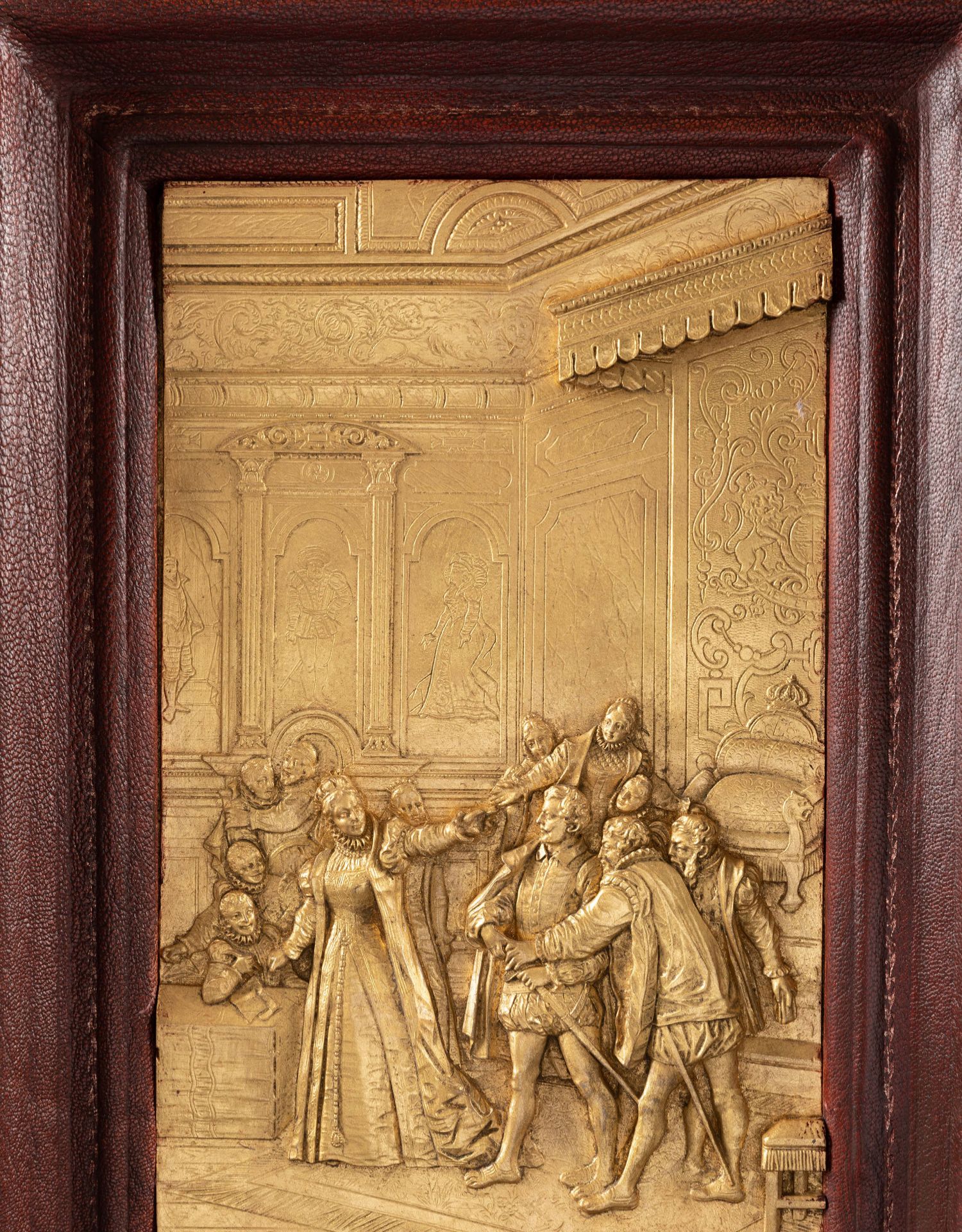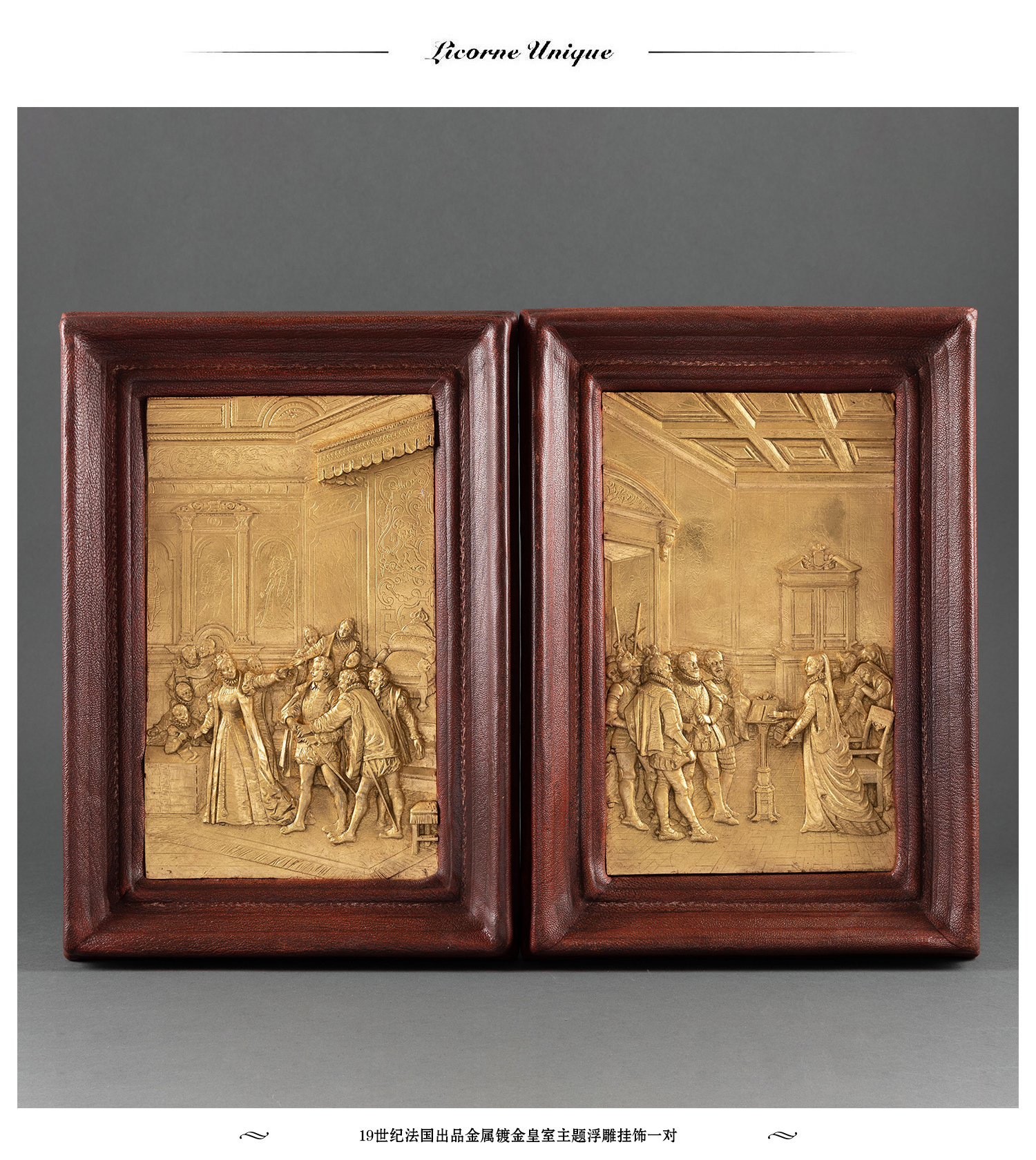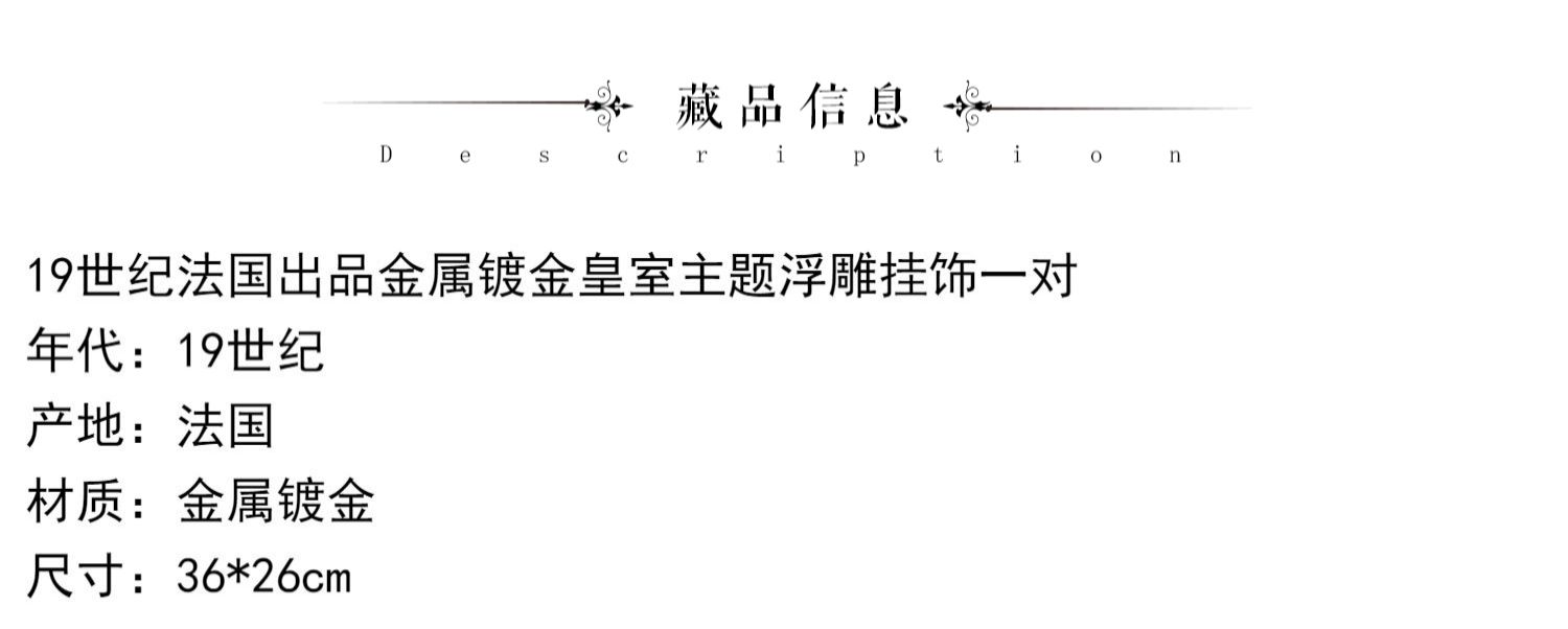 独角鹿西洋古董家居装饰19世纪法国金属镀金皇室主题浮雕挂饰一对